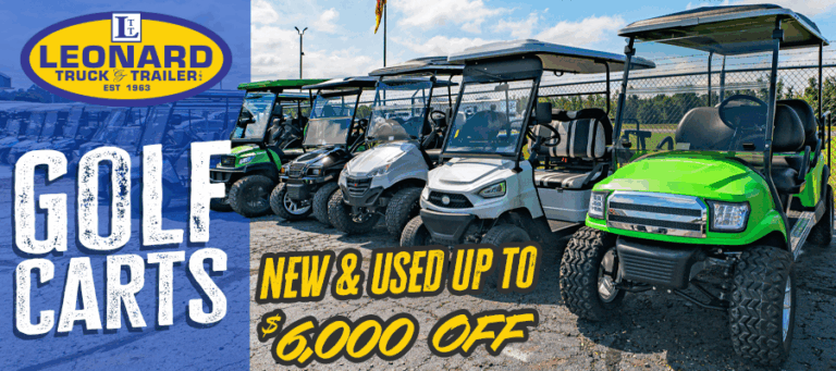 Leonard Truck and Trailer is your Best Choice for Dump Trailers, Horse Trailers, Livestock Trailers, Equipment and Enclosed Trailers. With 700+ trailers in stock (at a single location) of every type from the most popular brands, there are “Trailers Everywhere!” Since 1963, our product specialists have been helping clients find the perfect trailer! As we continue to grow and expand, we have added high quality products including Golf Carts, Skidsteer and Tractor Attachments, Saddles, Equipment, and more. We also provide a comprehensive Parts, Service, Repair, and Warranty Departments, plus an expert on-site financing department that includes a rent-to-own option. Shop our online inventory or stop by – it would be our pleasure to show you around!