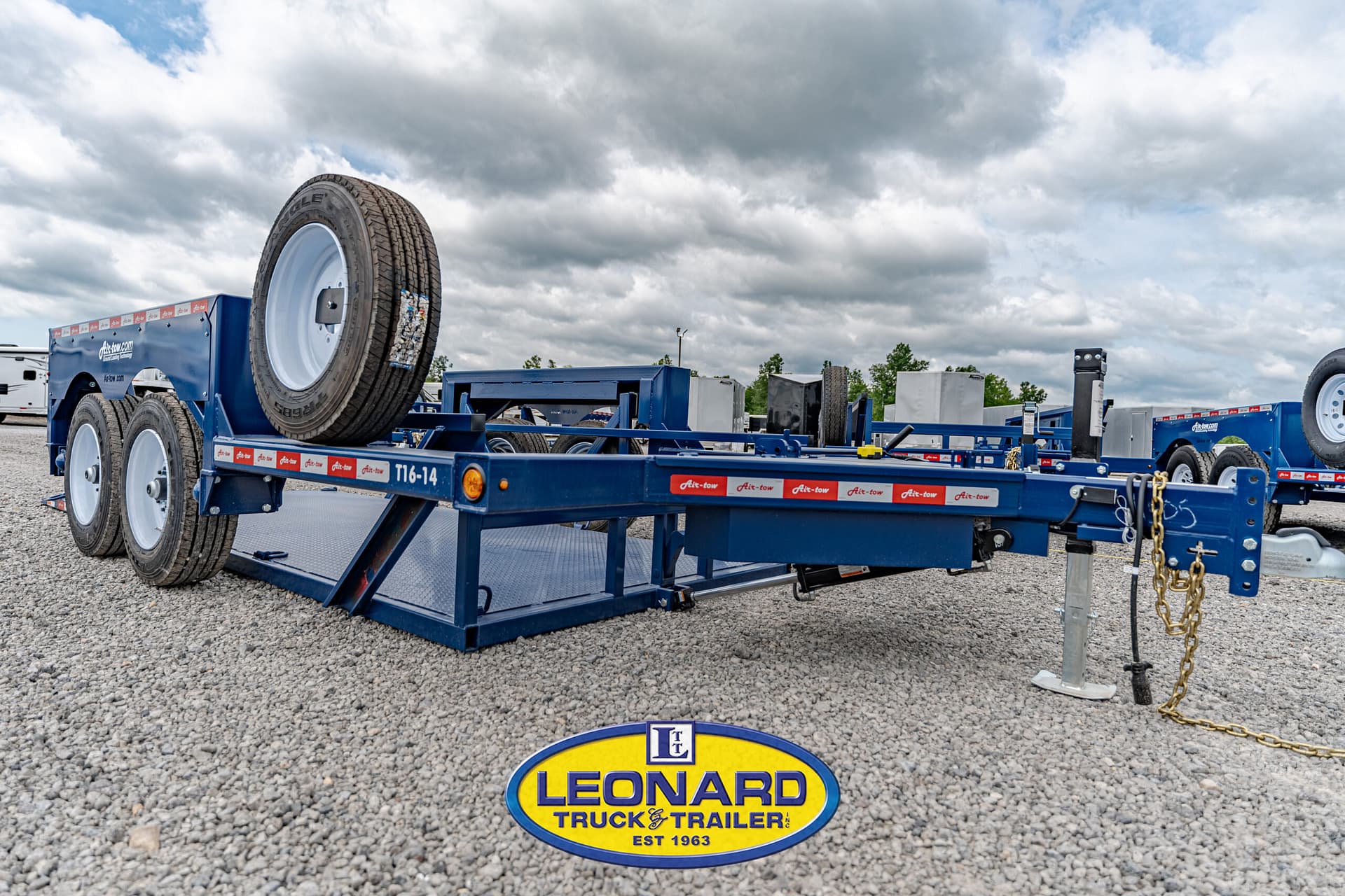 The unique Air-tow flatbed uses a totally different concept to make loading easier and safer. The trailer deck remains completely level as it raises or lowers hydraulically in less than 30 seconds. At ground level, you simply drive your equipment onto the trailer. It is especially useful for equipment with poor traction or low ground clearance such as scissor lifts, sweepers, pavement rollers, etc. Air-tow eliminates the need for difficult tilt beds or dangerous loading ramps, making it a one-man job even in adverse weather conditions.