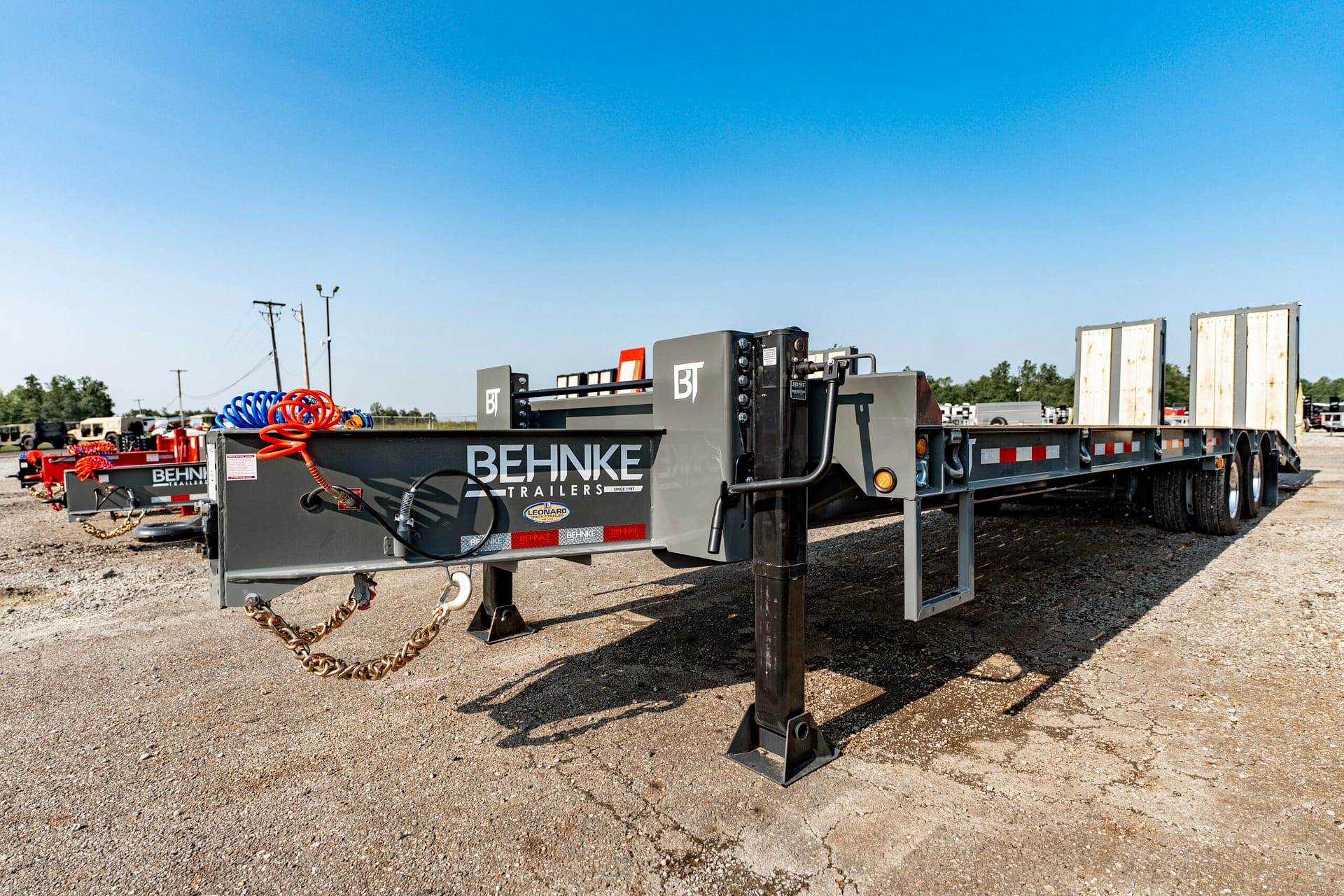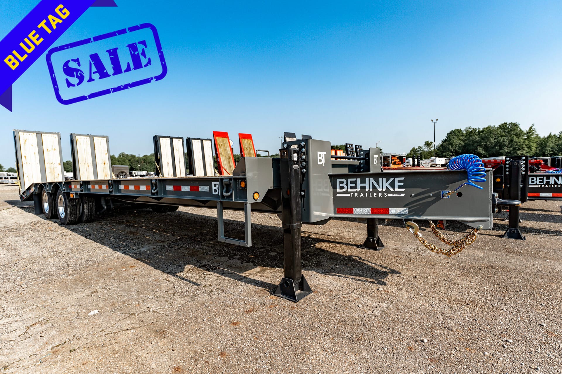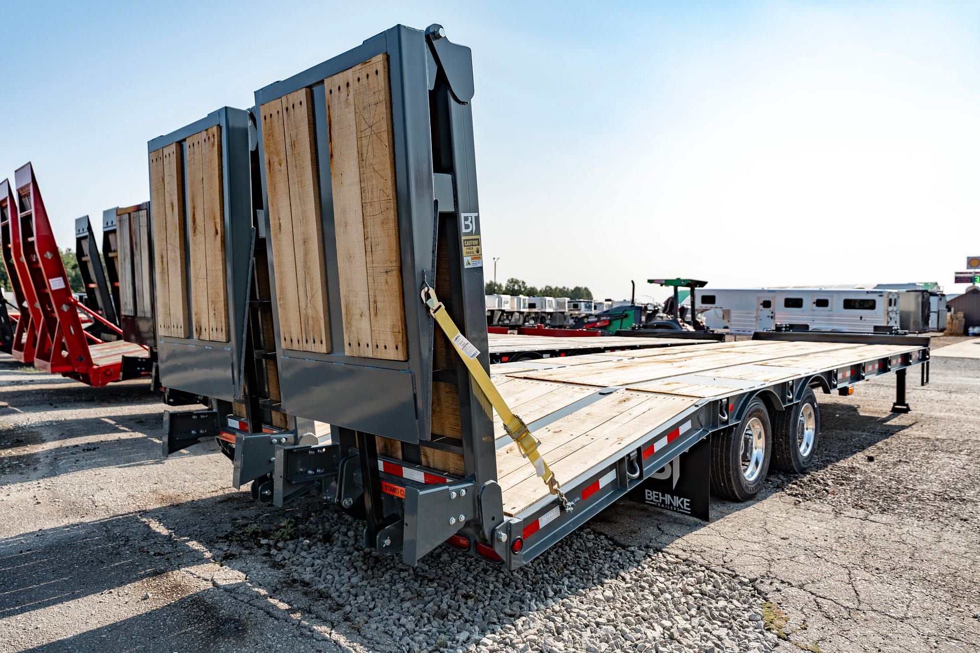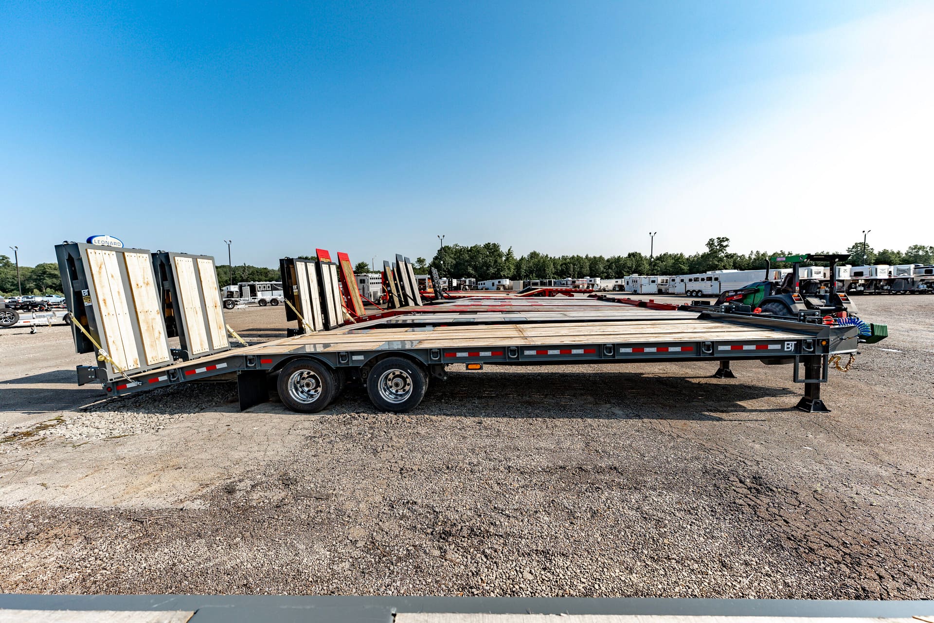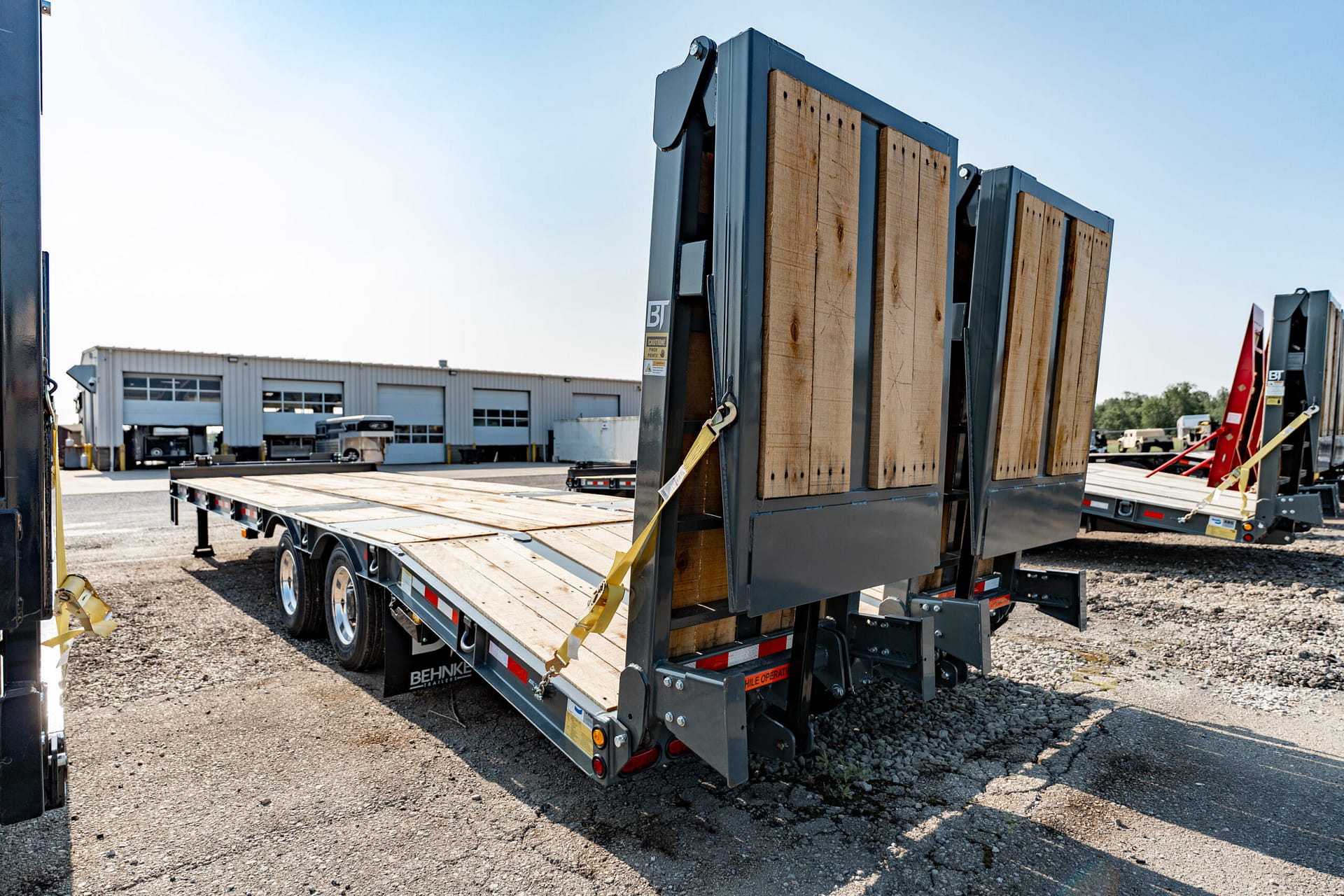 This 40,000 lb. super duty tag-style flatbed is engineered for serious heavy-equipment hauling and comes equipped exclusively with air brakes. Built with a custom-fabricated high-tensile I-beam frame, it offers greater strength than standard mill-rolled steel. Heavy-duty 1″ D-rings are placed every 4′ for easy load securement, while 2″ nominal oak decking and 4″ junior I-beam crossmembers (on 16″ centers) provide exceptional durability under the heaviest loads. Multiple beavertail and ramp configurations are available to simplify loading.
