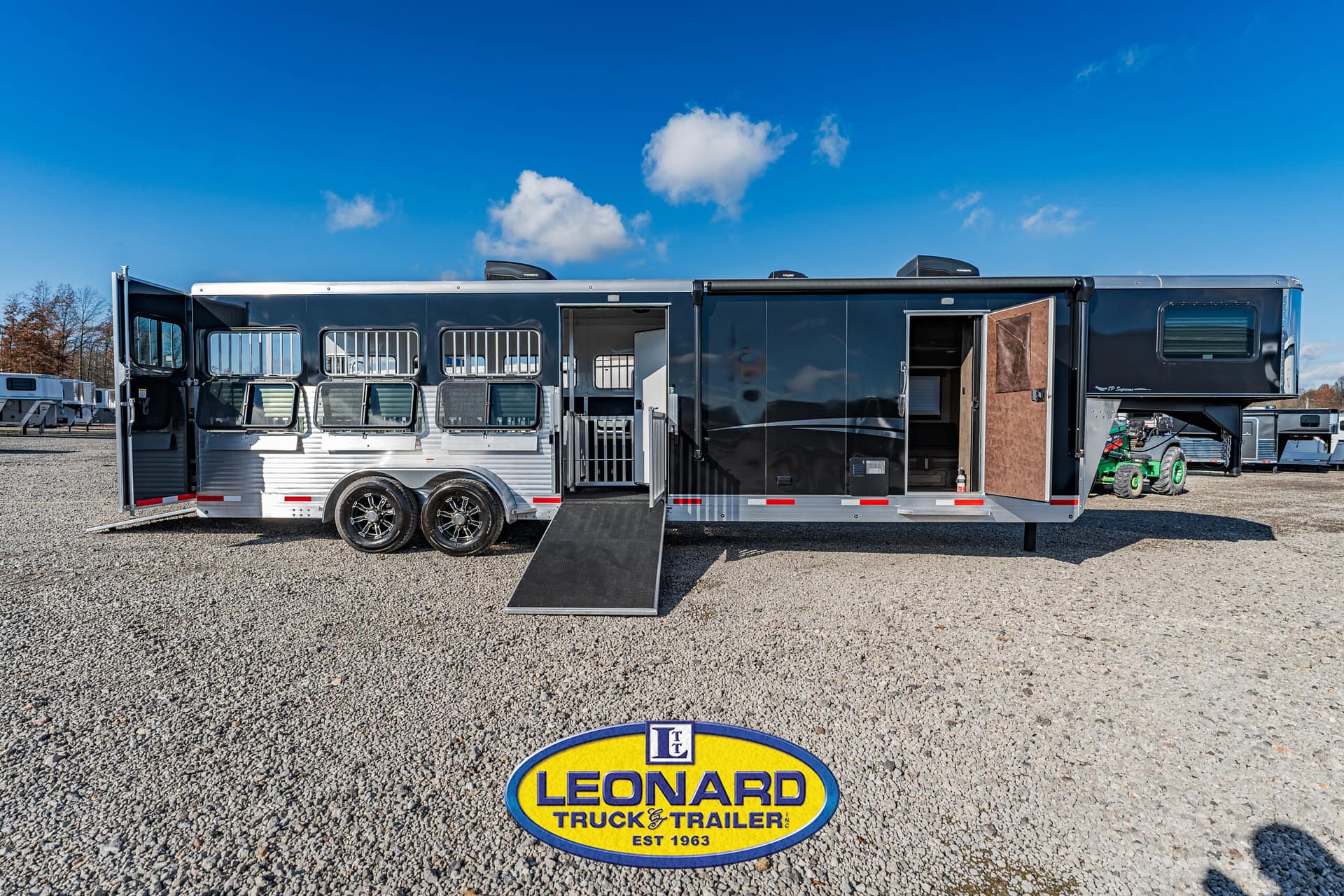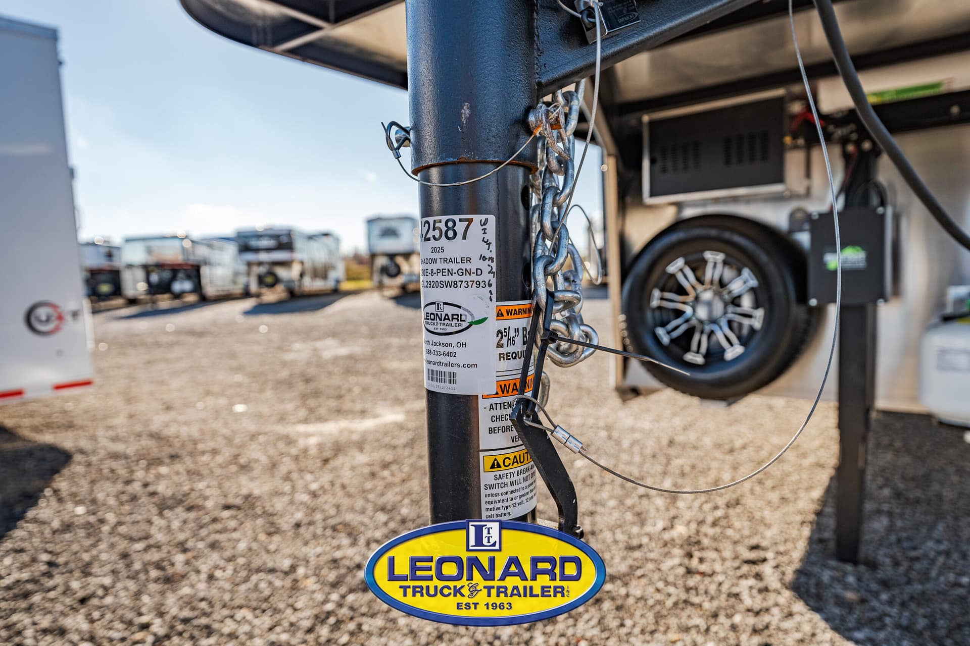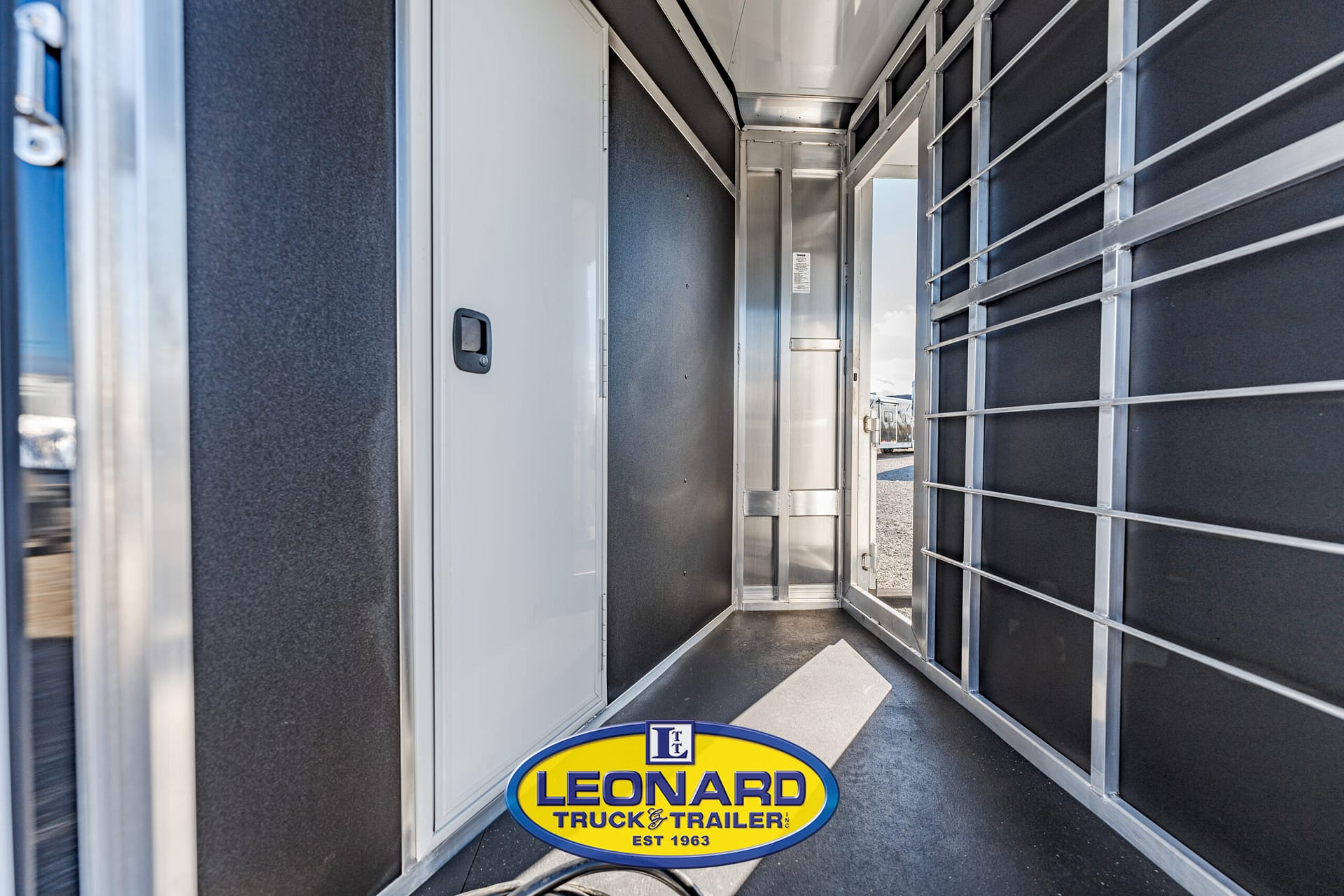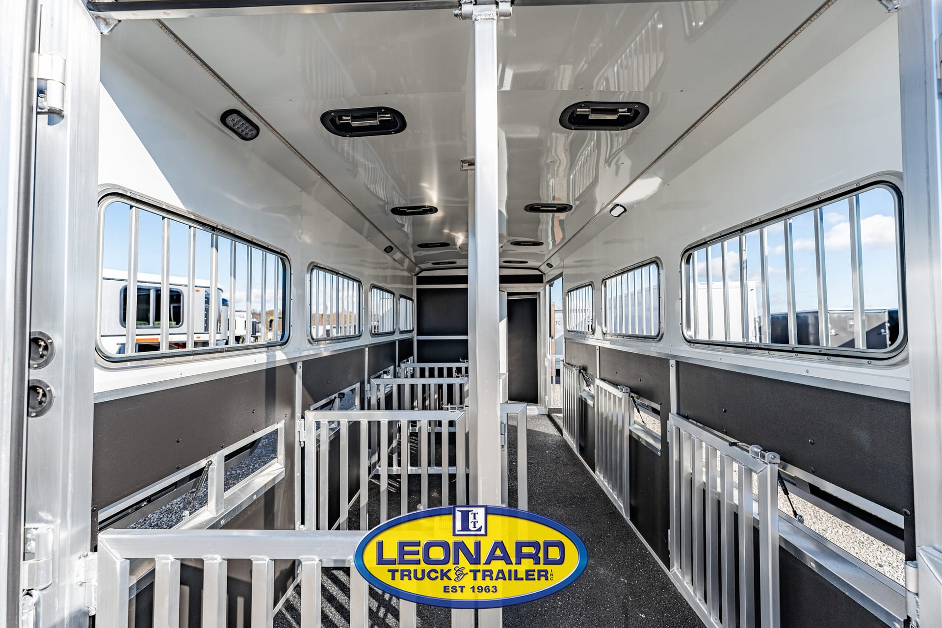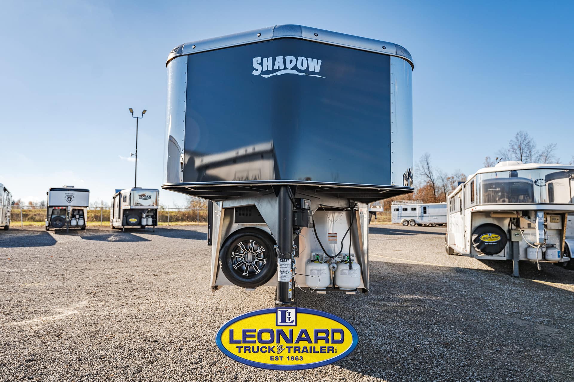 New 2025 Shadow 8-Pen gooseneck stock trailer. 29′ on the floor, 37′ overall length. 66″ straight wall mid tack with feeder bars, 7’6″ LQ, 42″ side load ramp, 60/40 or 50/50 interchangeable pen system, lined and insulated with rear double doors. 7000# axles. Call for more details!