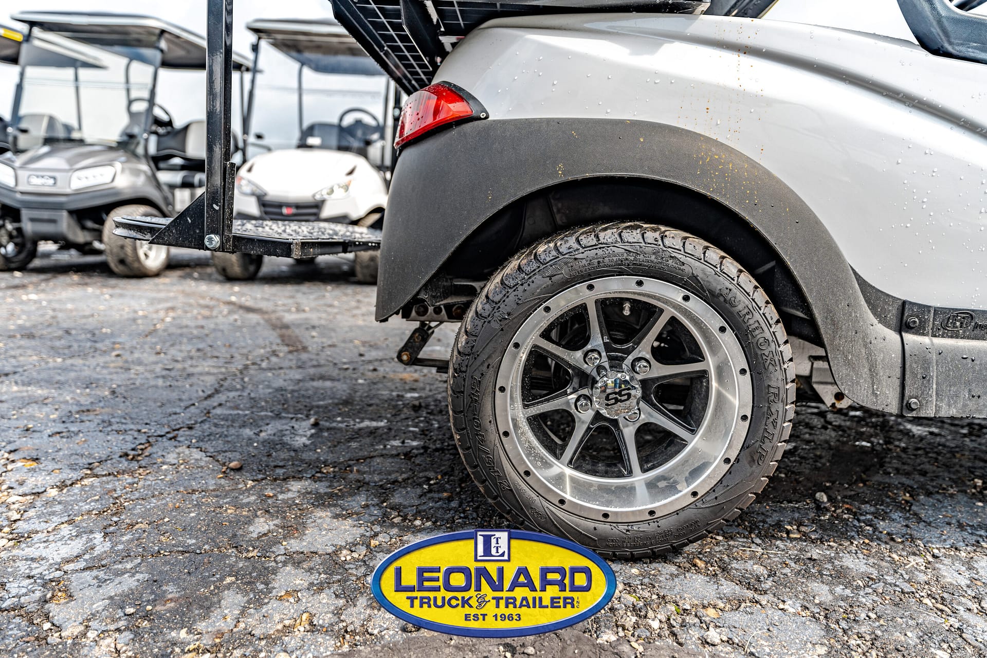 Used 2018 CLUB CAR PRECEDENT gas cart with seat kit, heavy duty springs and 80″ eagle top. All terrain tires