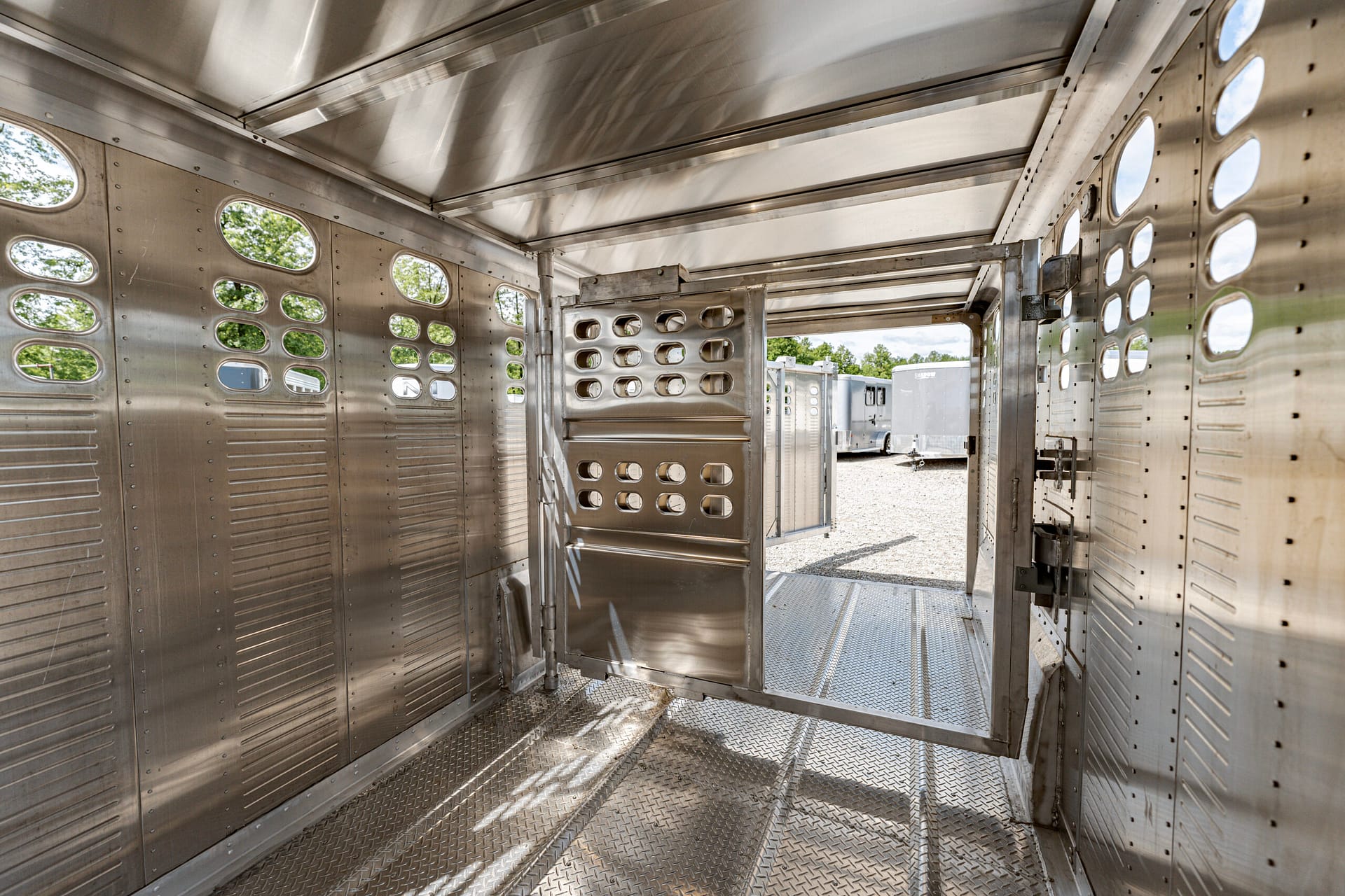 Our most popular gooseneck stock trailer. The Ranch Hand punch style aluminum livestock trailer offers you the same reliable construction as our sales leading livestock semi-trailers in a stock trailer having all the essential features and a convenient but limited list of available options. Choose between natural aluminum sides or opt for the popular black or gun metal sides. Wilson goosenecks are made stronger to endure the toughest of demands, yet remain quieter and easier to pull for a longer period of time.