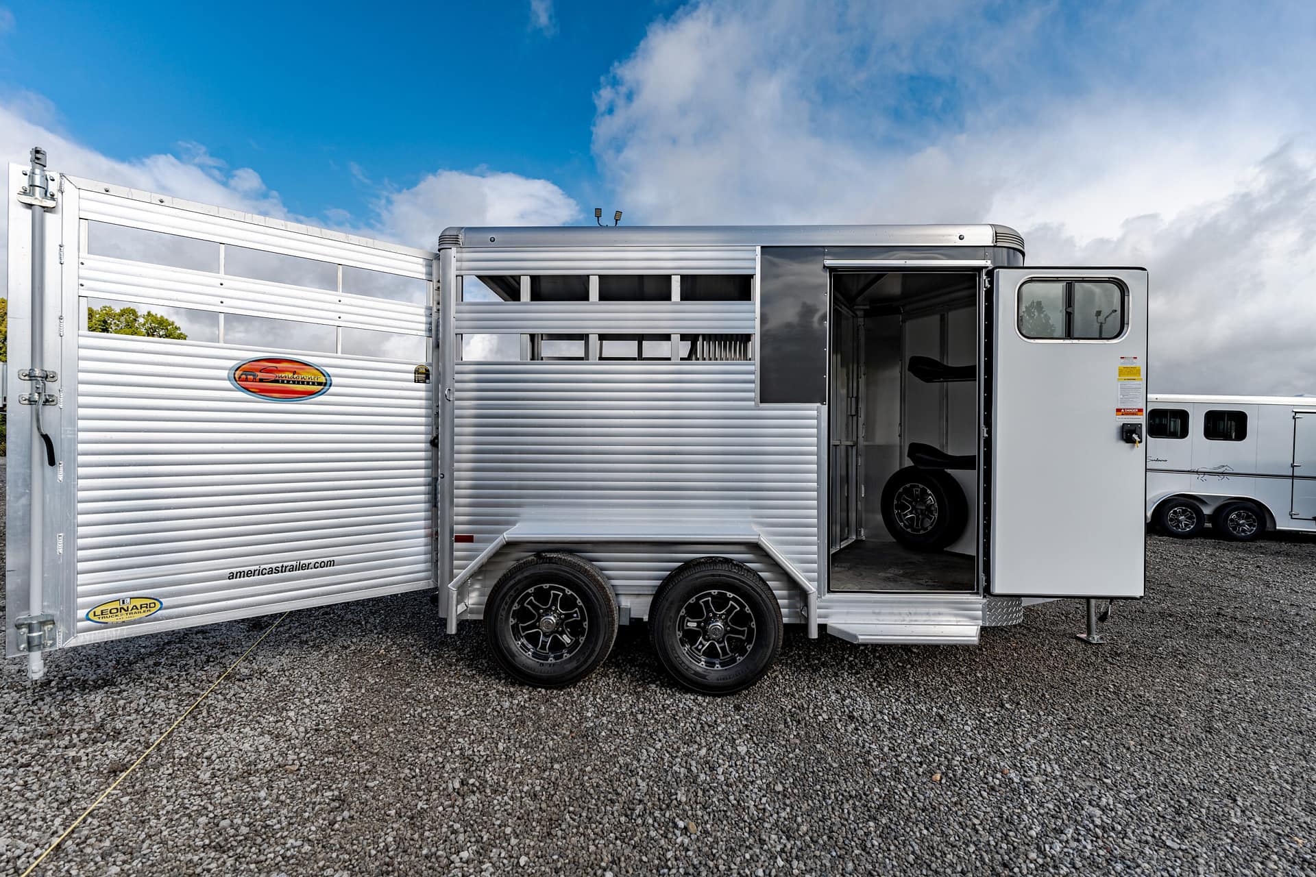 Stockman Special has the following features 12’9″ all aluminum construction, loaded with features such as heavy duty fenders, spare, 2′ gravel guard on bumper pull. 3 year hitch to bumper warranty and 8 year structural warranty. Call for more details!