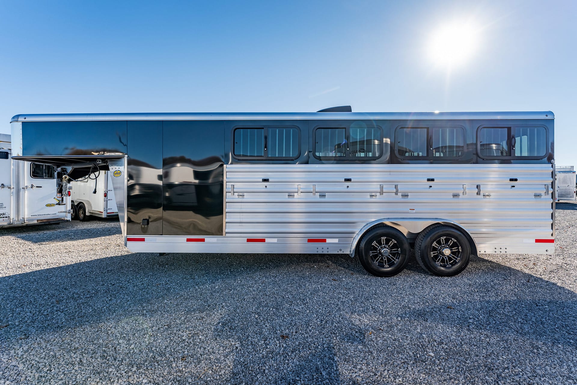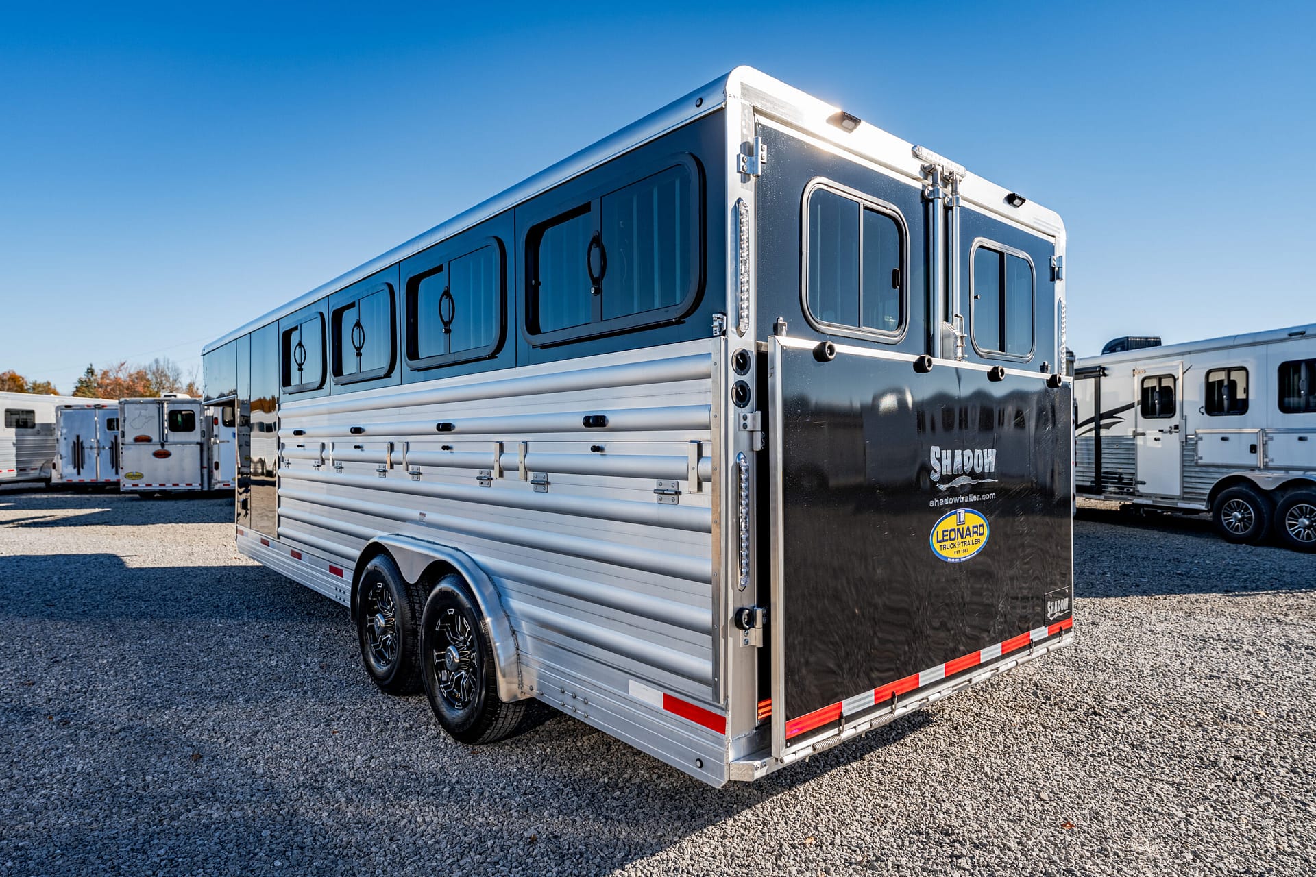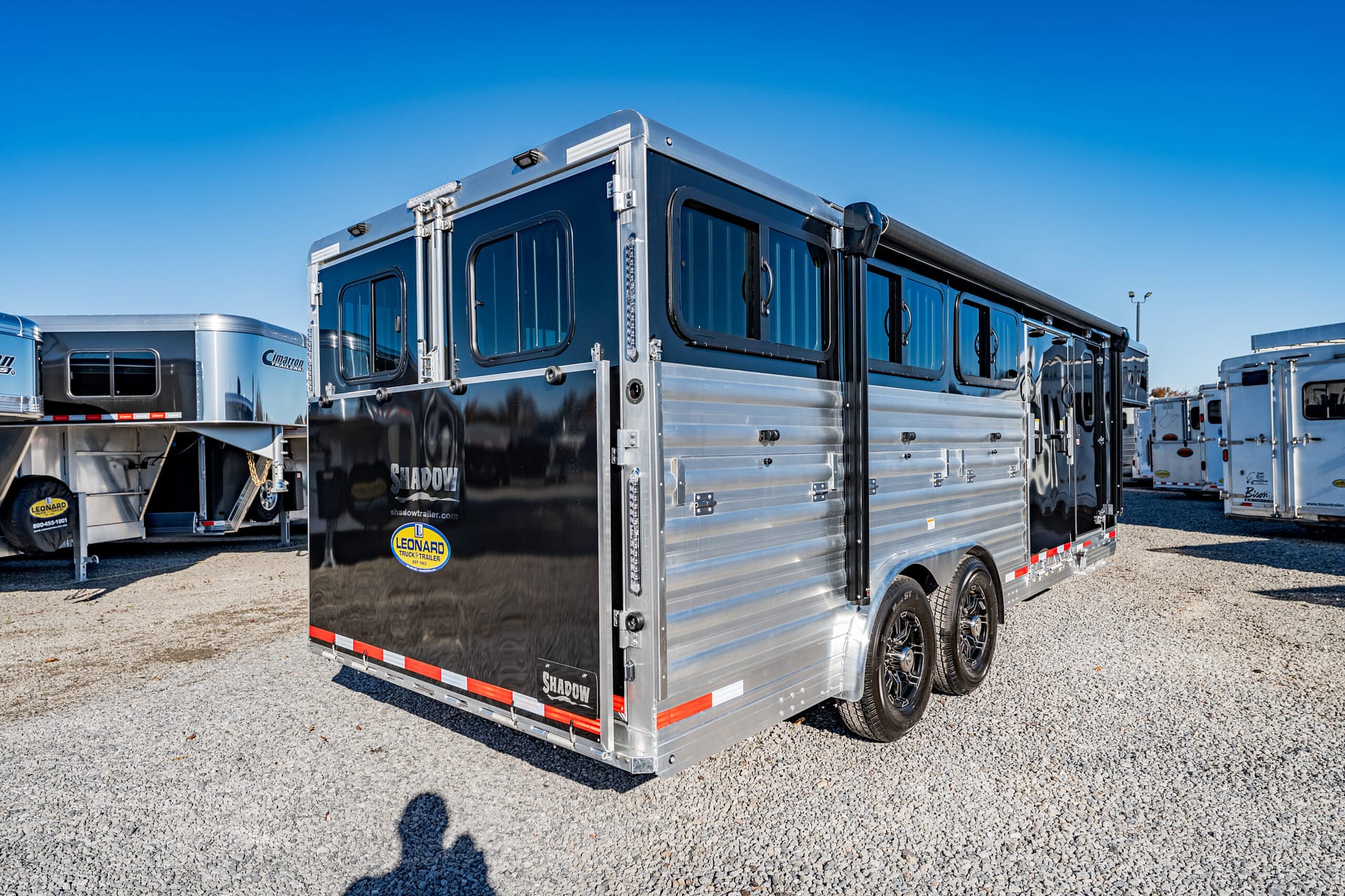 Shadow Stock Trailers are built tough for everyday use on the ranch. Shadow offers 8’ wide. The spring axles give your stock a much better ride, getting your livestock and horses to their destination with less stress and fatigue.