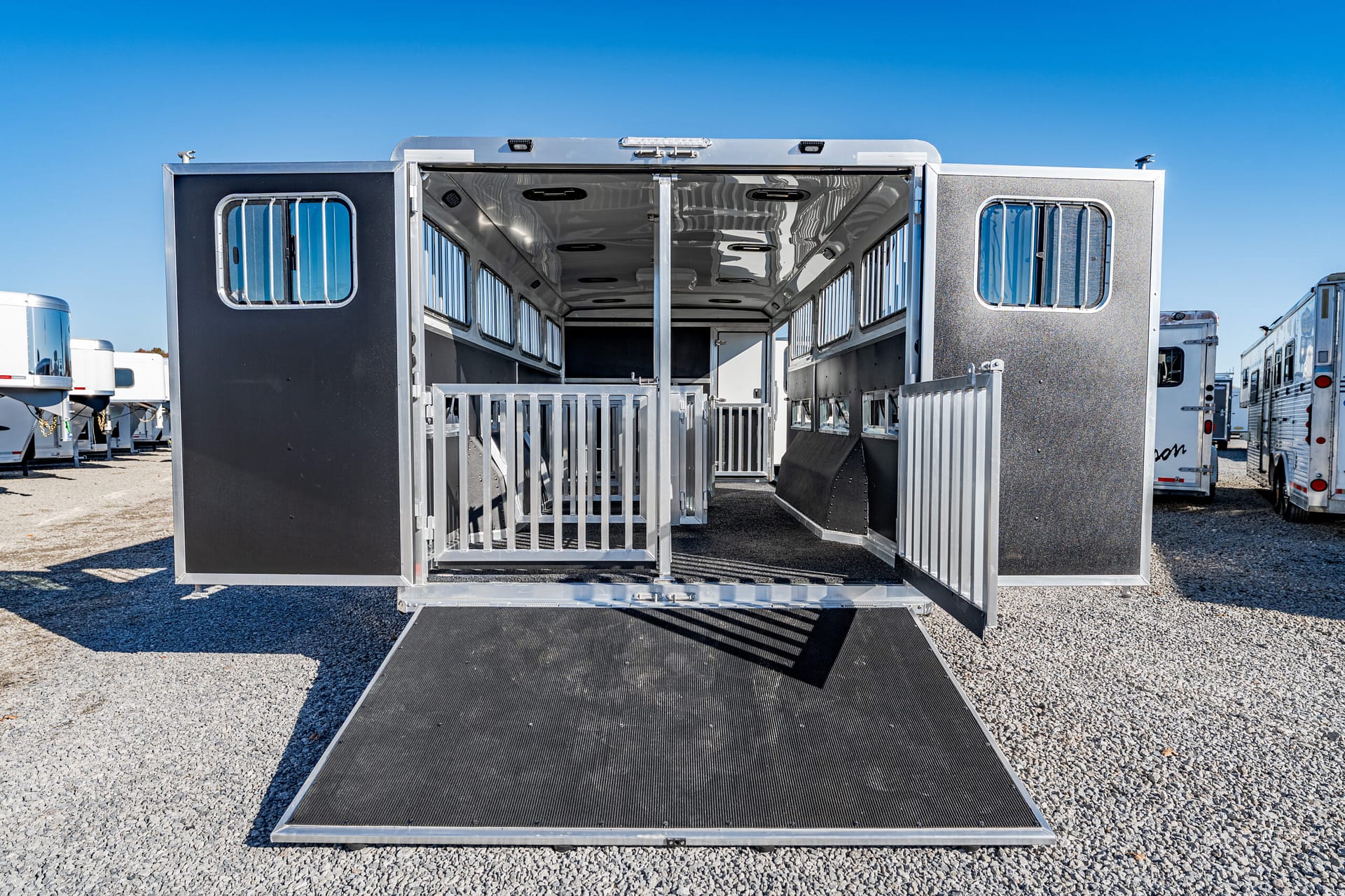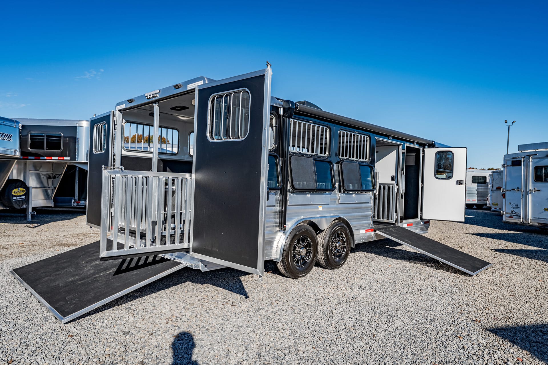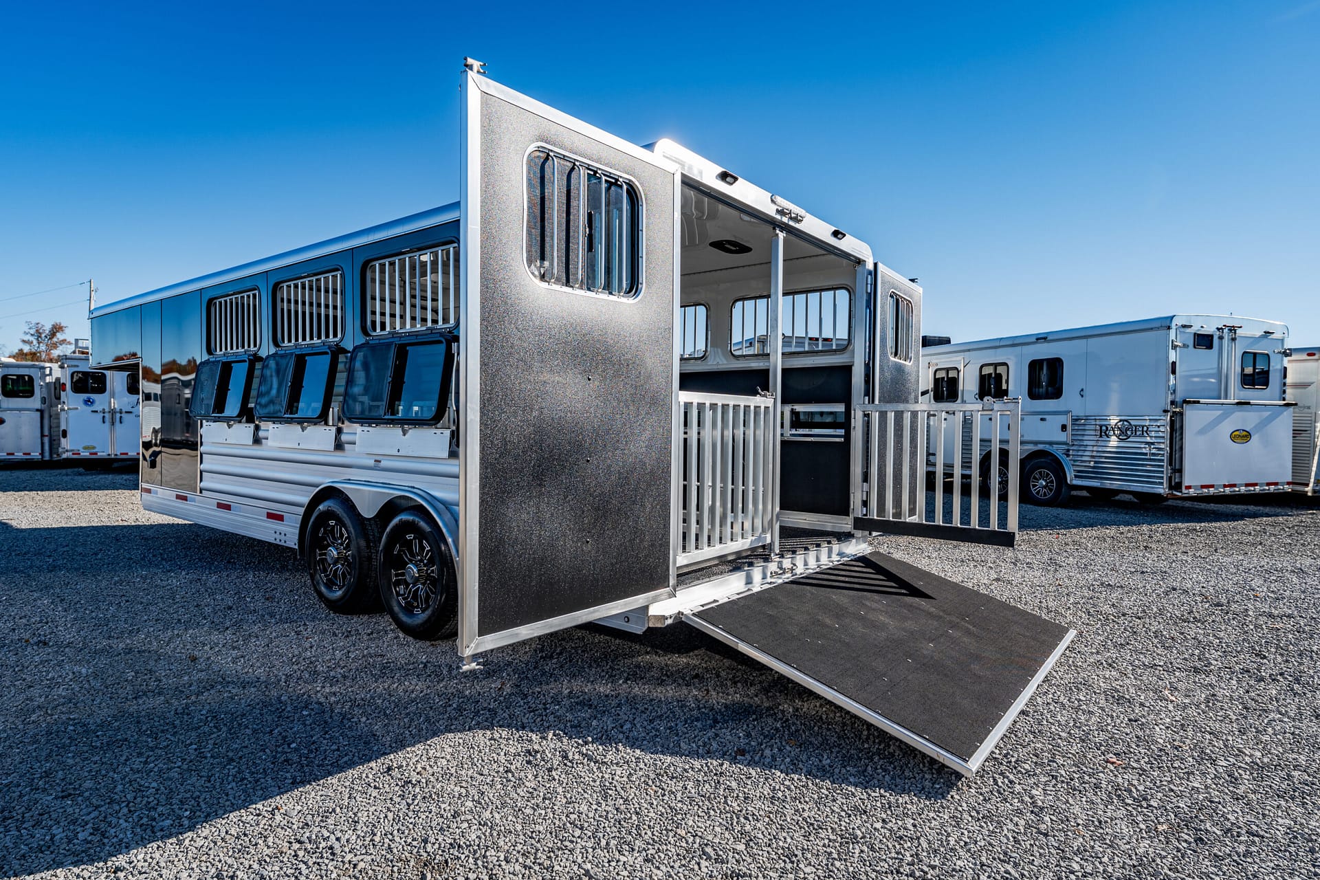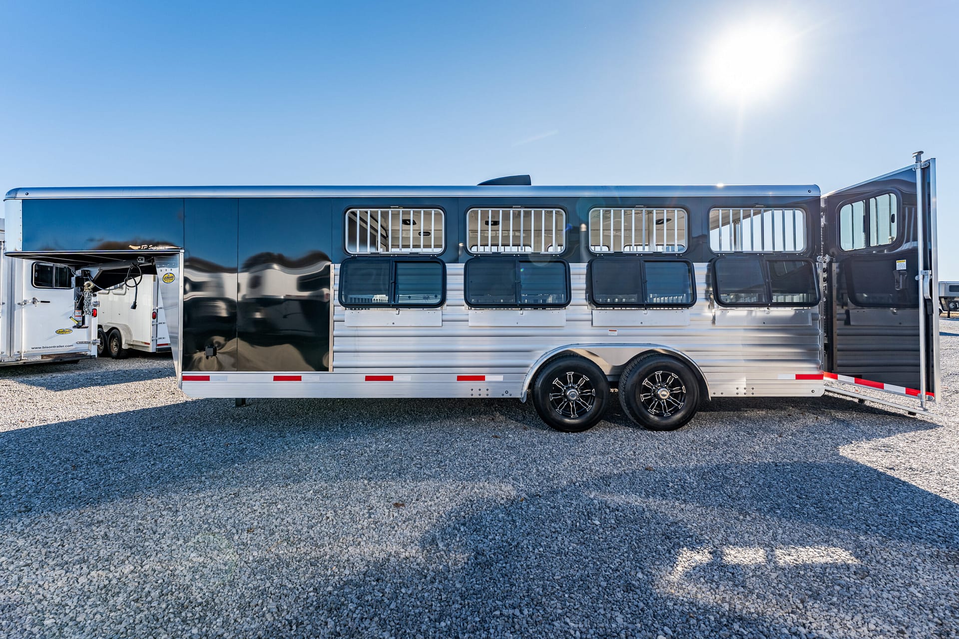 Shadow Stock Trailers are built tough for everyday use on the ranch. Shadow offers 8’ wide. The spring axles give your stock a much better ride, getting your livestock and horses to their destination with less stress and fatigue.
