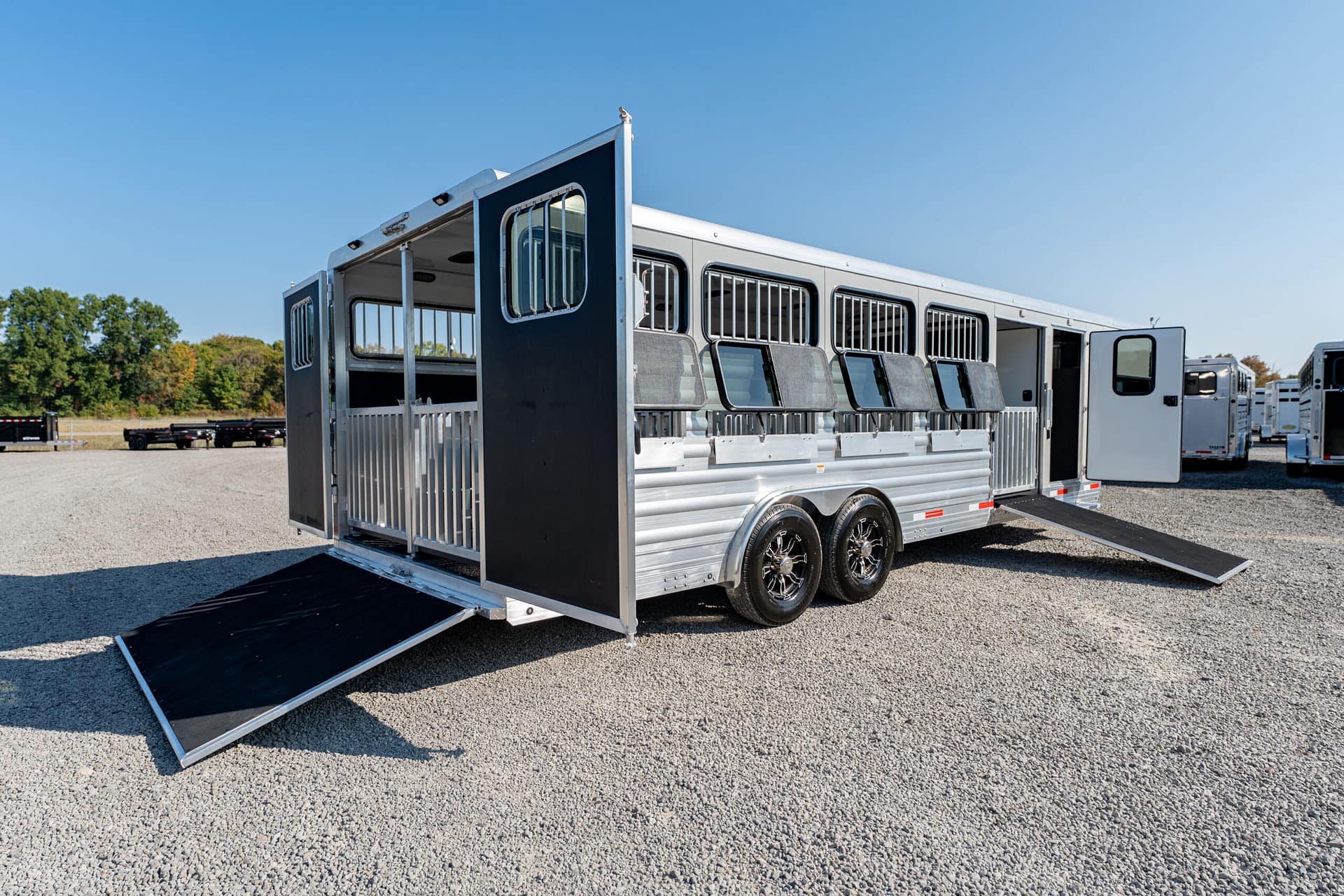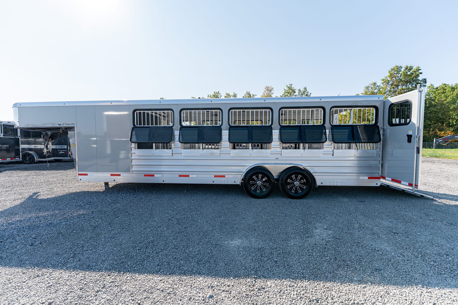 Shadow Stock Trailers are built tough for everyday use on the ranch. Shadow offers 8’ wide. The spring axles give your stock a much better ride, getting your livestock and horses to their destination with less stress and fatigue.