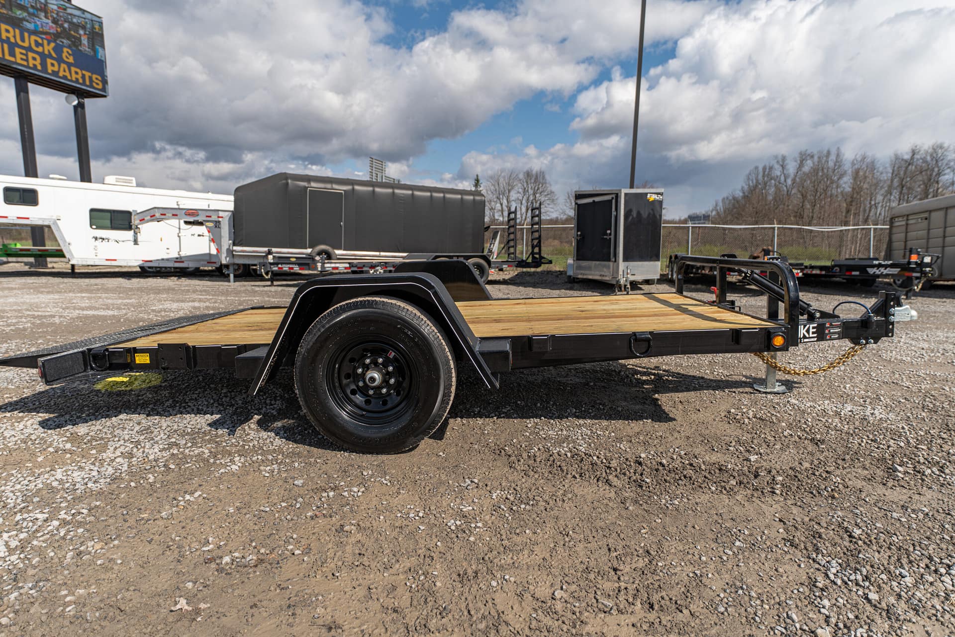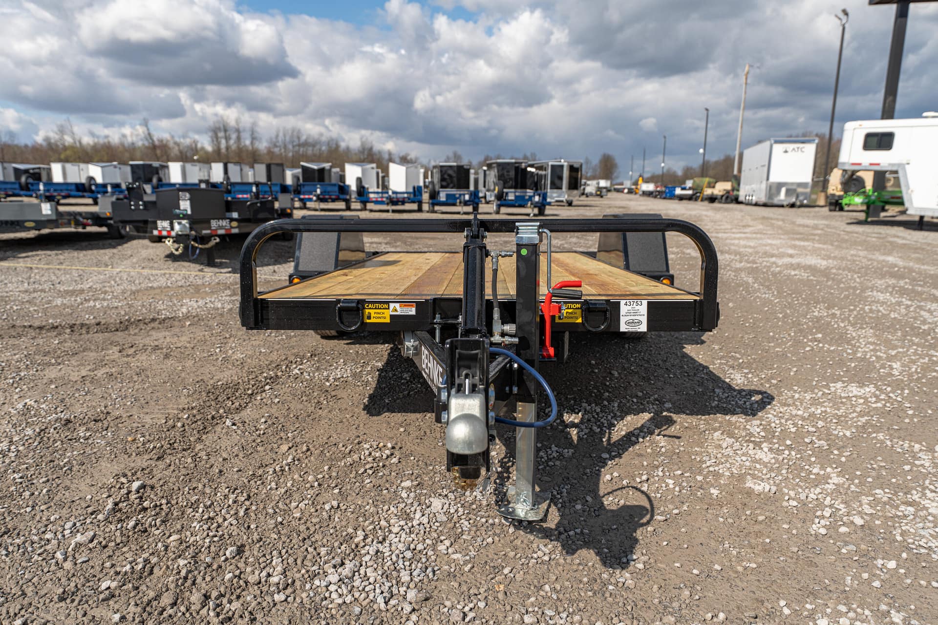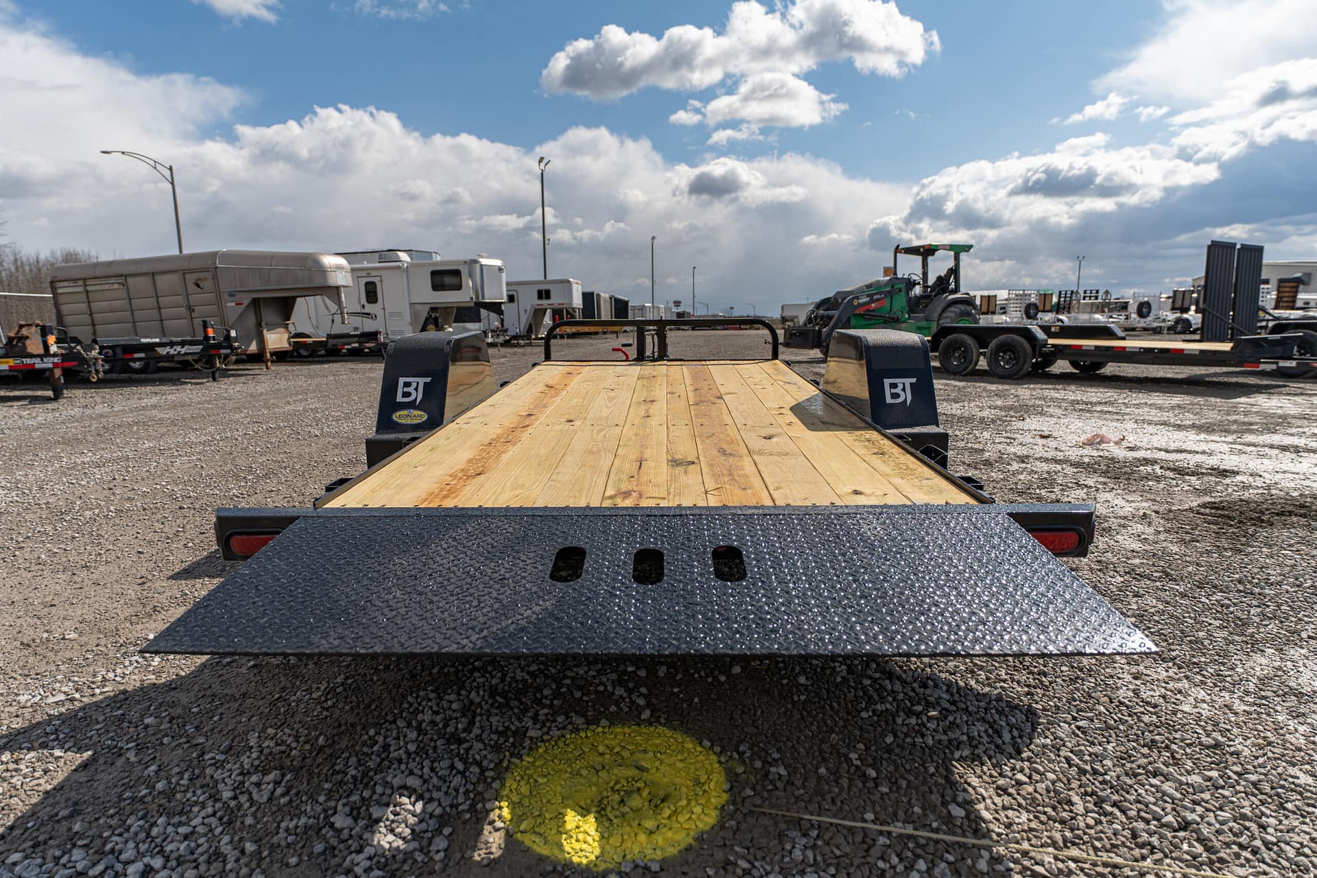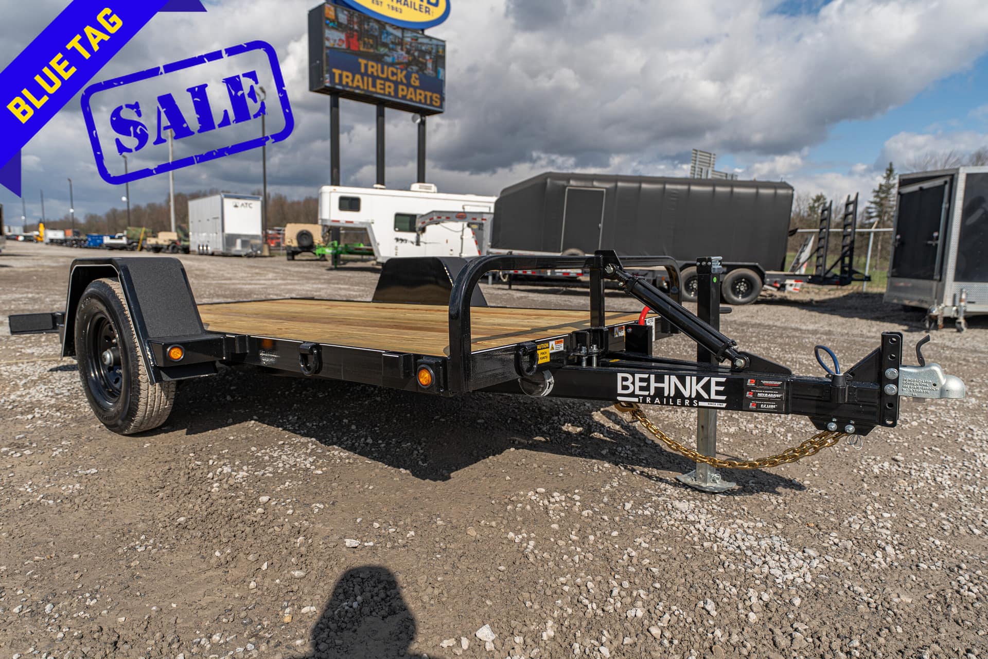 The full tilt features a single 5-7K axle with a 10-12′ tilt deck. Frame widths of 60-80″ can be achieved between the fenders. These trailers are pull-type configurations with a cylinder, that pivots off of the tongue.