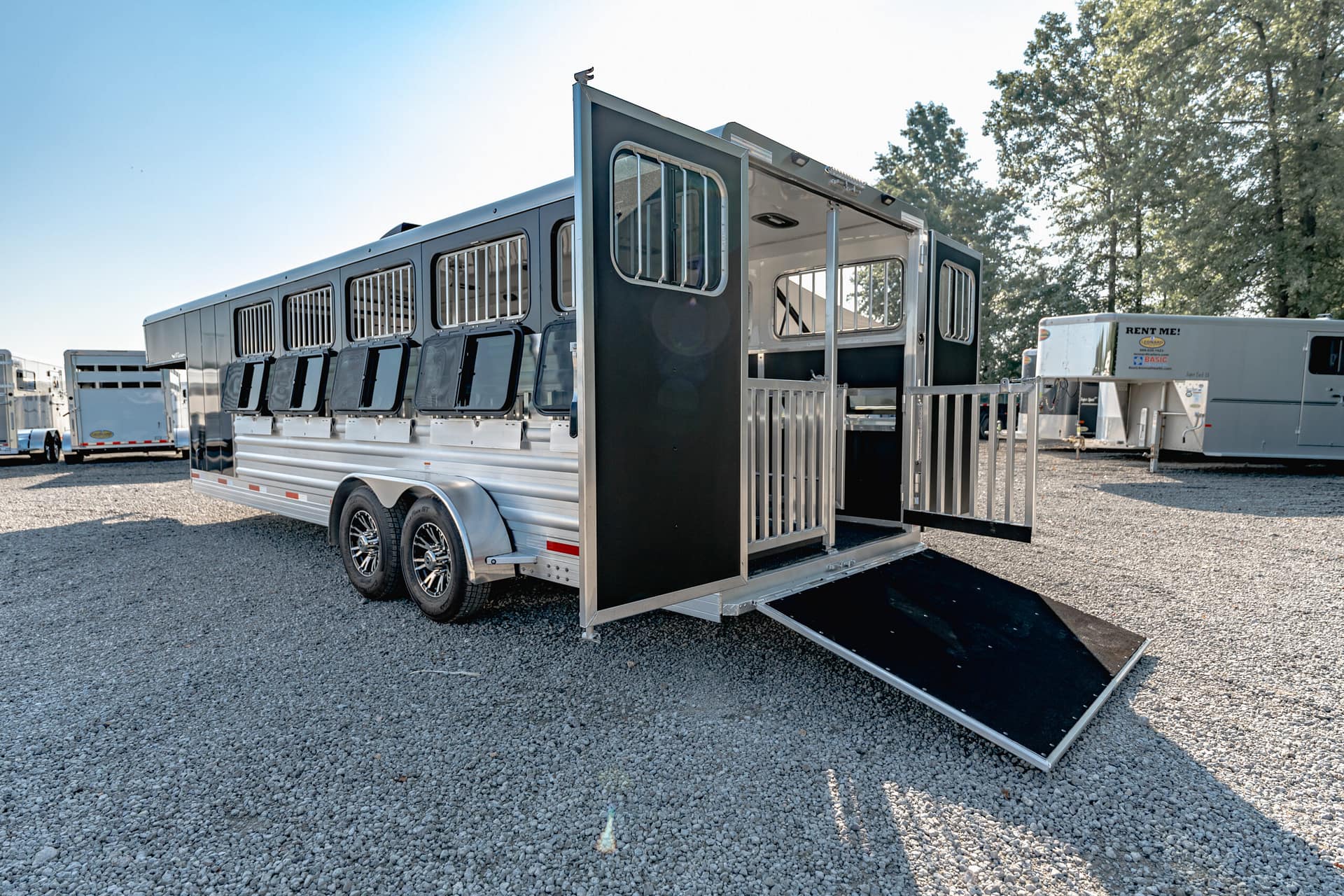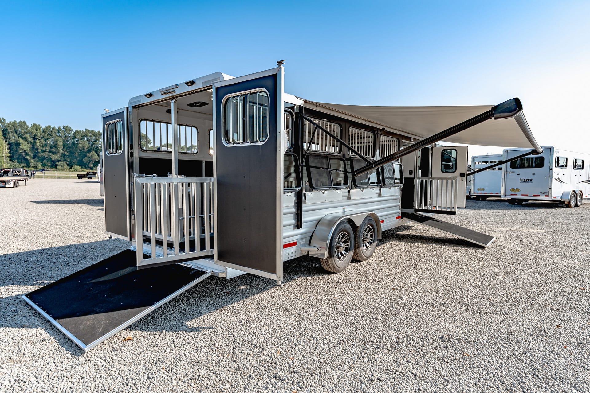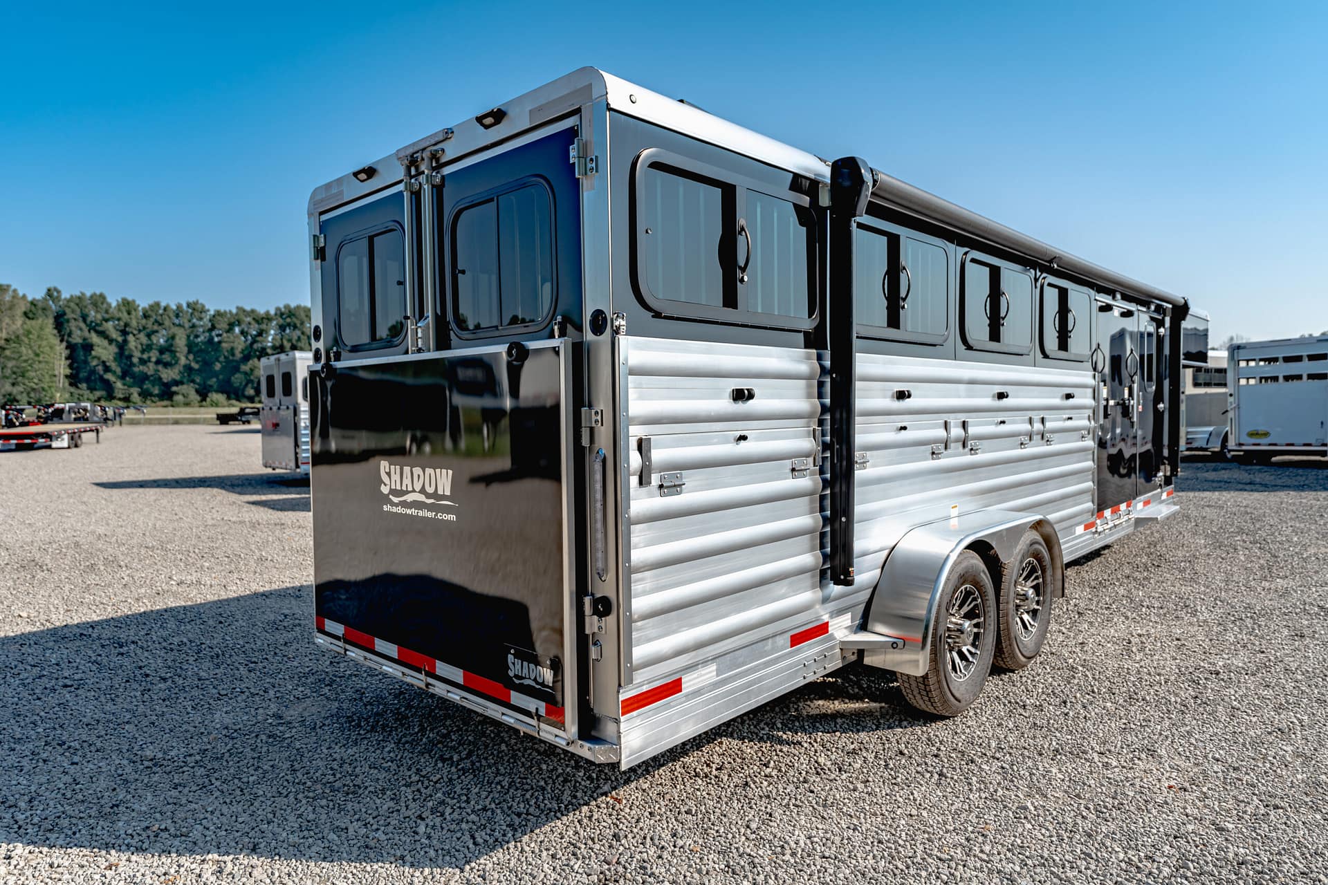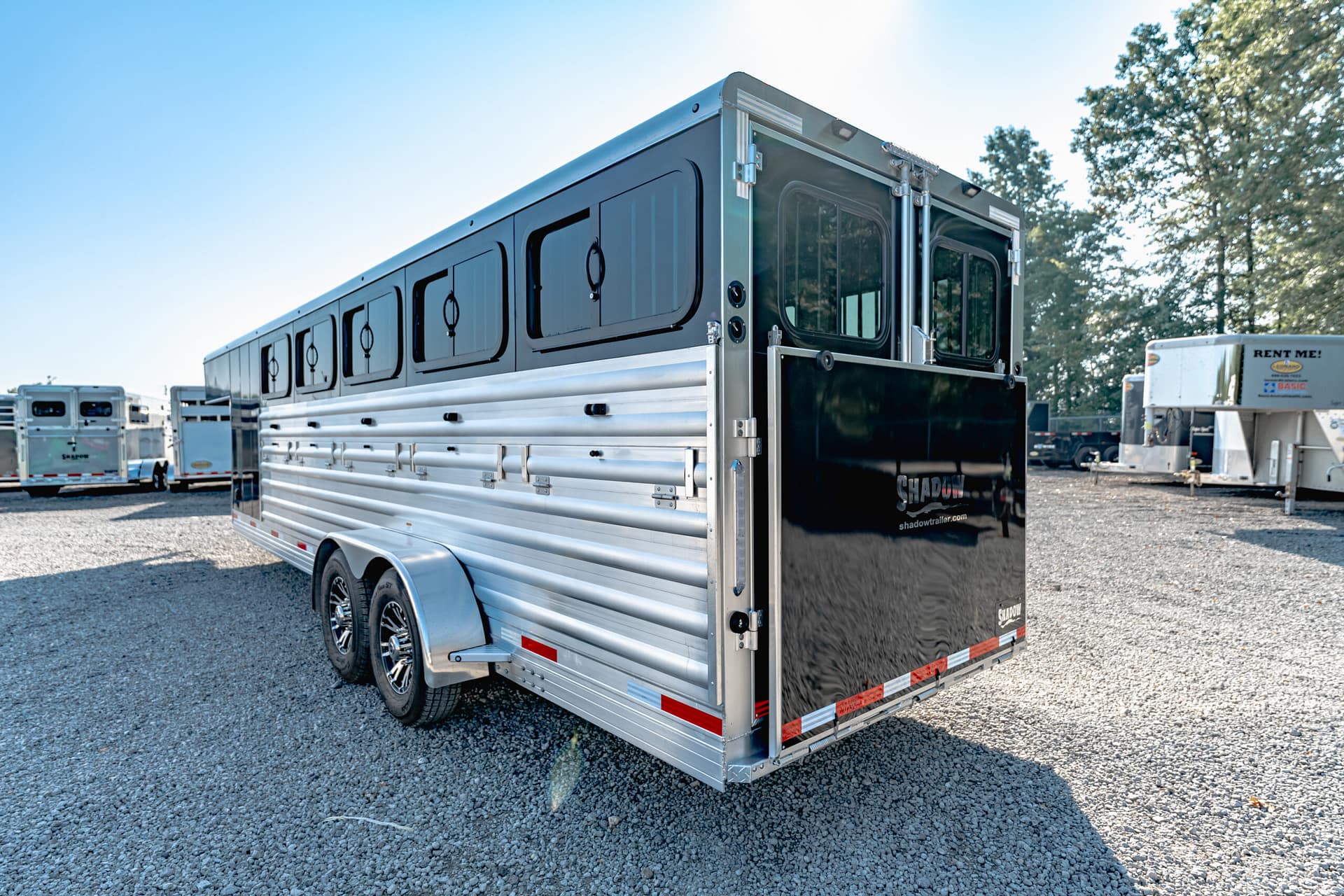 Shadow Stock Trailers are built tough for everyday use on the ranch. Shadow offers 8’ wide. The spring axles give your stock a much better ride, getting your livestock and horses to their destination with less stress and fatigue.