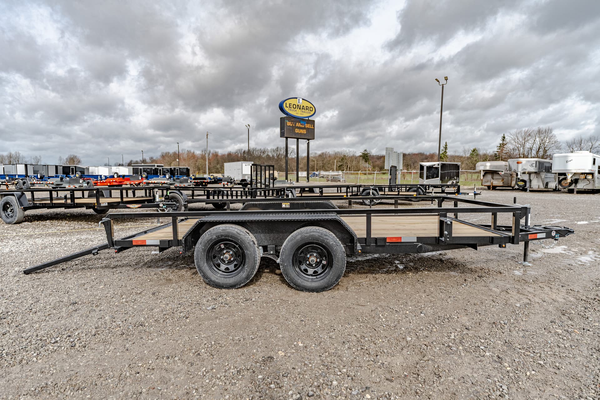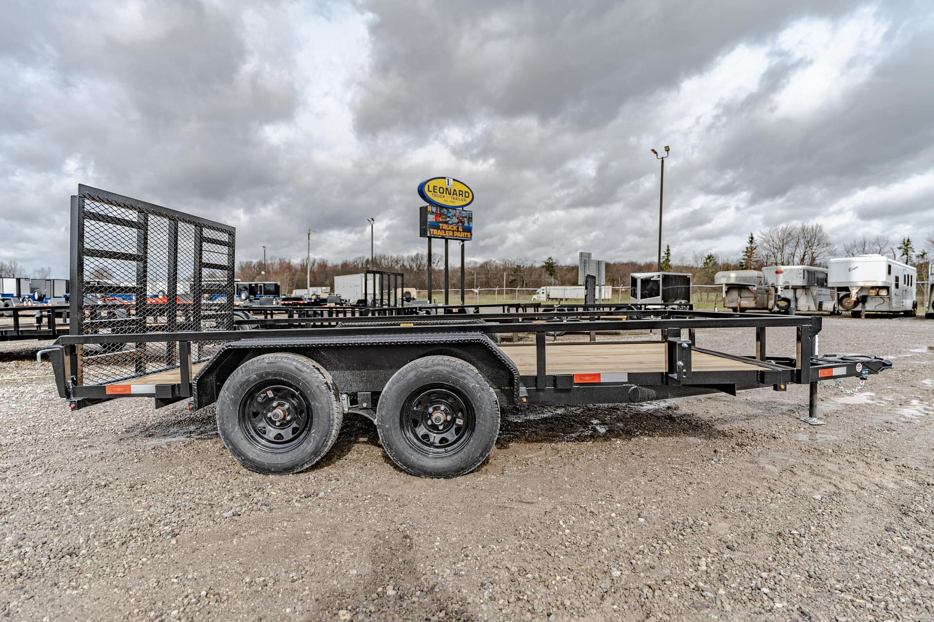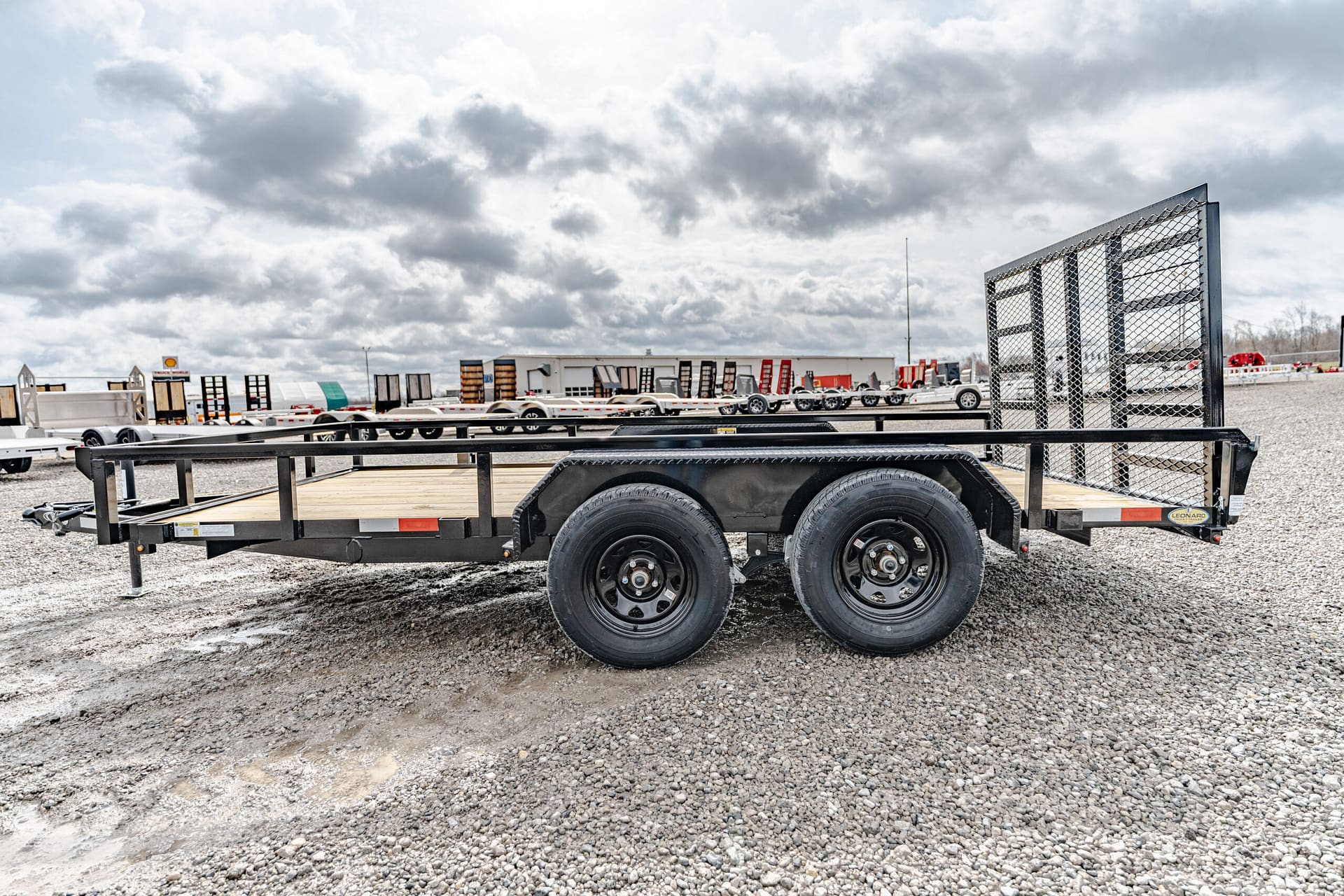 Strong and simple, the sturdy steel frame of the Rail Side Utility trailer is fully powder coated for years of reliable service. LED lighting, enclosed sealed wiring harness and plug, spare mount, and EZ lube hubs are all standard features. The Rail Side Utility trailer is available in several single and tandem axle configurations. Its durable design makes this our most popular trailer.