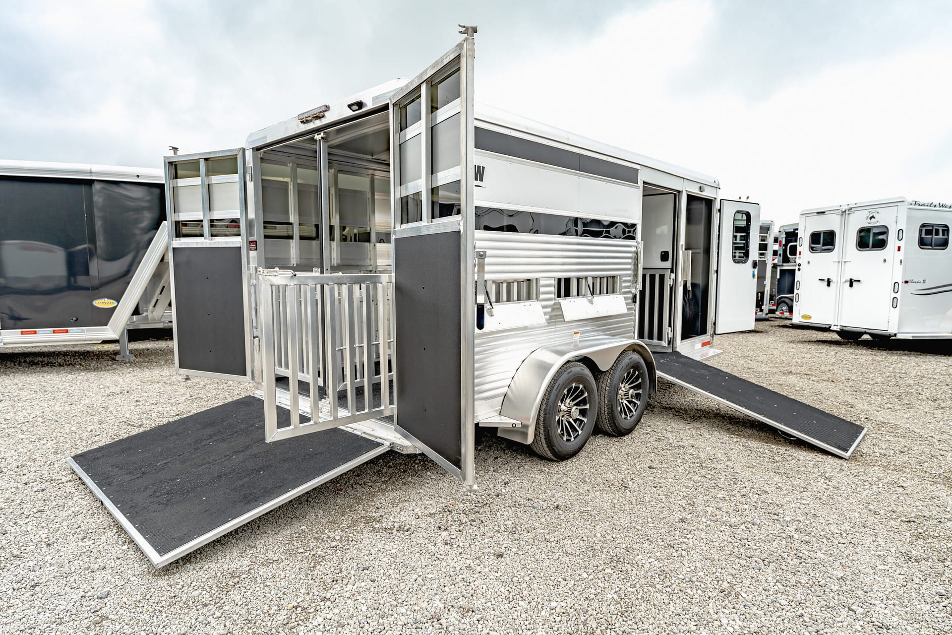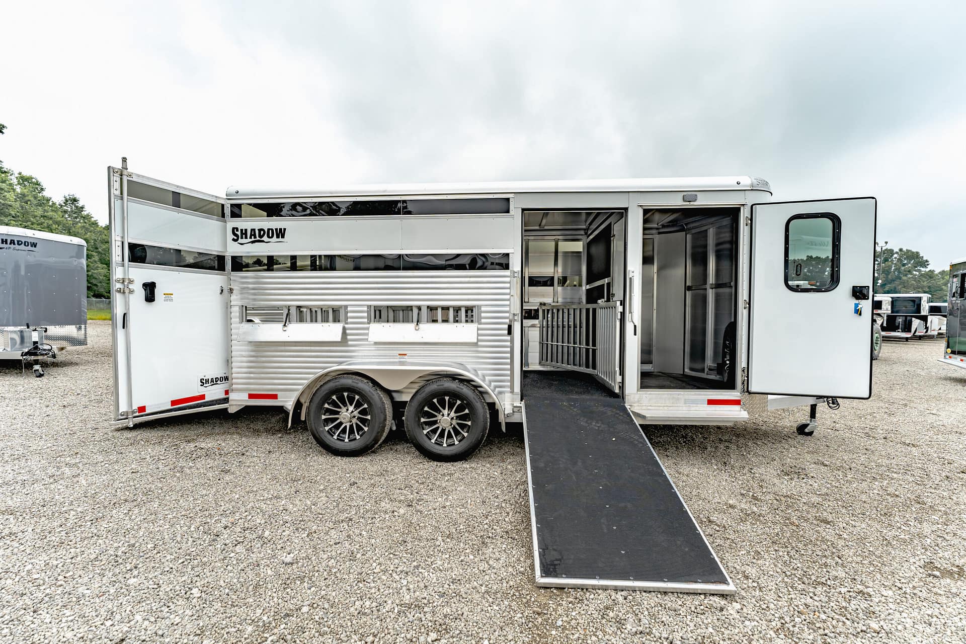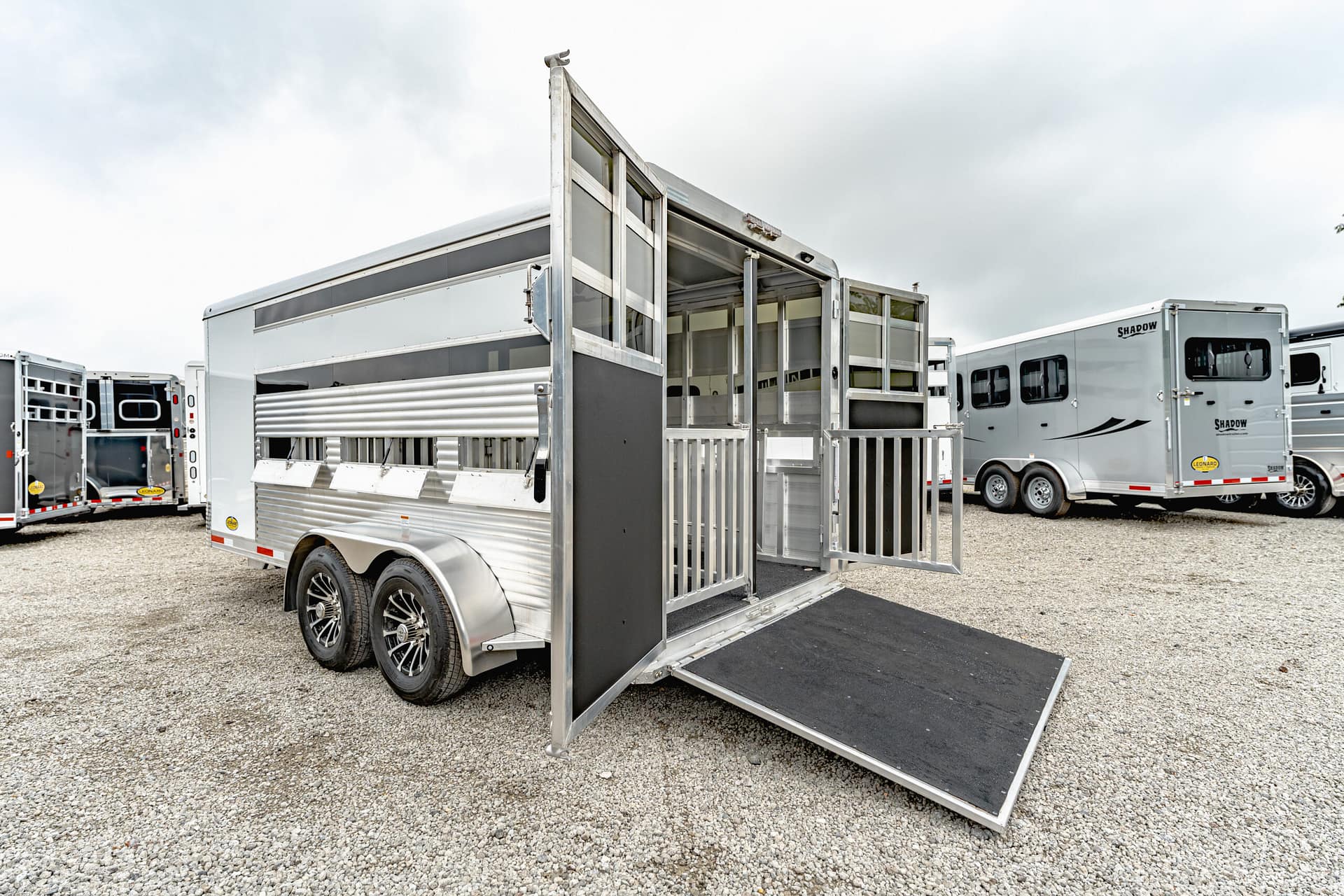 Shadow Stock Trailers are built tough for everyday use on the ranch. Shadow offers 8’ wide. The spring axles give your stock a much better ride, getting your livestock and horses to their destination with less stress and fatigue.