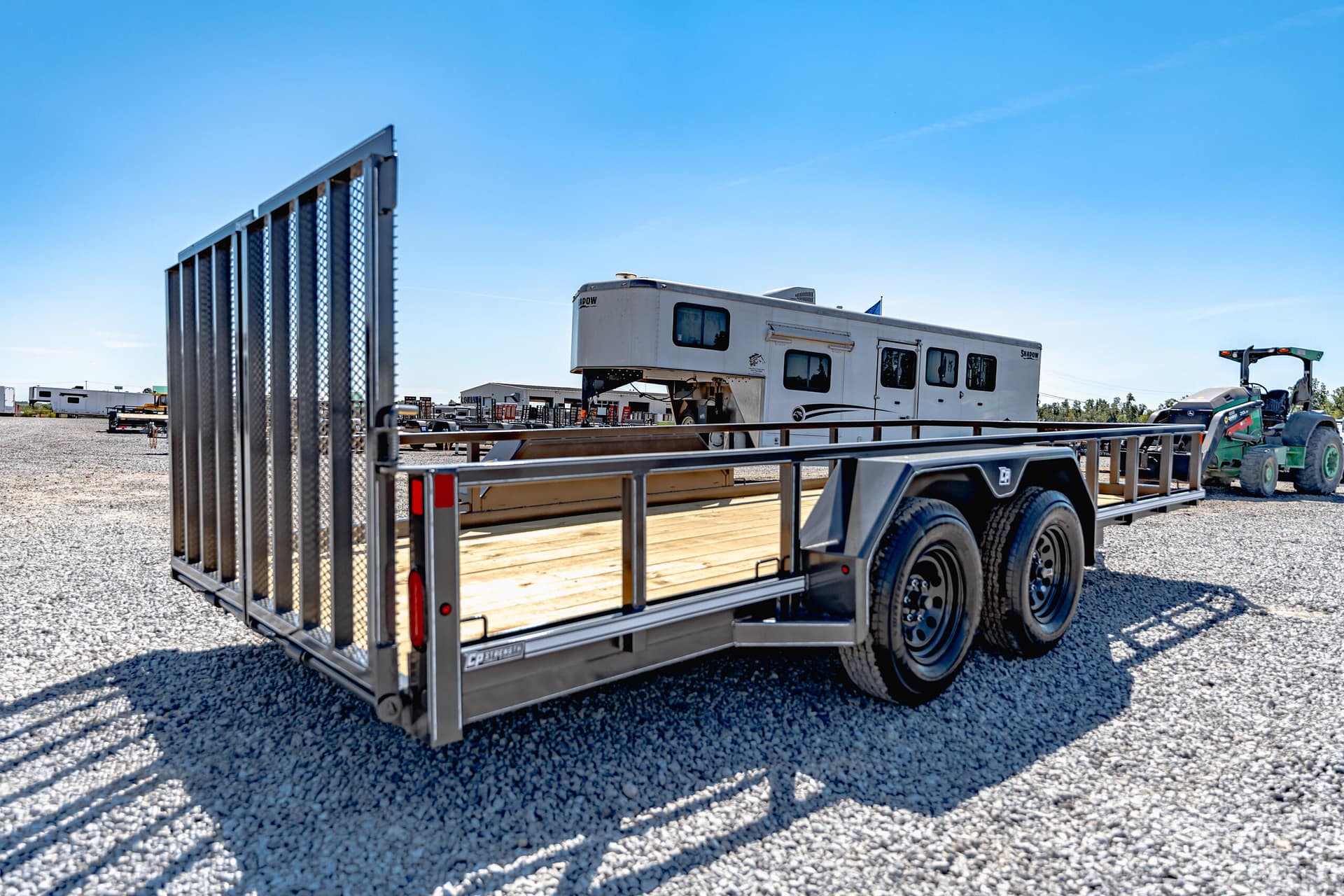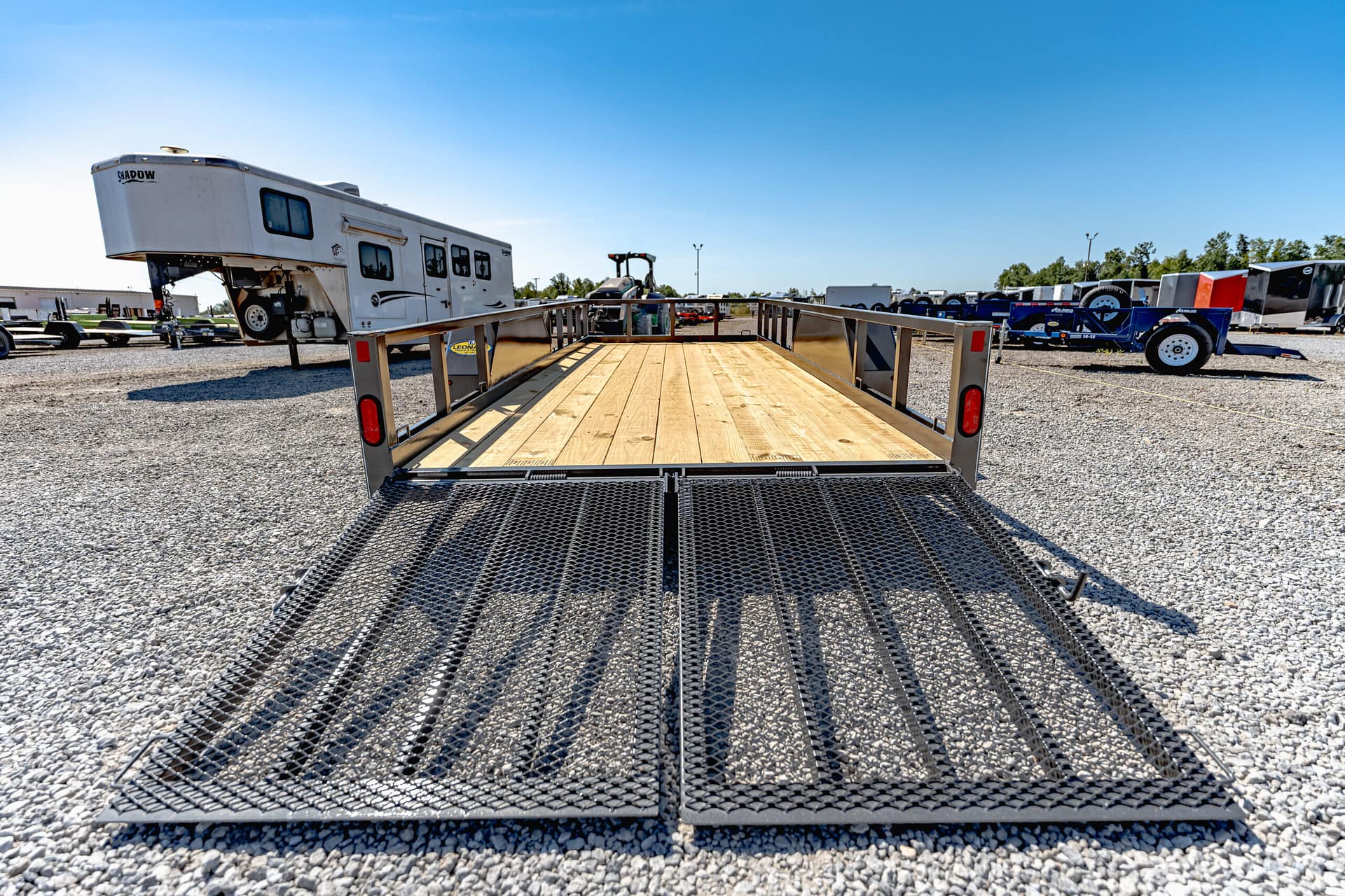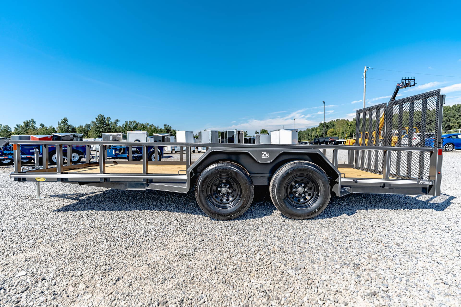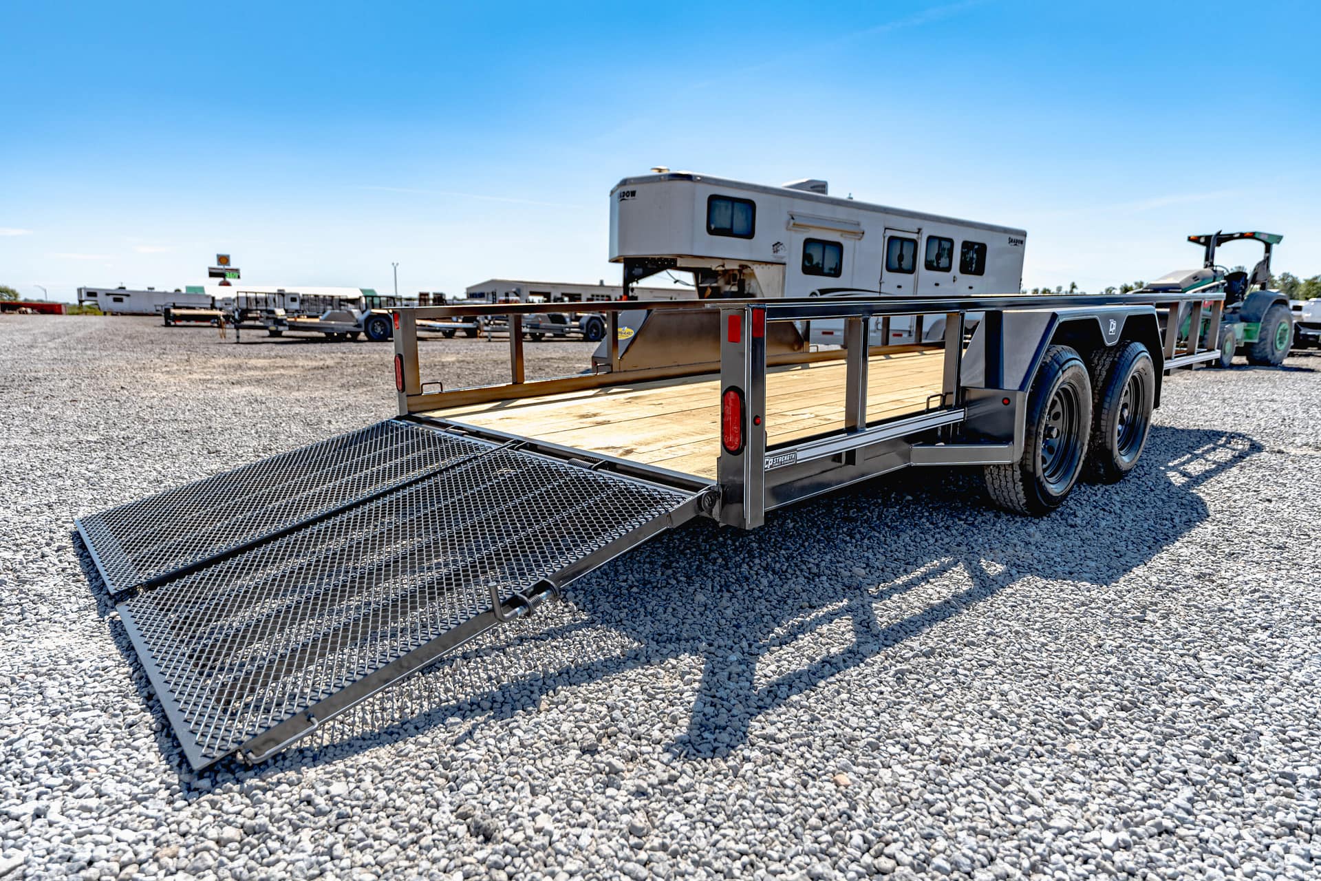 Need the type of trailer the pros use? Step up to the CornPro UTL. Made with the same 24” on center cross-members rolling on the same high-quality torsion axles and radial tires, the UTL adds 80″ of fender to fender space with four optional lengths. Solid, kiln-dried flooring and a tread plate ramps make this trailer ready to haul your largest lawn equipment.