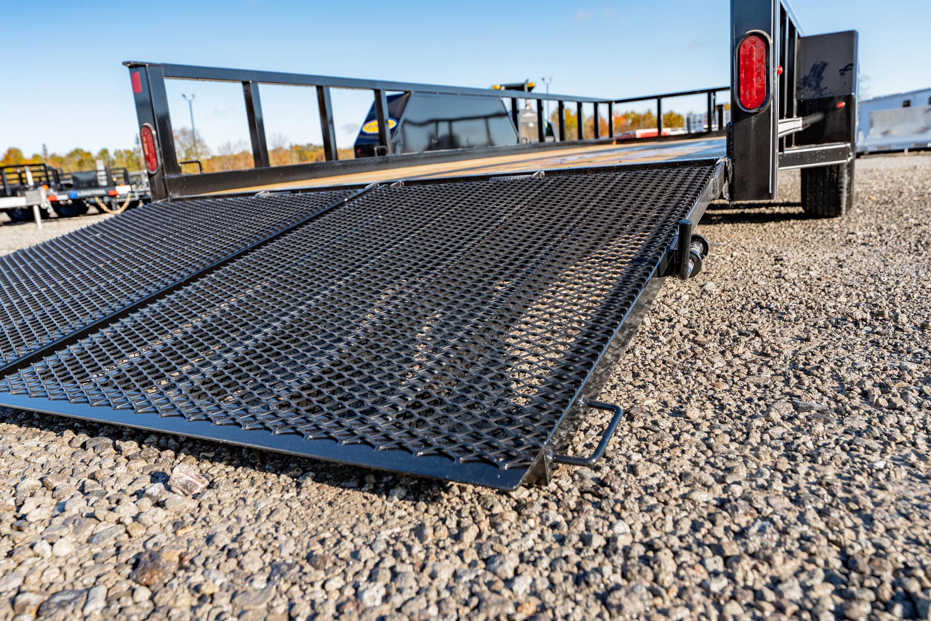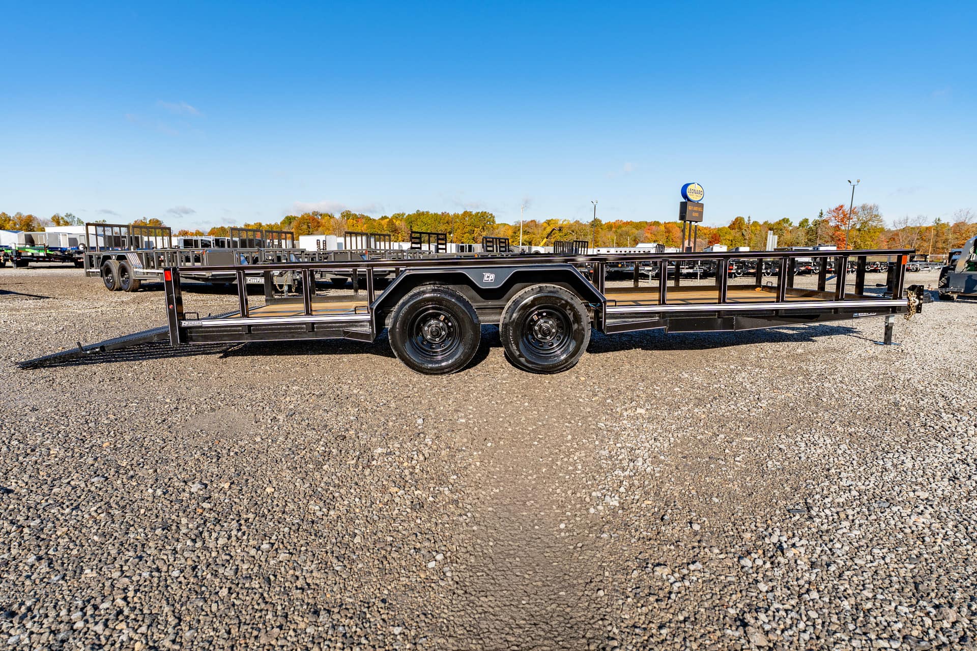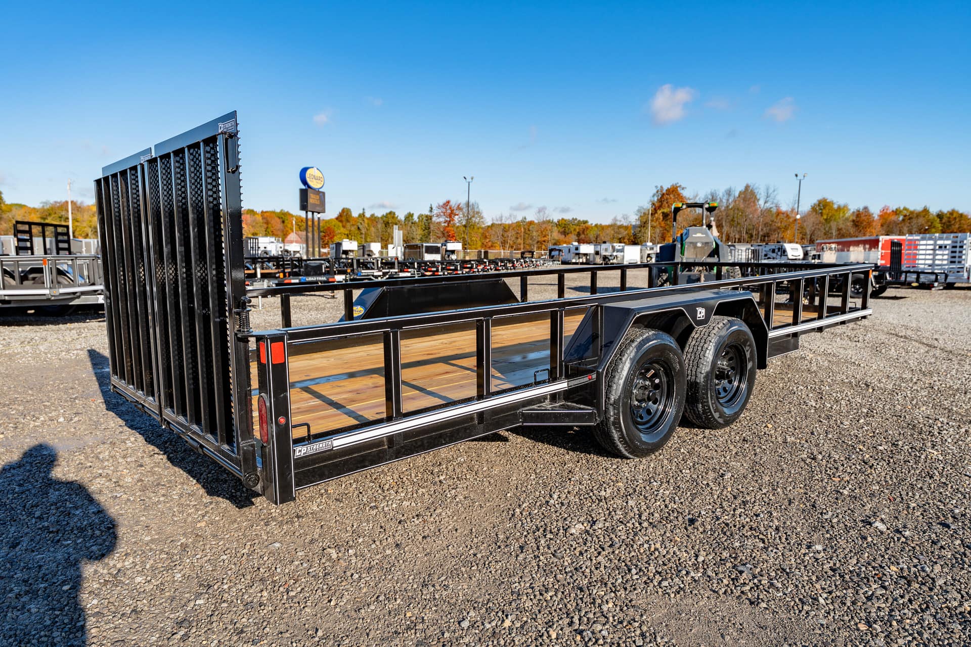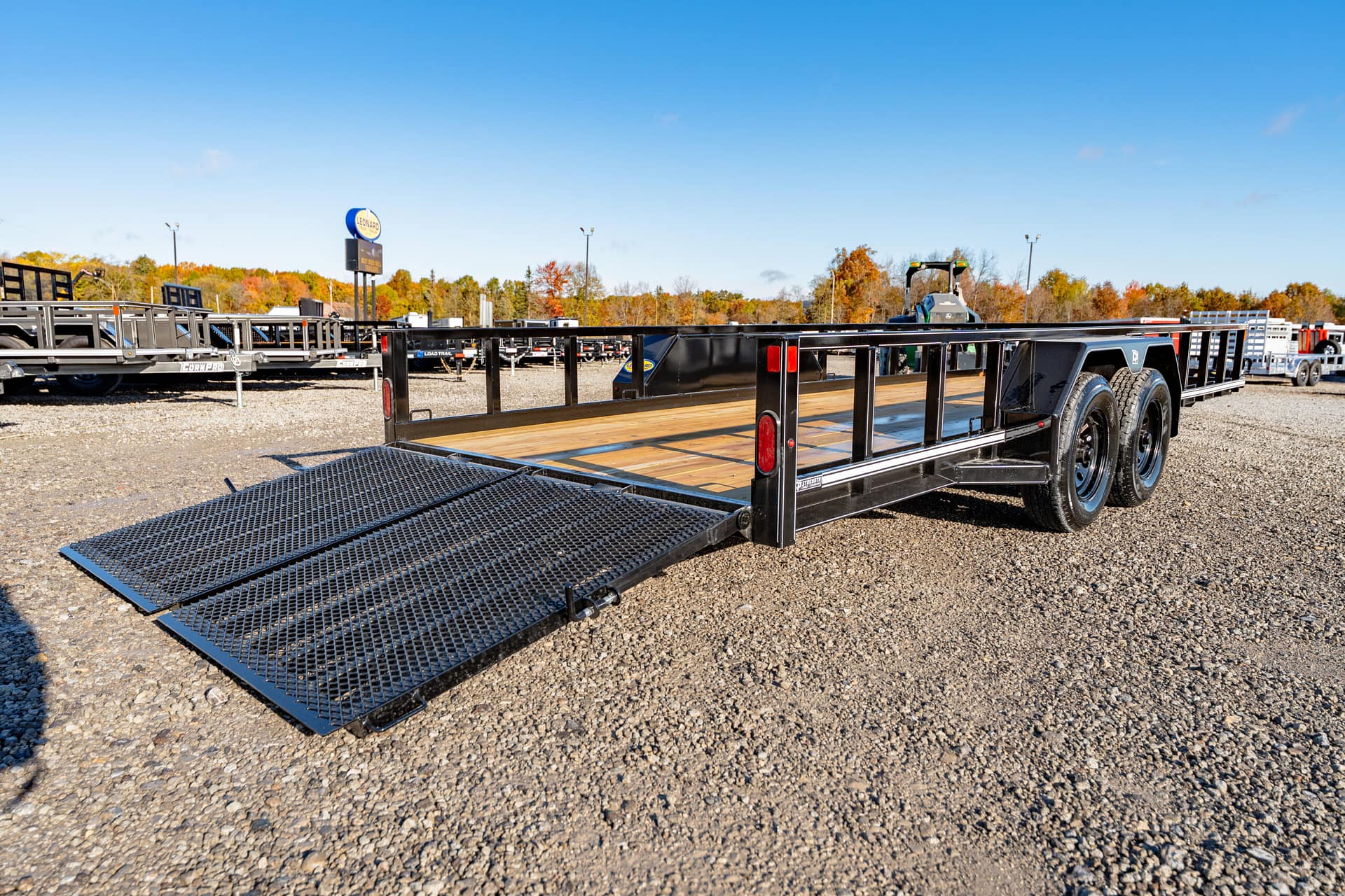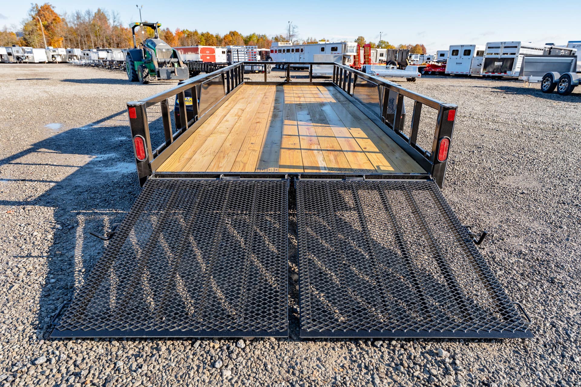 Need the type of trailer the pros use? Step up to the CornPro UTL. Made with the same 24” on center cross-members rolling on the same high-quality torsion axles and radial tires, the UTL adds 80″ of fender to fender space with four optional lengths. Solid, kiln-dried flooring and a tread plate ramps make this trailer ready to haul your largest lawn equipment.