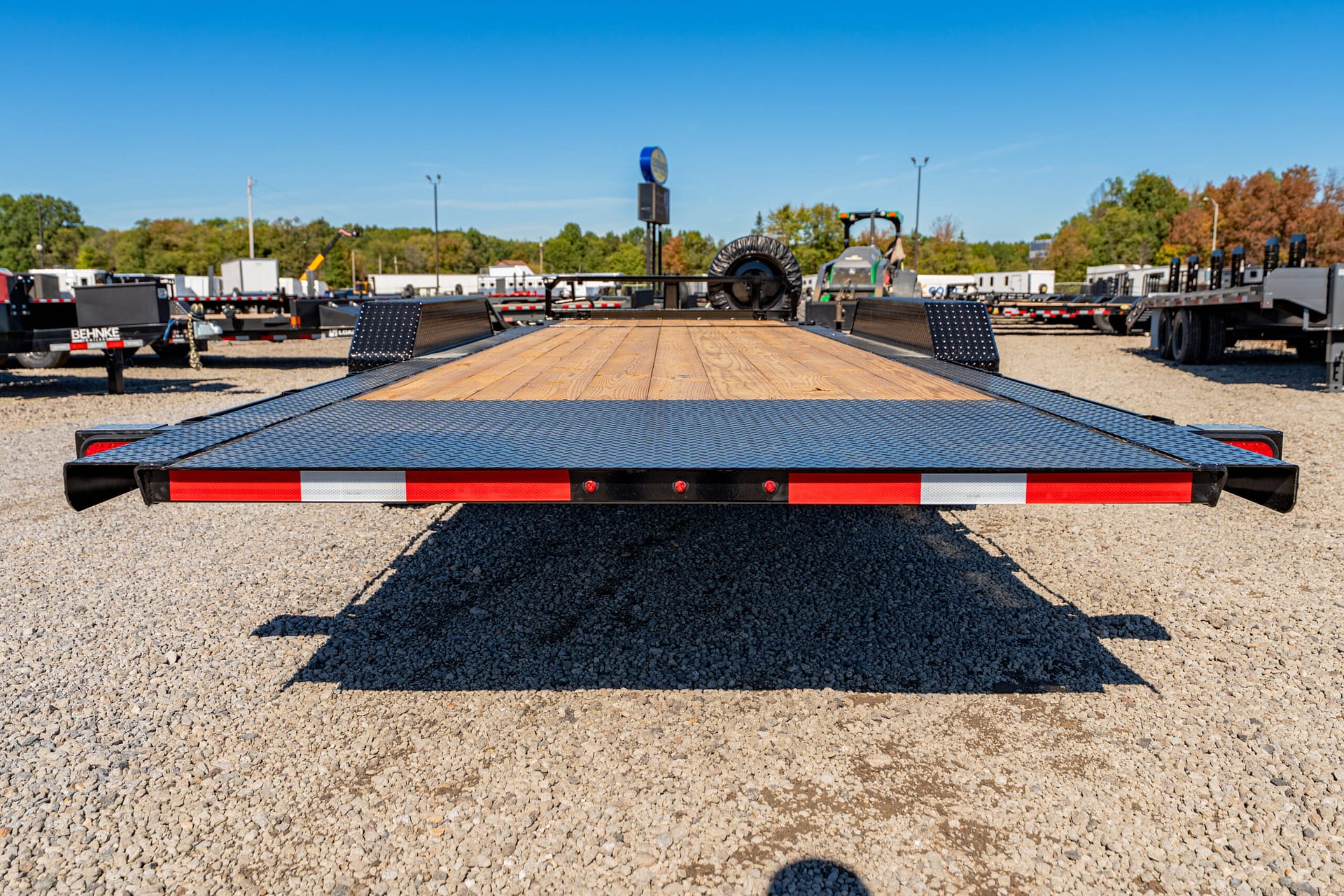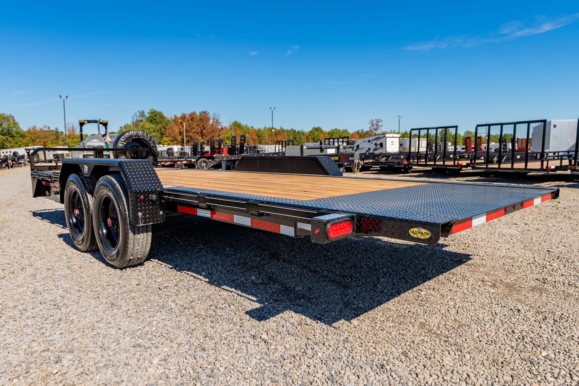 When it comes to hauling, easy loading and unloading matters. With our gravity tilt deck, you can get from loaded to unloaded by simply releasing both latches with a single handle. Load it with whatever you want with drive-over fenders and standard pine floor — or make it your own with a steel floor upgrade for even more style.