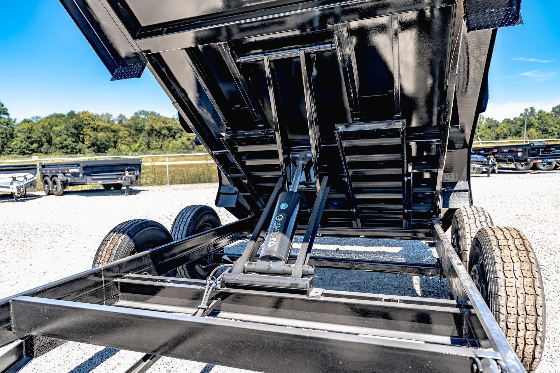 Got a business that requires easy-haul, easy-unload, and the need to handle the toughest conditions? Step up to the toughest dump trailer in the industry. With strength built into every corner, you’ve got 12-gauge sides on a 10-gauge floor, with 2” x 2” tubing uprights and 11-gauge diamond plate fenders, and running boards – all lifted with a ChampionTM scissor hoist. Haul what you’ve got without a worry.