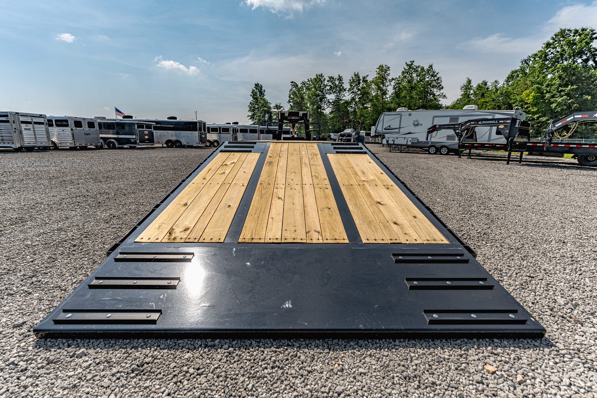 Flatbeds are available in 12,000 GVW. Available in pull-type, gooseneck, and semi-style hitches, with air or electric brakes. These trailers are built for the long haul and are equipped with either a straight deck, or one of our endless amounts of ramp and beavertail options, making loading any piece of equipment easy.