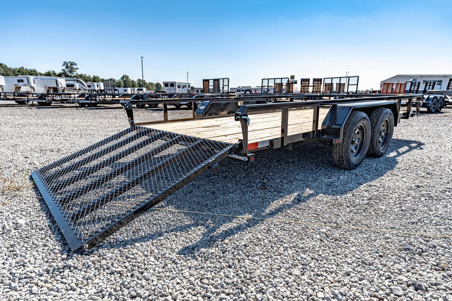 Strong and simple, the sturdy steel frame of the Rail Side Utility trailer is fully powder coated for years of reliable service. LED lighting, enclosed sealed wiring harness and plug, spare mount, and EZ lube hubs are all standard features. The Rail Side Utility trailer is available in several single and tandem axle configurations. Its durable design makes this our most popular trailer.