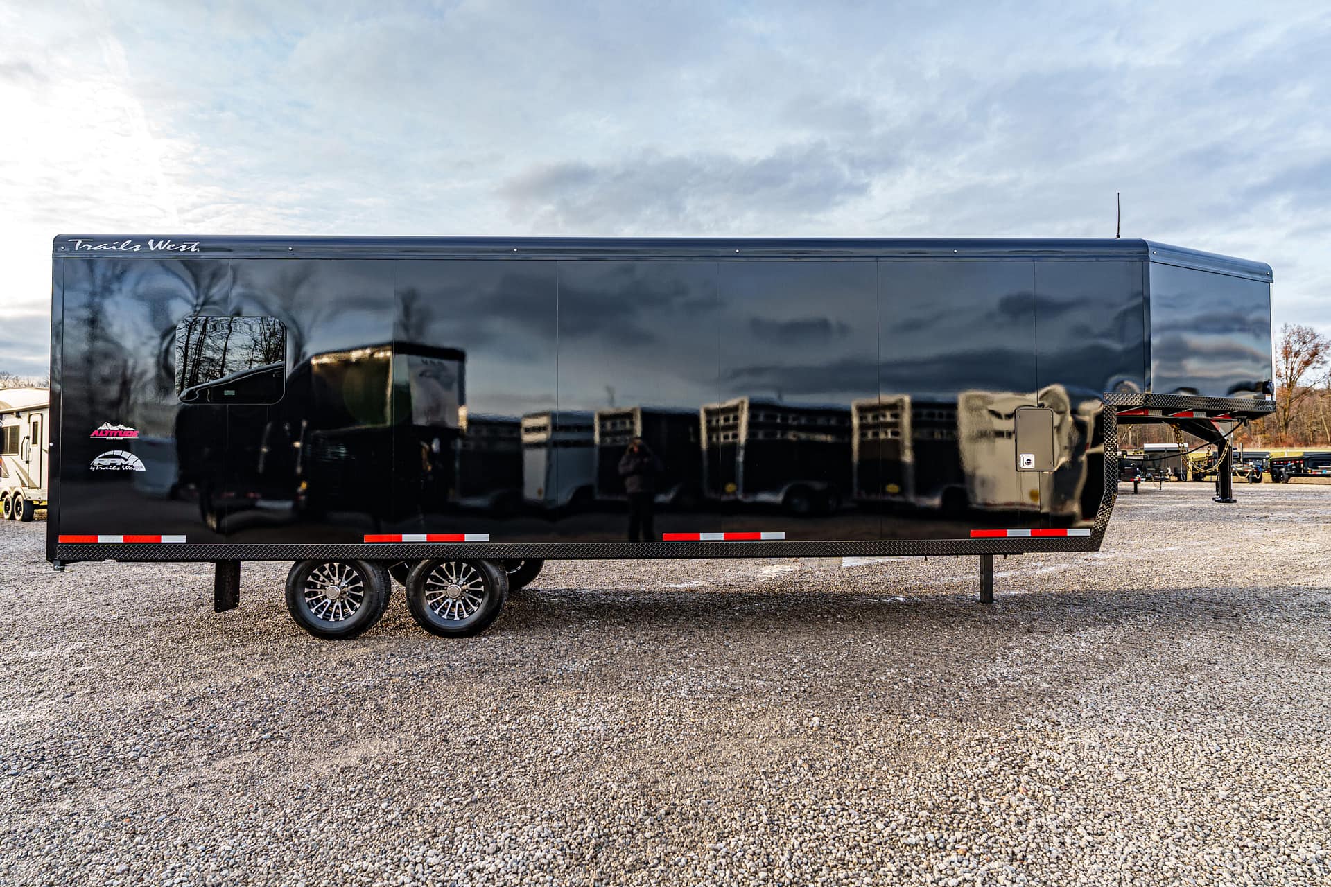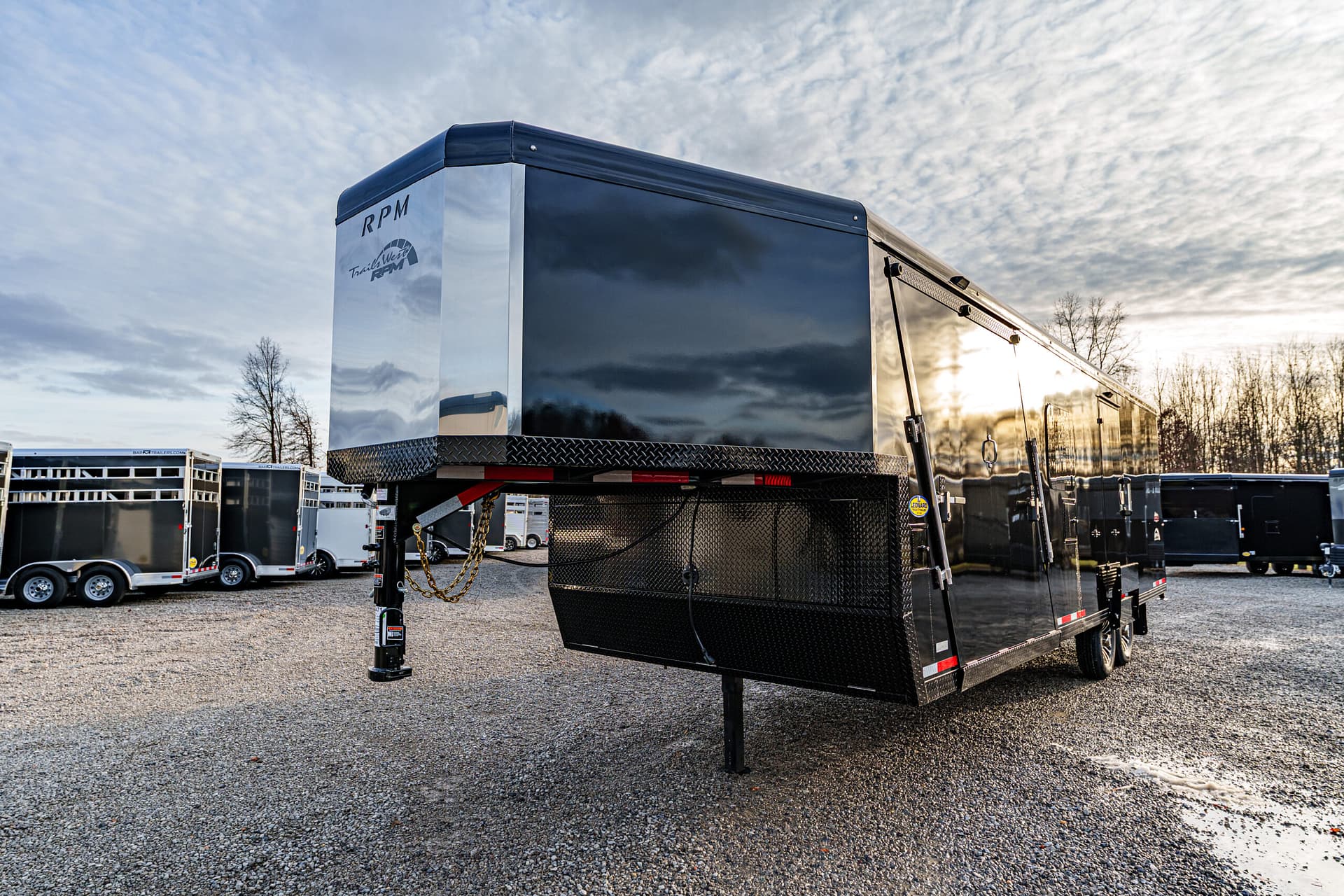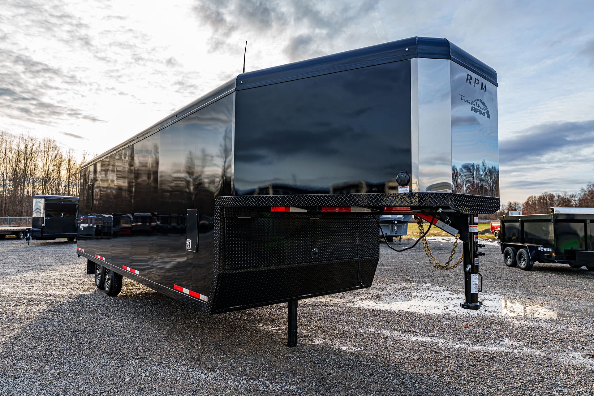 Built for snowmobile enthusiasts, the RPM 24′ Gooseneck Trailer combines rugged construction, smart storage, and easy loading to get your sleds to the trails safely and efficiently.