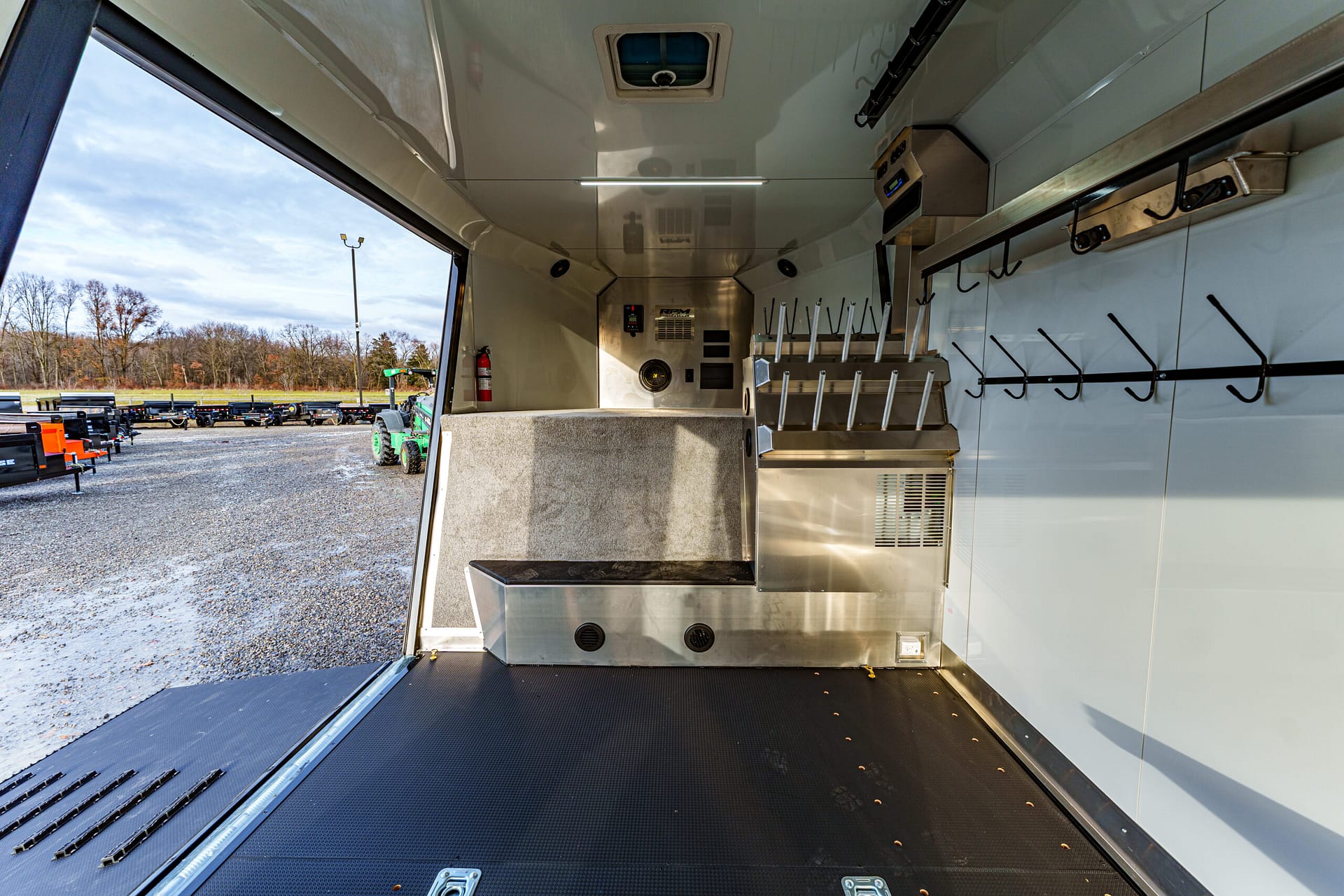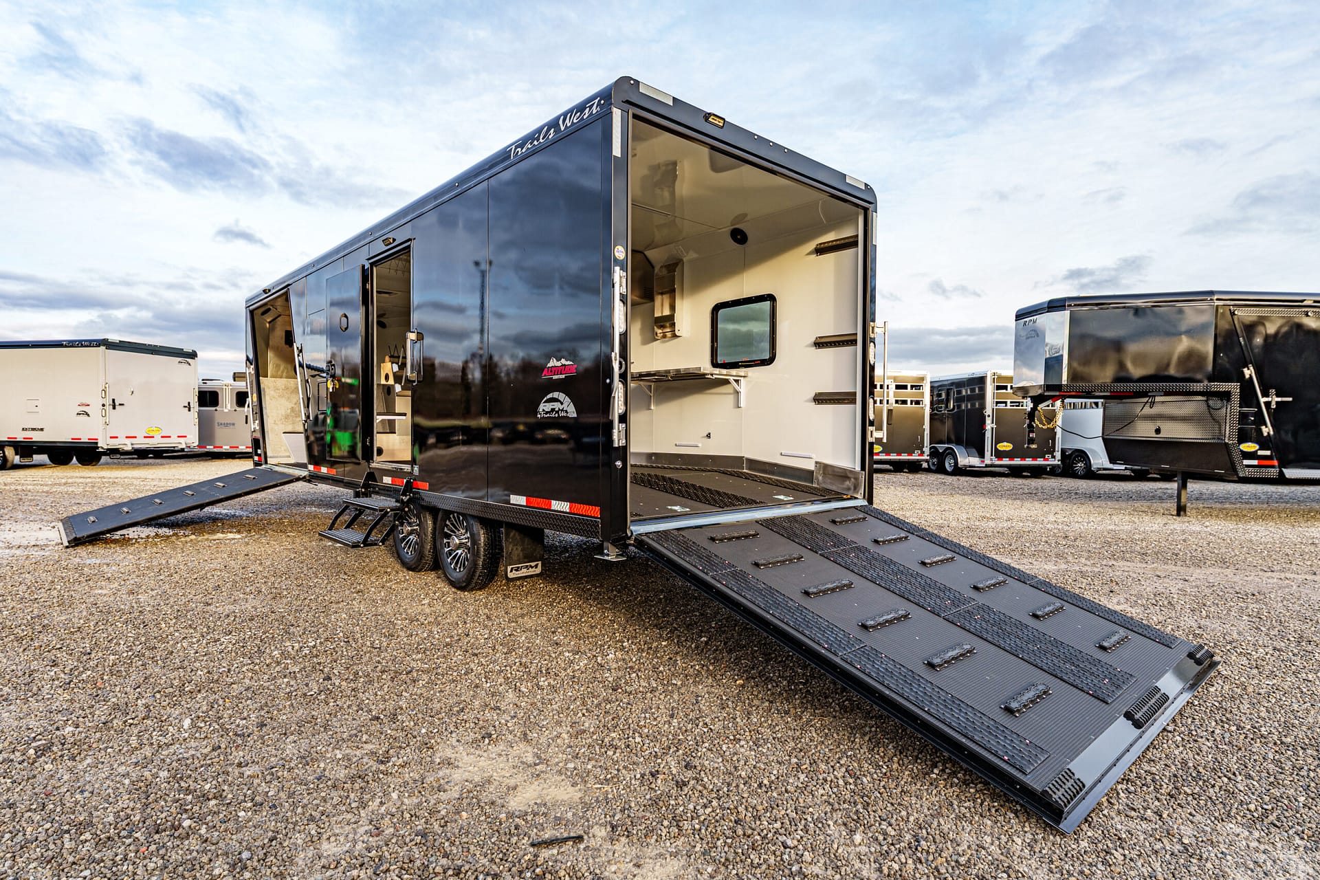 Smooth Loading: Rear ramp (92″W x 86″H) and front ramp (78″W x 81″H) with ski glides for effortless sled movement