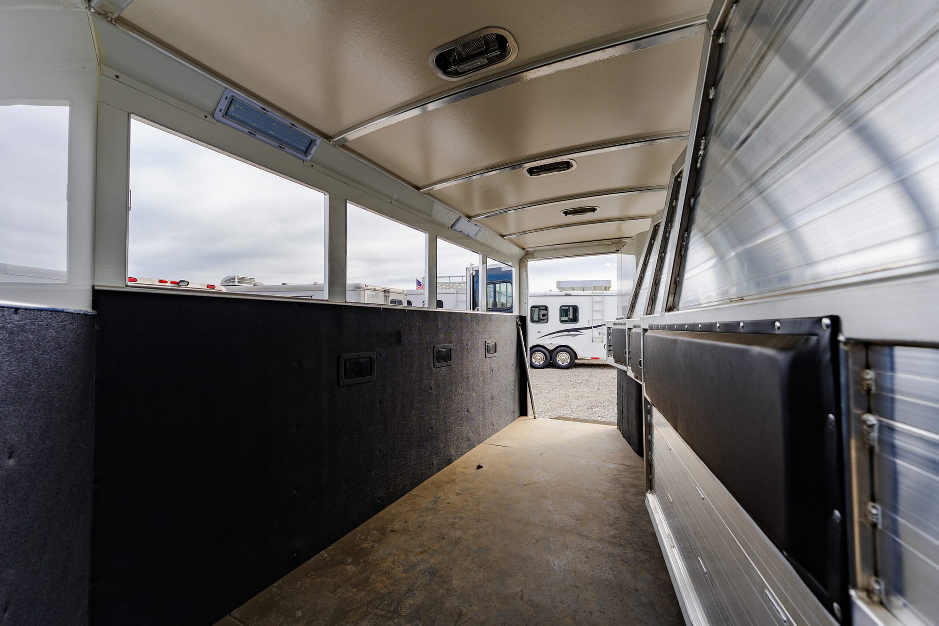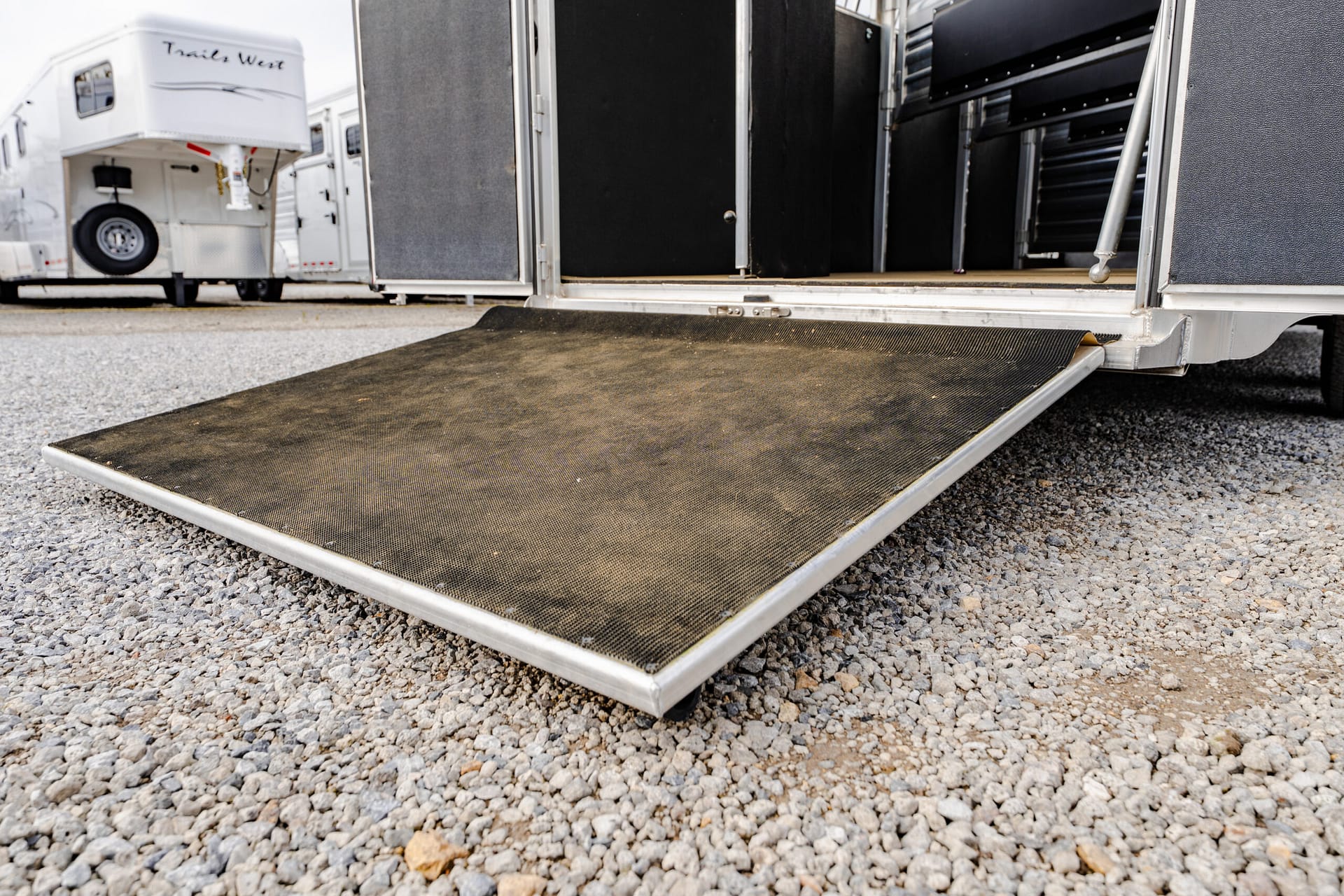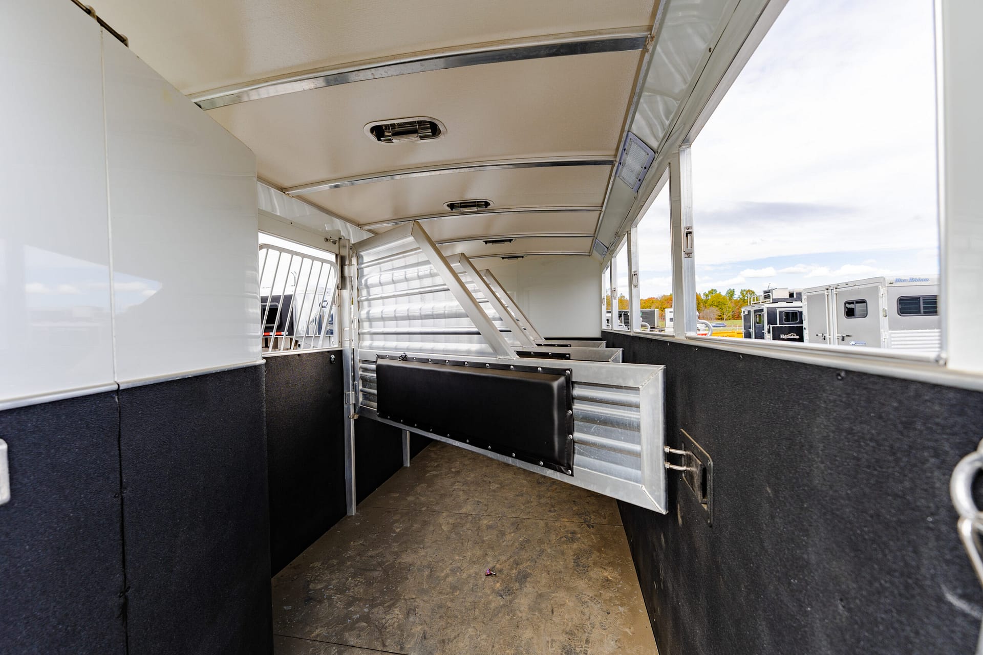 Rear stall is 1′ longer than standard, allowing divider to lay flat