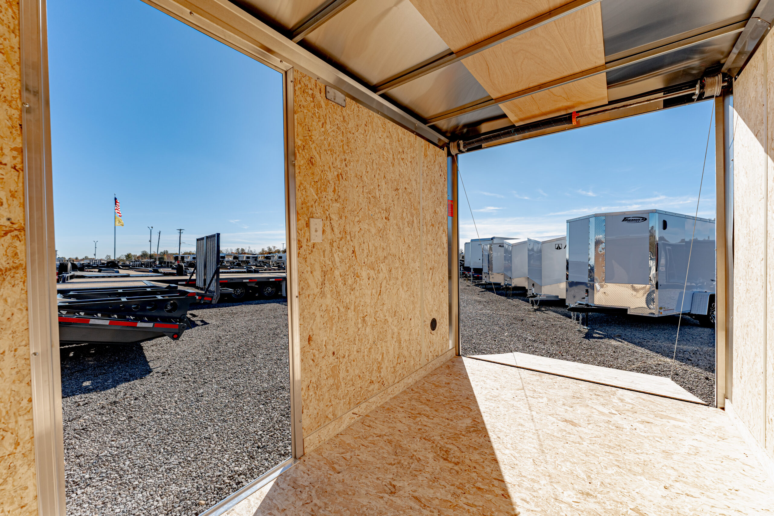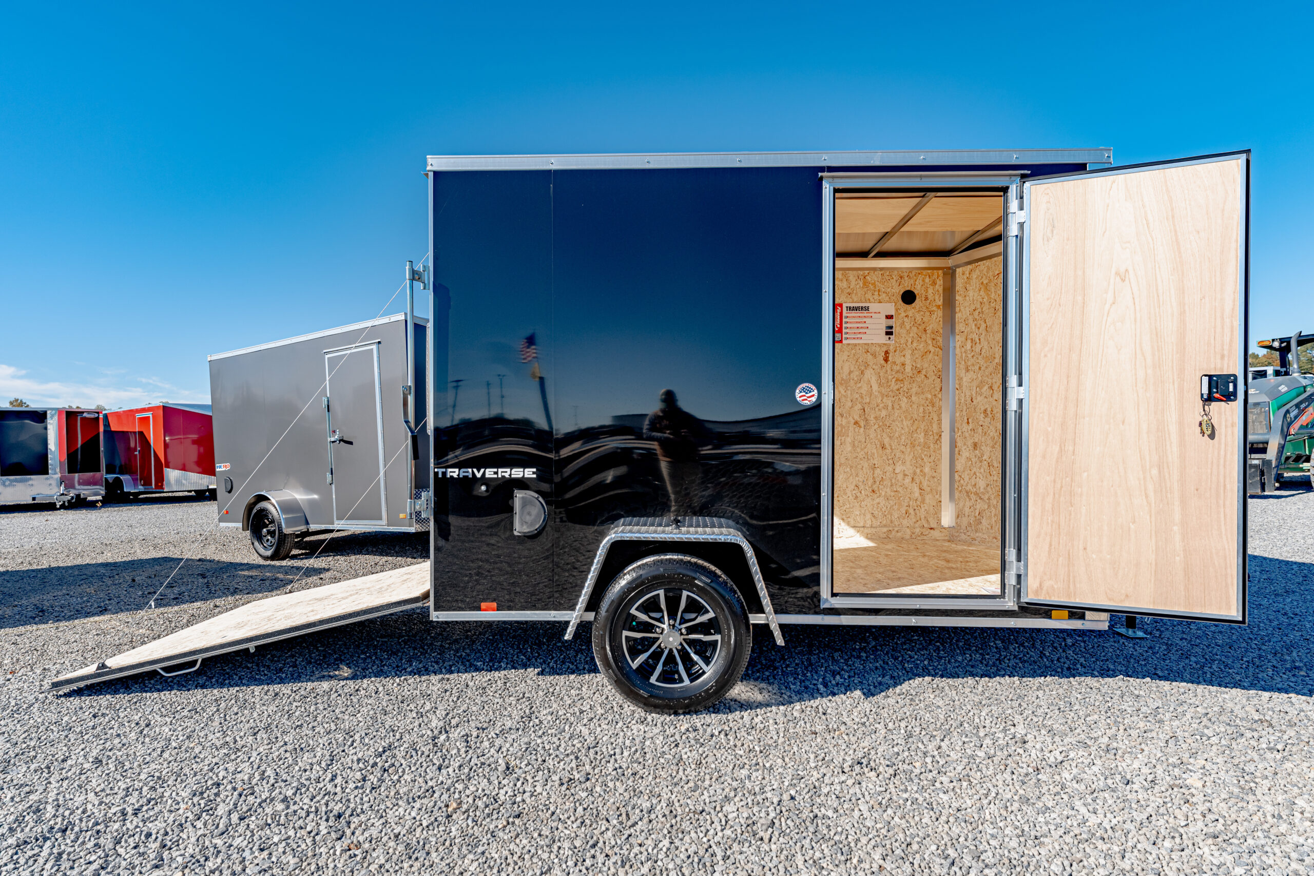 Doors & Access: 1500 lb. assisted rear ramp door and 32″ flush-lock side door with wire holdback