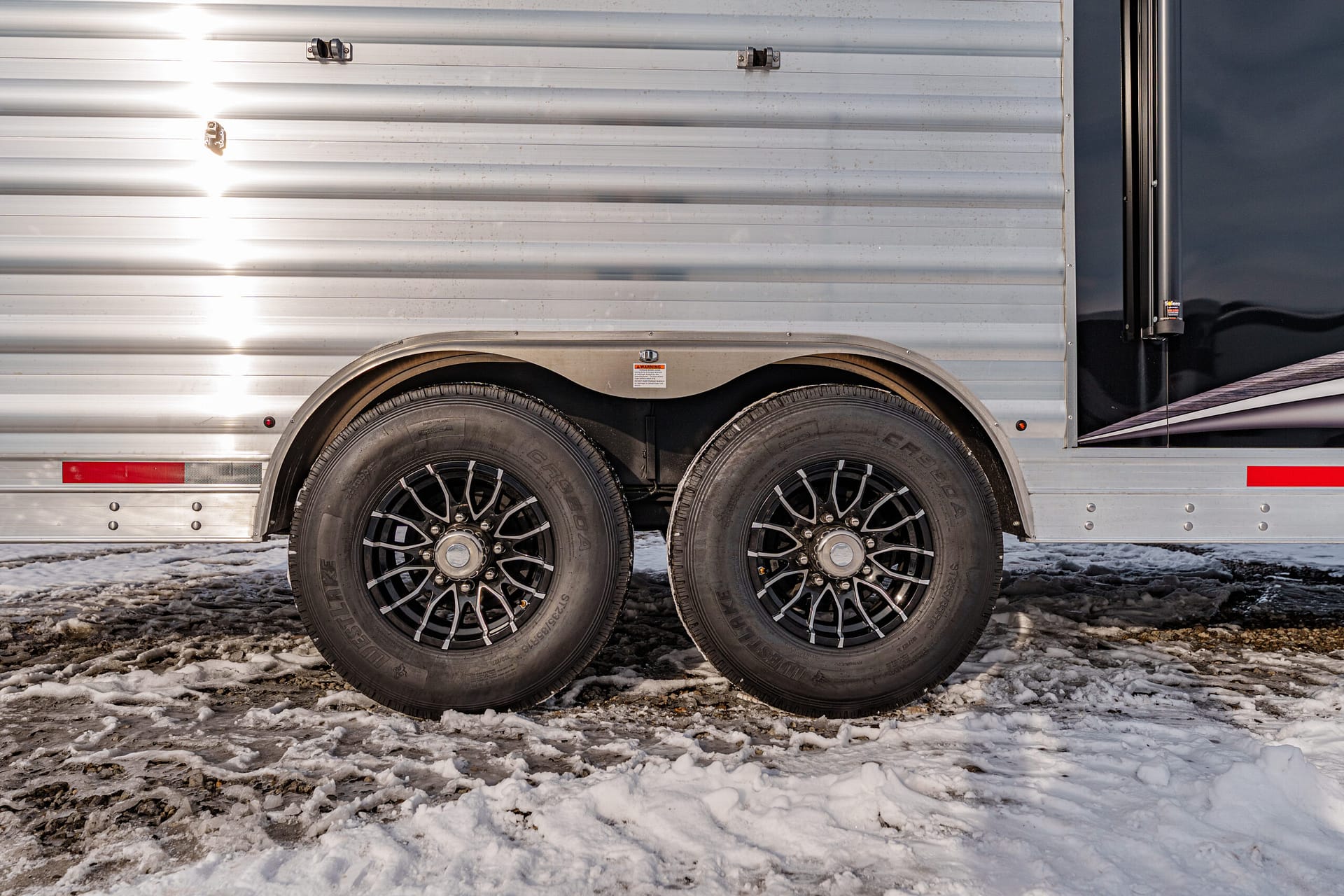 16″, 8-lug gunmetal aluminum wheels with Westlake range E tires (ST235/80R16)