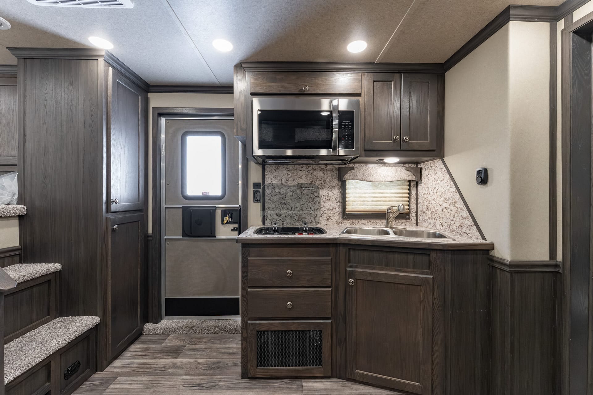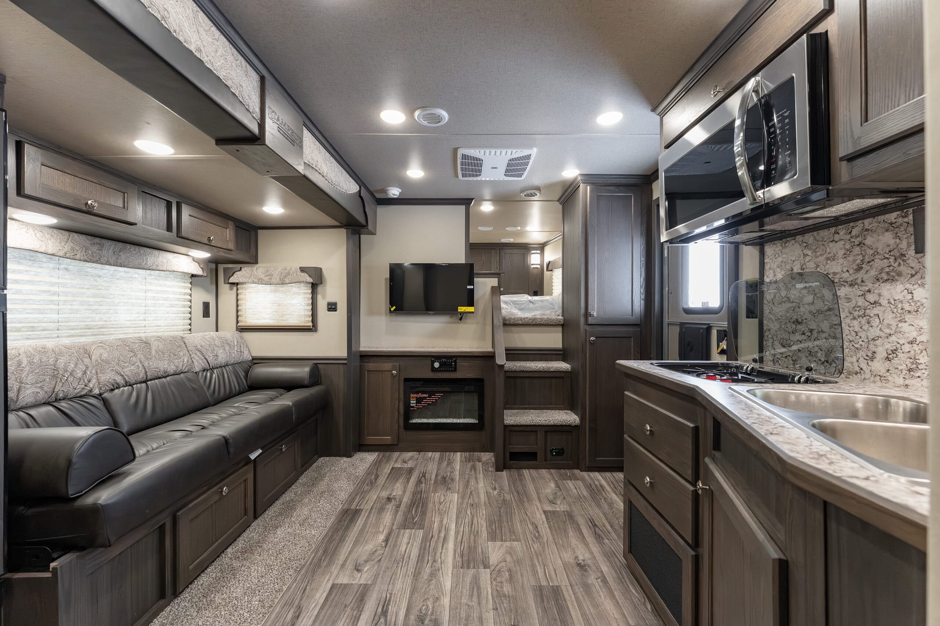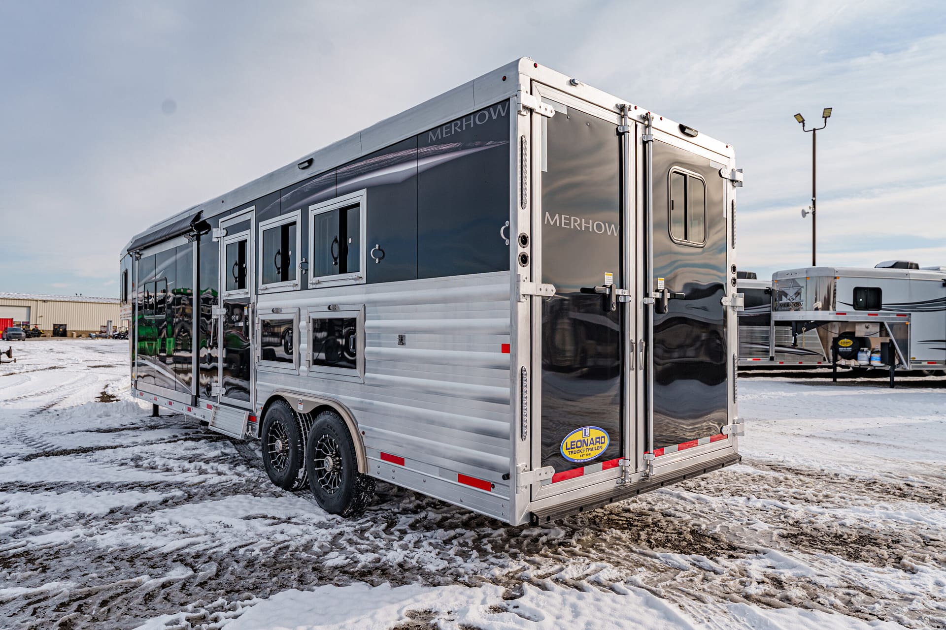 The Stampede by Merhow is LOADED with standard features! The trailer offers the same Super-Structure as our Next Generation, the same 2/8 MFG warranty with an economically-built interior that offers premium vinyl with hardwood fascia and cabinet doors that will WOW you at first glance!