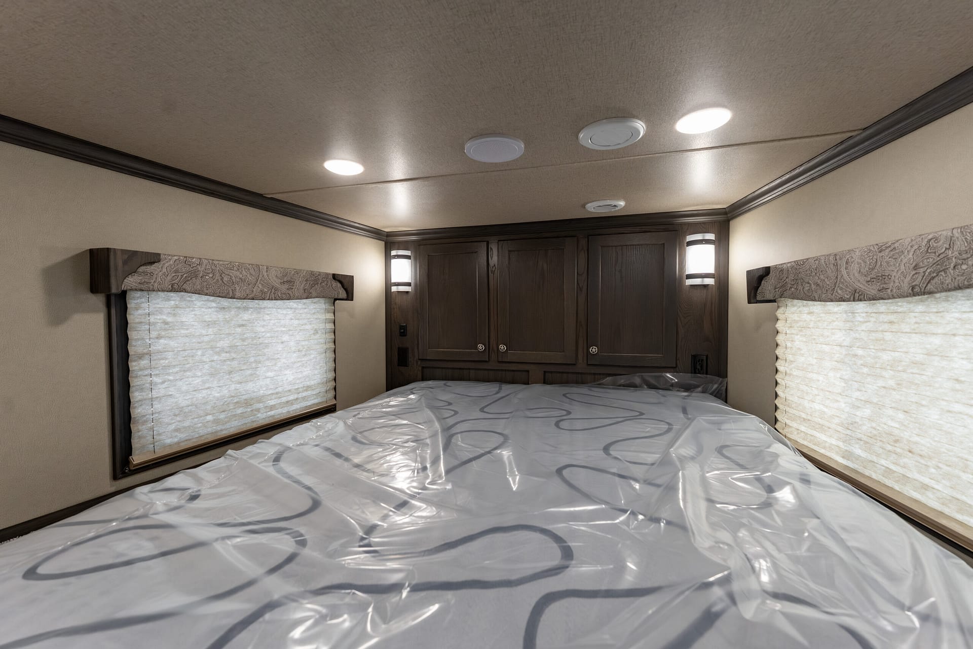 RV queen mattress in front bunk
