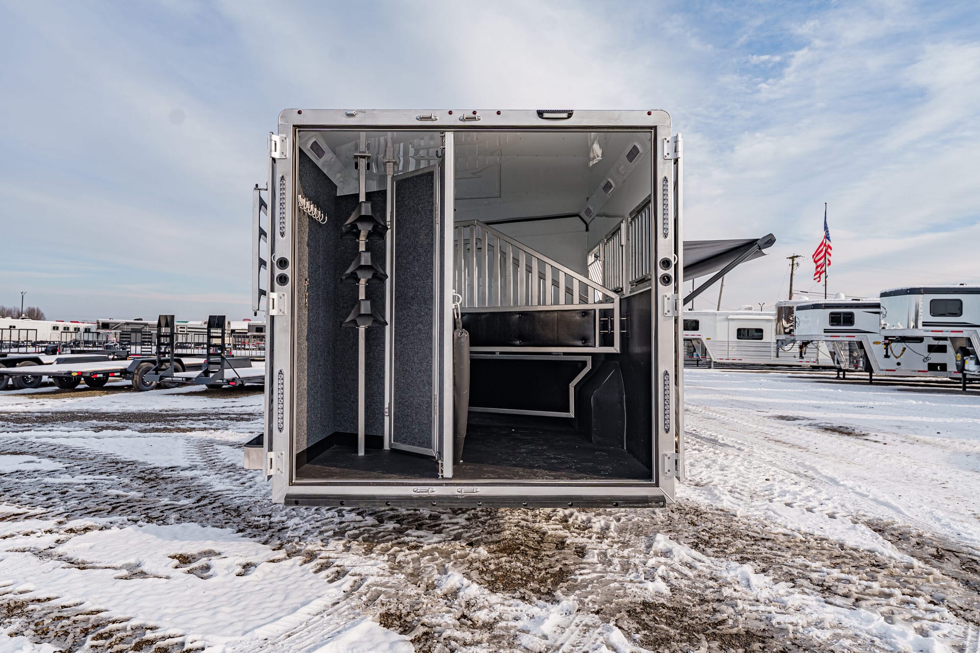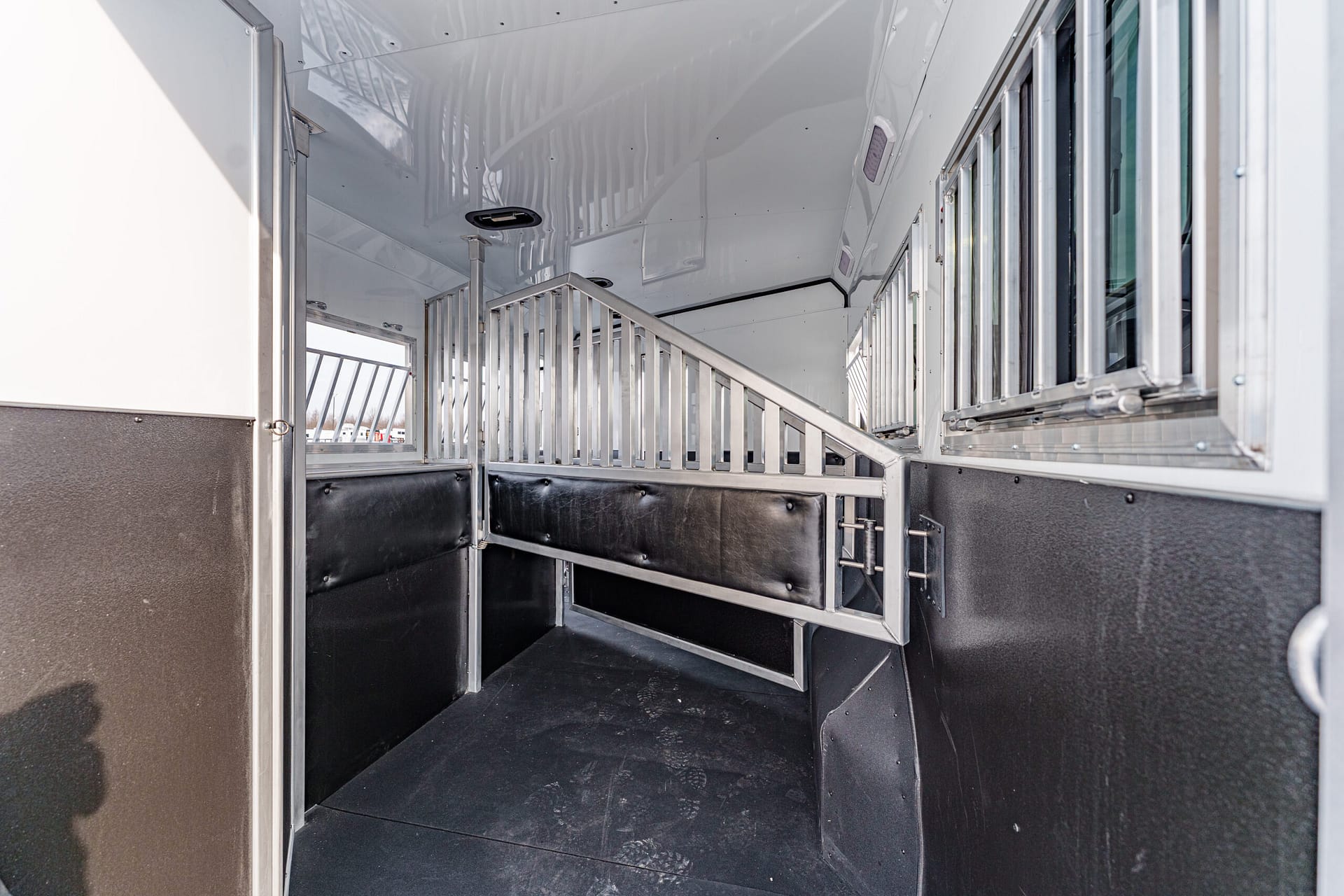 Rubber mats in horse area and rear tack