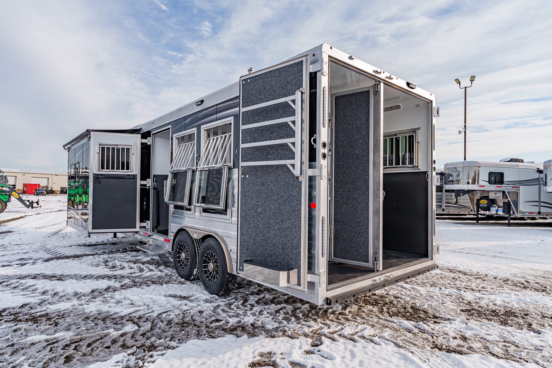 40″ stall setting, extruded aluminum floor, one-piece aluminum roof