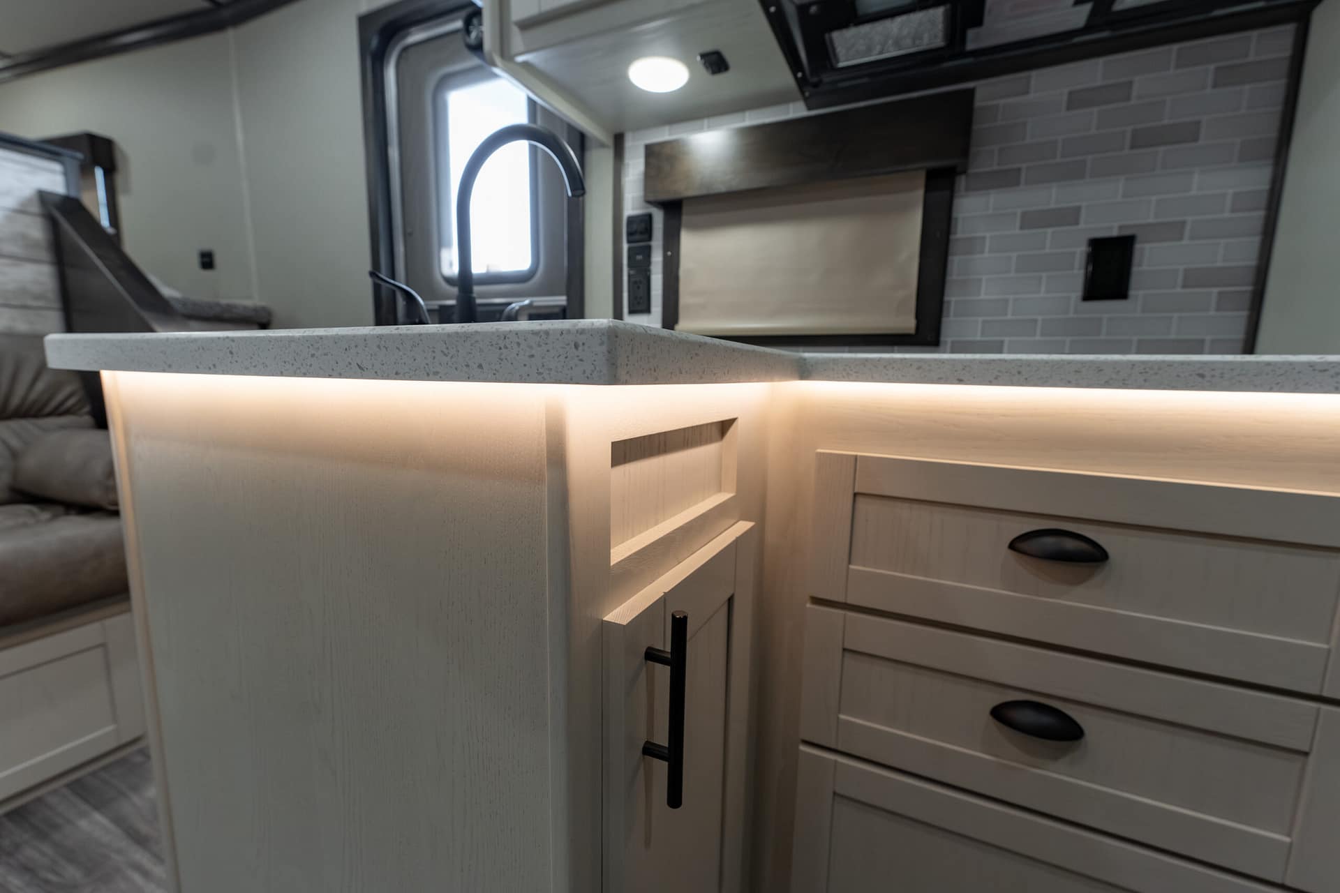 Wainscot & soft-touch in slide-out; black/oil-rubbed bronze hardware