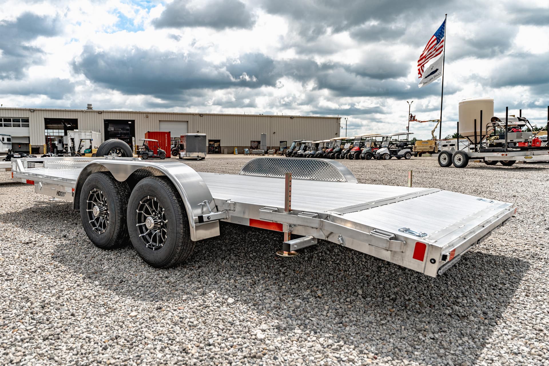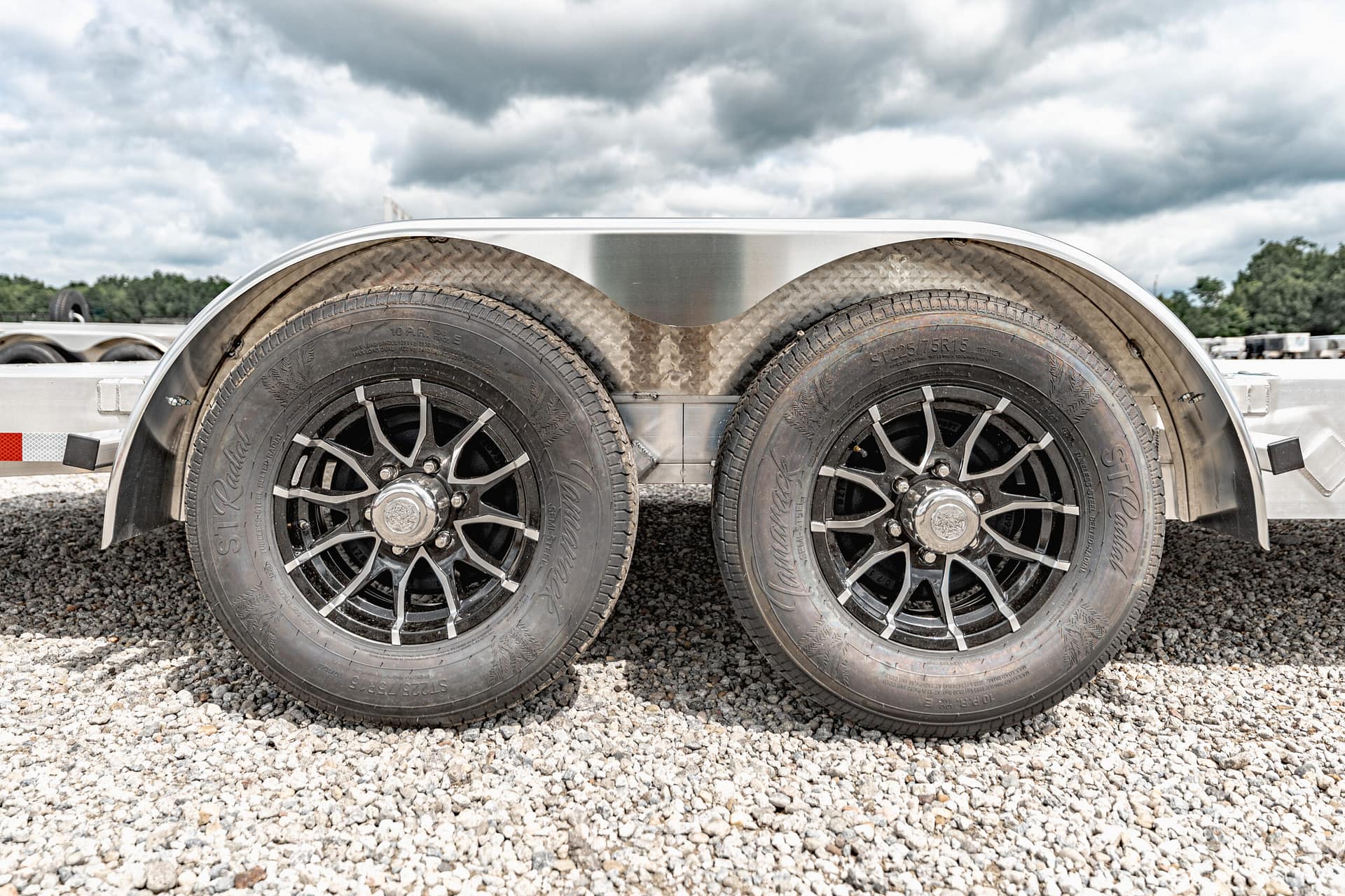 The Black Rhino Car Hauler Series features a 2″ dove tail with heavy duty lightweight slide-out ramps for easy loading and also features quick release, removable fenders for door clearance. Tandem torsion axles with integrated brakes (and easy lube bearings) deliver a solid, smooth, confident towing experience. Options include: 10K GVW axles and Prowood Decking.