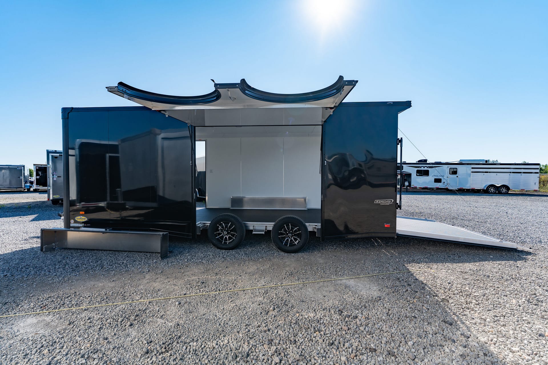 SilverStar aluminum trailers are great looking trailers that play hard and work hard. They are built with Bravo’s “BIG 10 plus 5” commercial quality construction features leading to the strongest, longest lasting trailers on the market today. SilverStar trailers are available in 5′, 6’, 7’, 7.5′, and 8.5’ width Tag models. Create your dream trailer from our long list of options and specific use packages. Let us exceed your expectations.