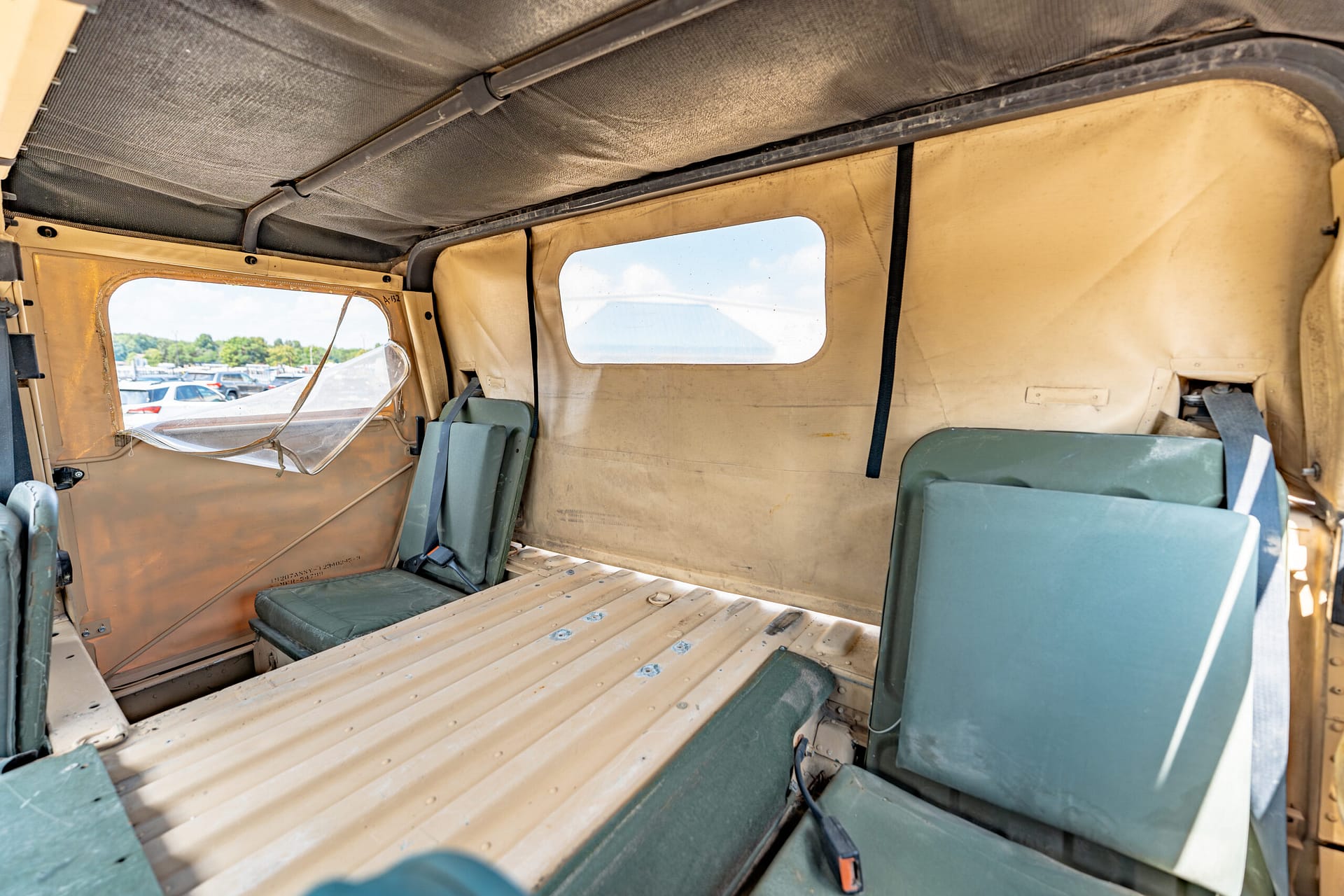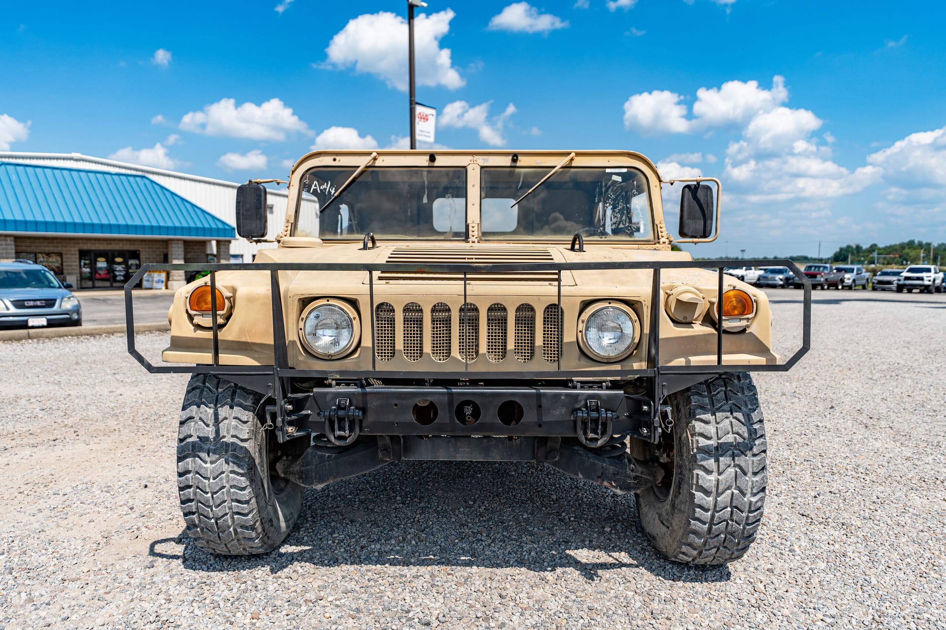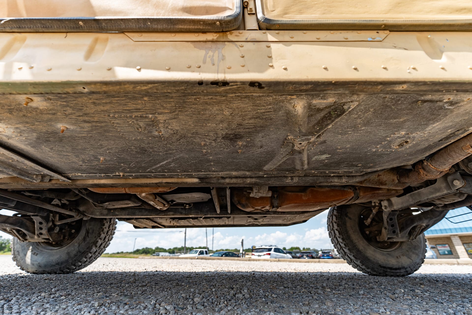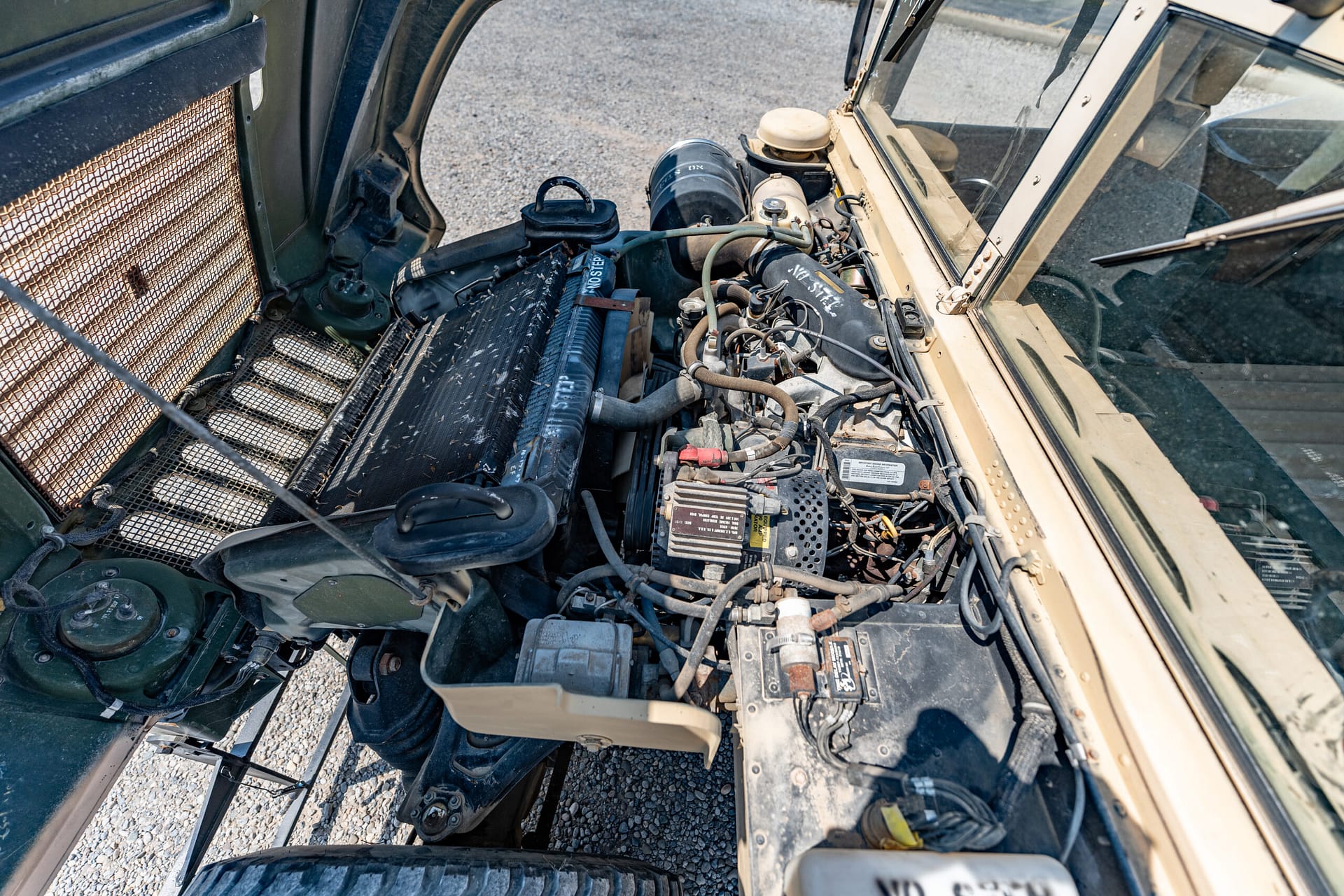 The Humvee has a 16 in ground clearance, a high-mounted radiator, and waterproof electronics. It also has disk brakes, double A-arm independent suspension, and coil springs. It runs and drives well and everything works as it should, and we did check the fluids and overall condition of the vehicle.