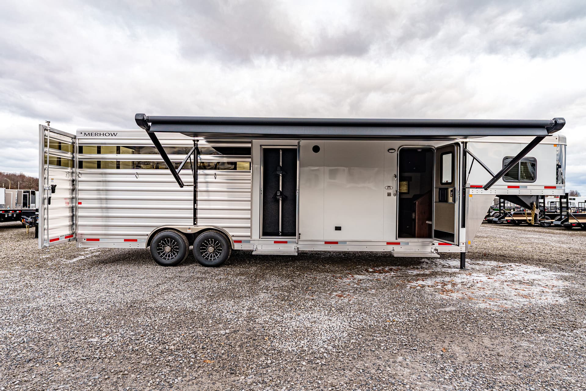 New 2026 Merhow STOCK COMBO NON-STANDARD FLOOR PLAN Gooseneck Stock Trailer With Living Quarters