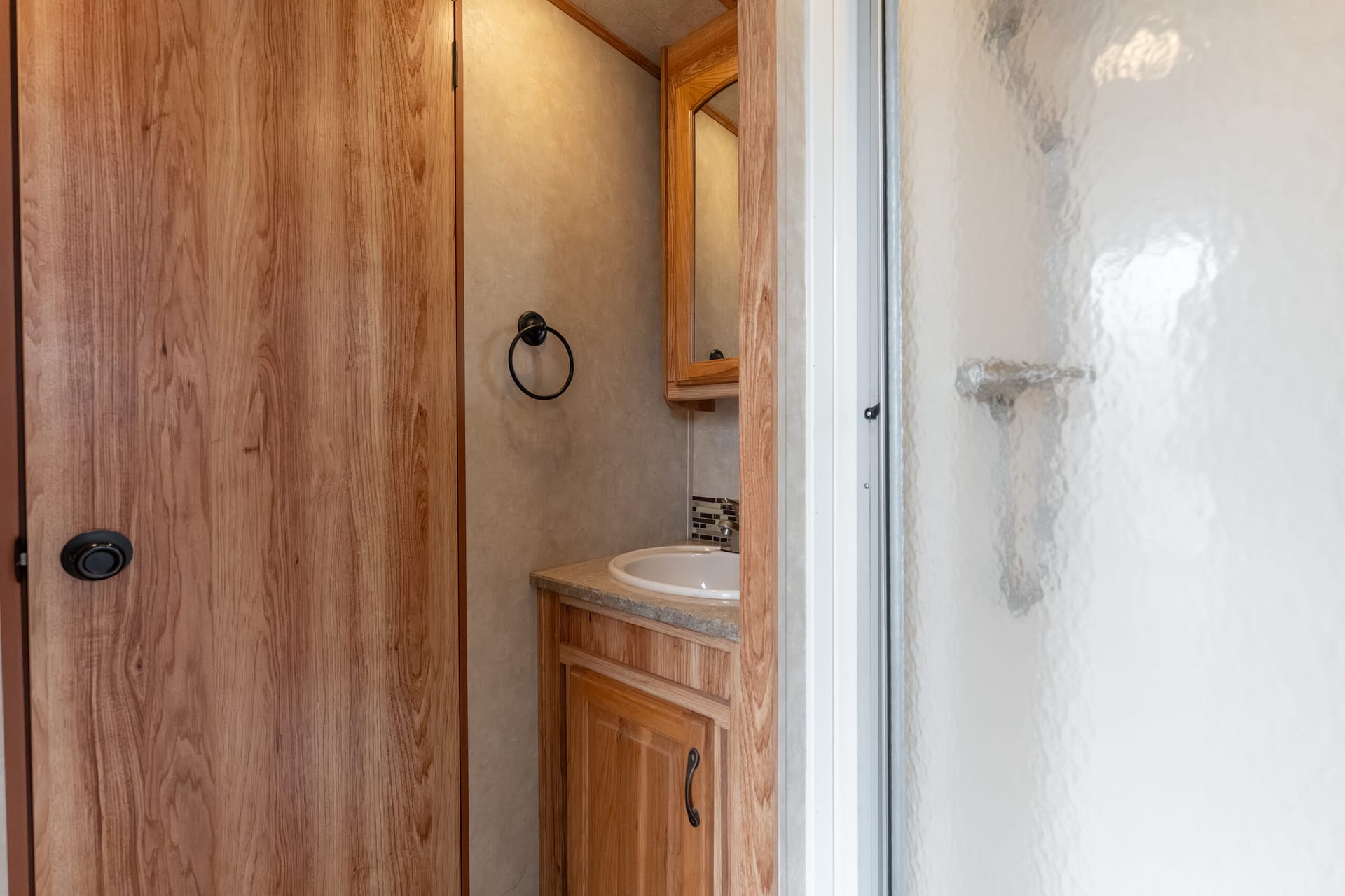 Used 2015 Bison 7310 SLIDE Gooseneck Horse Trailer with Living Quarters