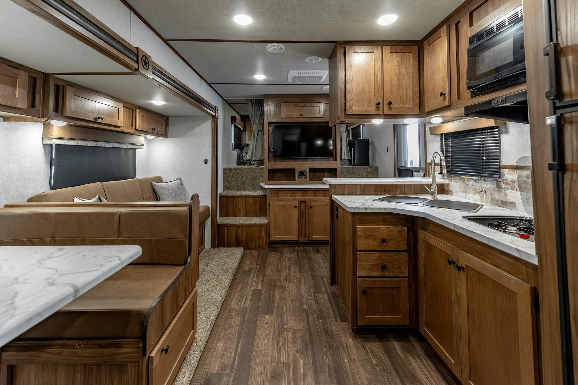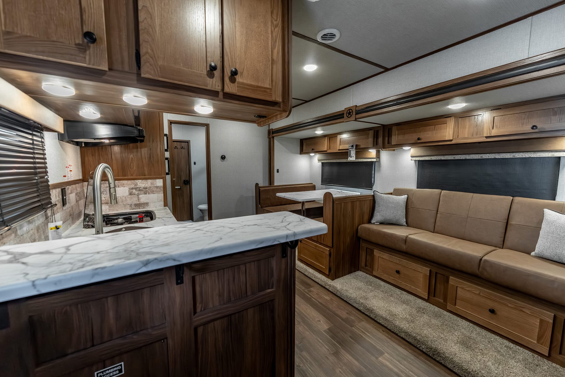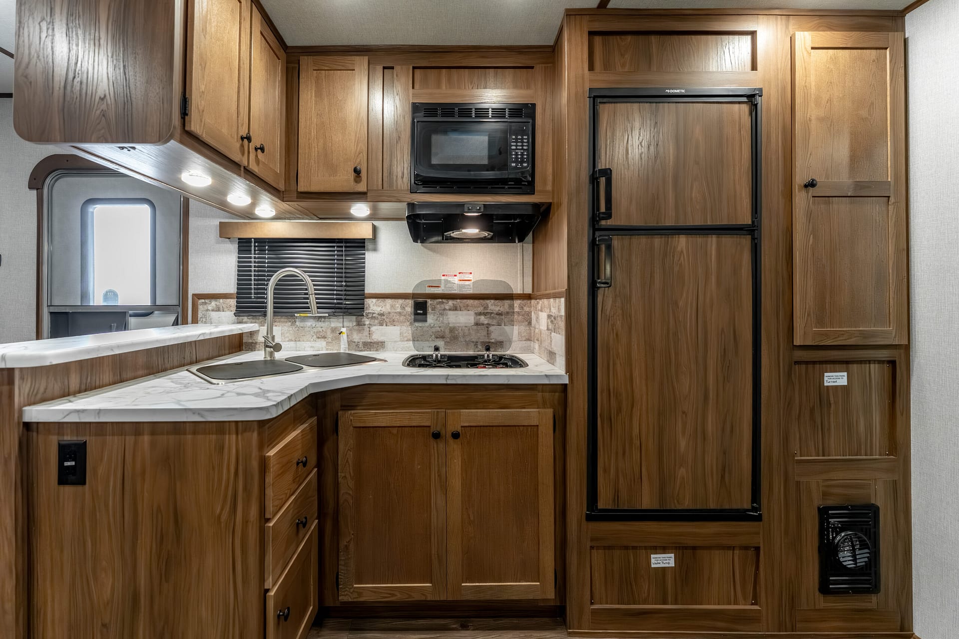 This RC20T16.S gooseneck toy hauler is designed to deliver the ideal balance of hauling power and residential comfort. Featuring 20 feet of fully equipped living quarters and a 16-foot rear garage, it’s an excellent choice for work, motorsports, or extended travel.