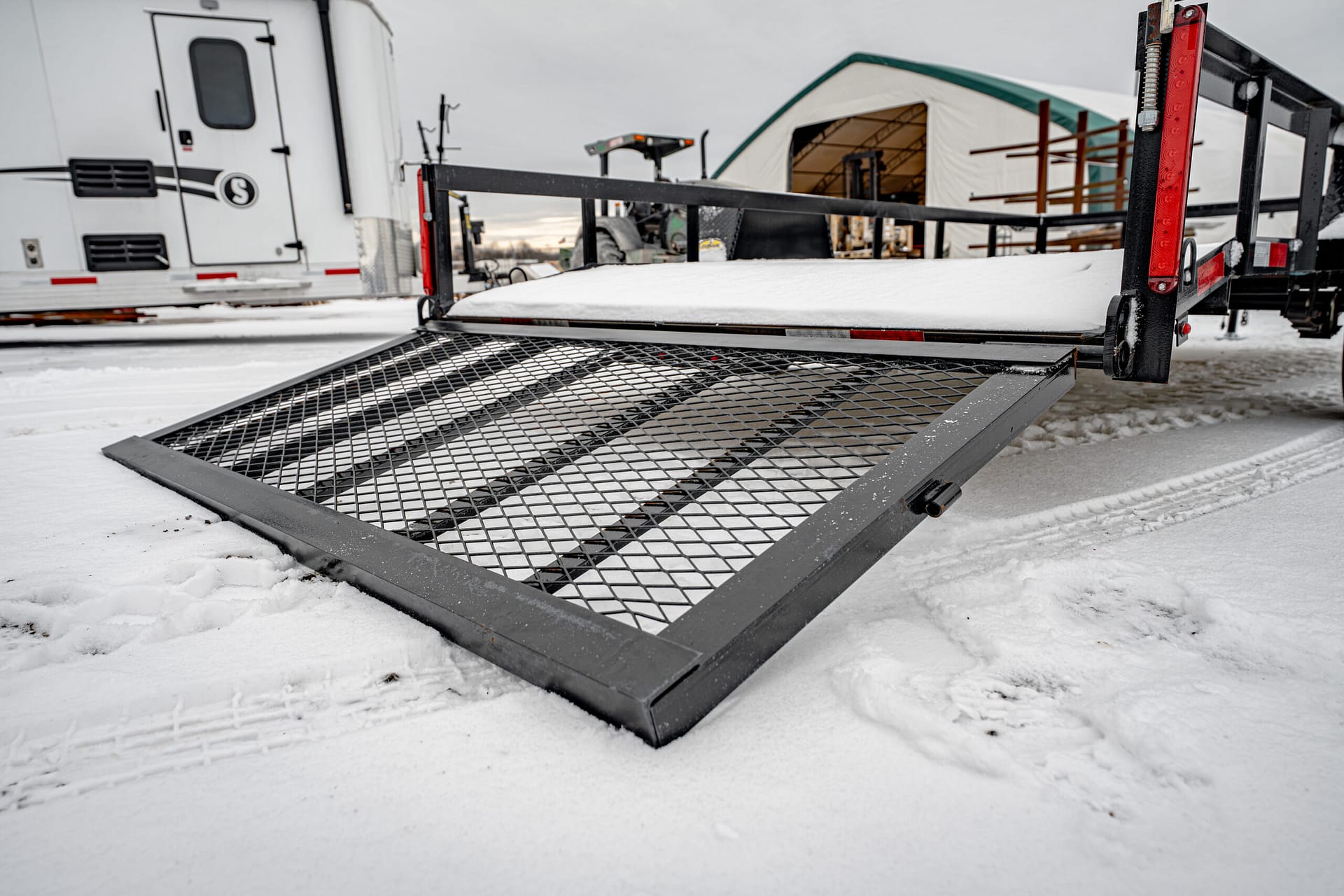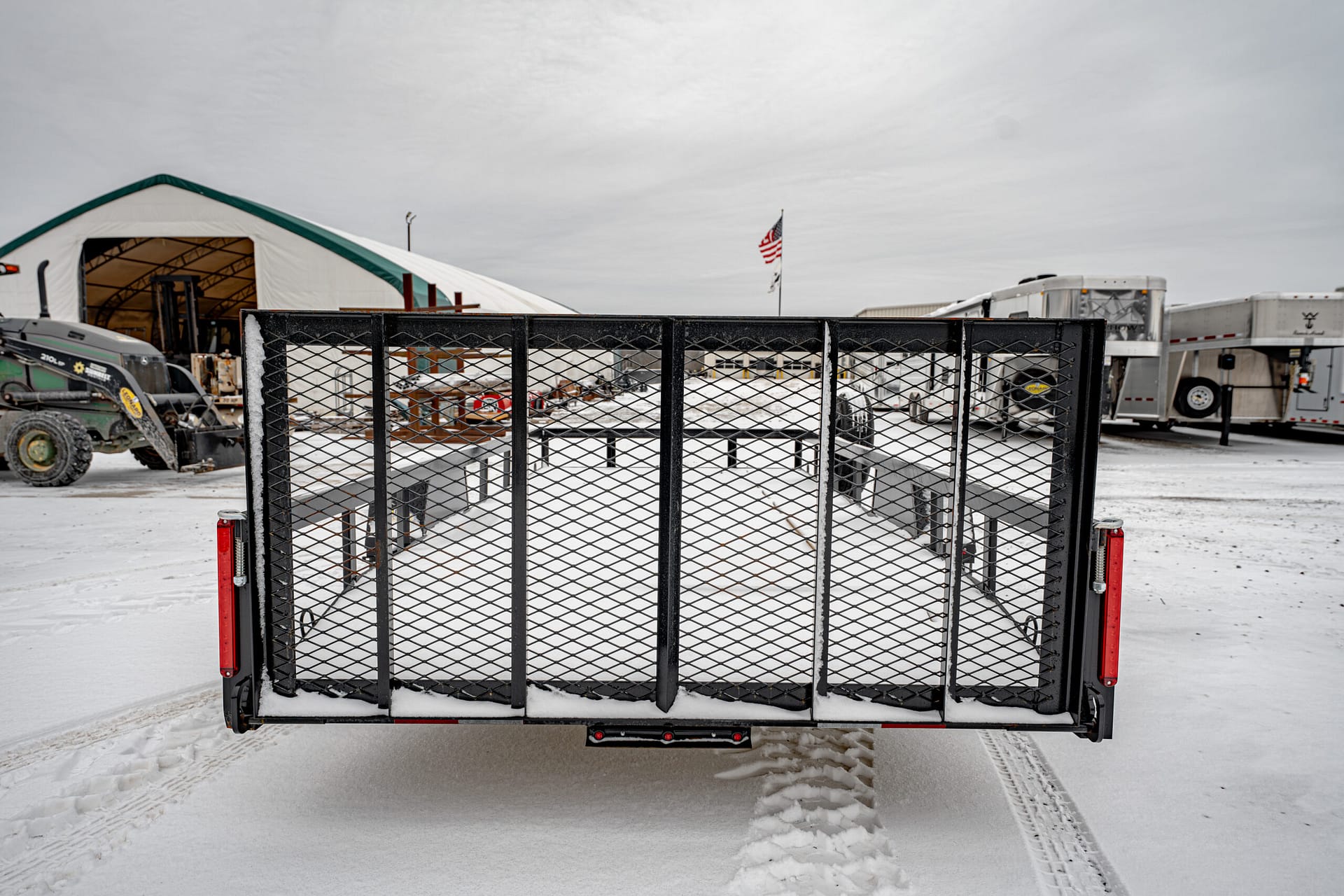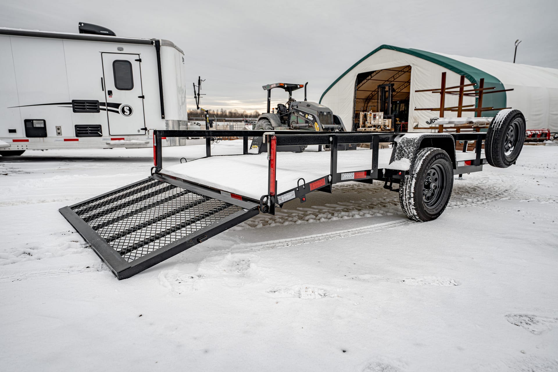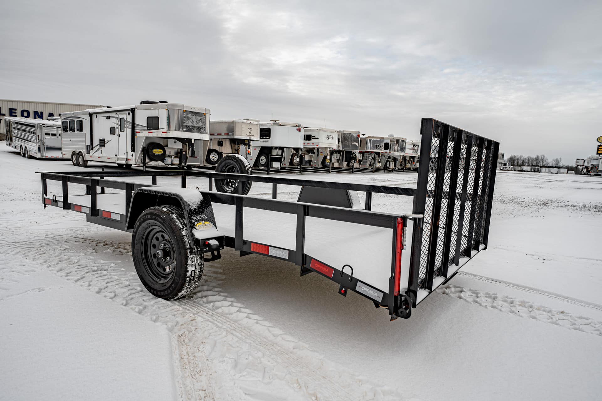 Gorilla Utility Trailers are built for durability with a heavy-duty 3/16-inch, 2 x 3 angle iron frame and 24-inch on-center crossmembers. The pressure-treated 2 x 8 wood deck ensures longevity, while diamond plate tear-drop fenders and Tredit 15-inch radial tires add style and reliability. A spare tire mount, 3.5K Dexter axle, and Optronic LED lights