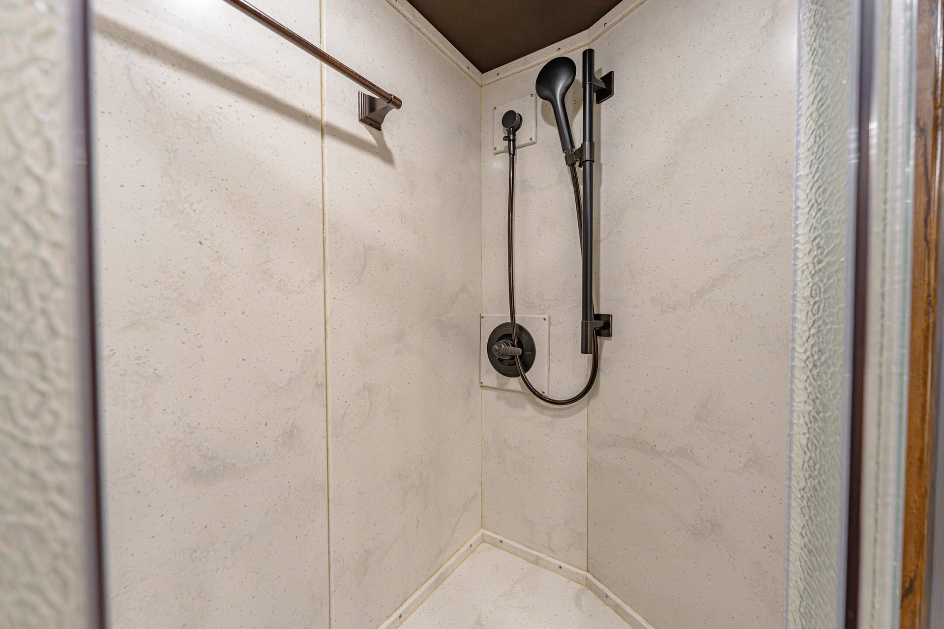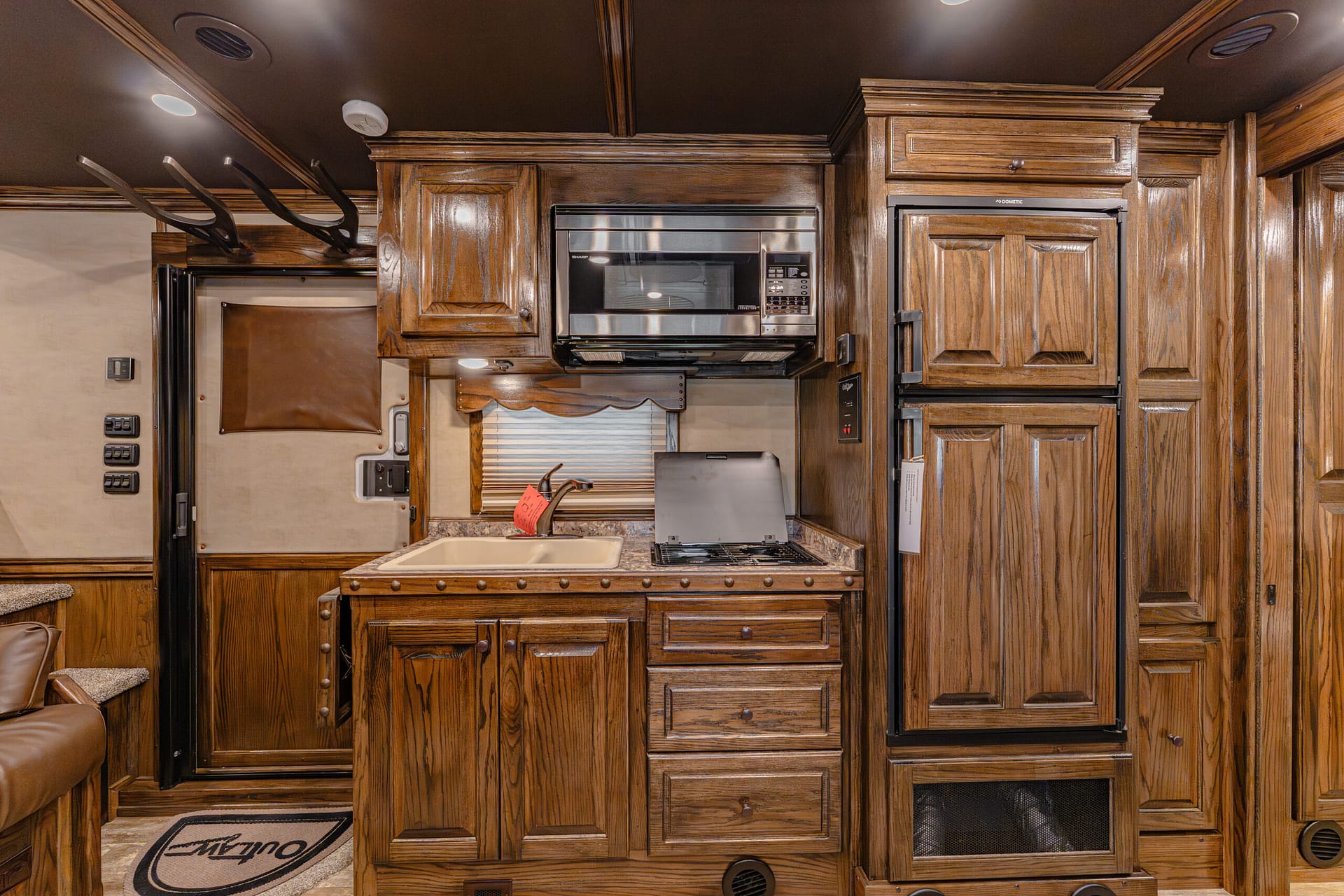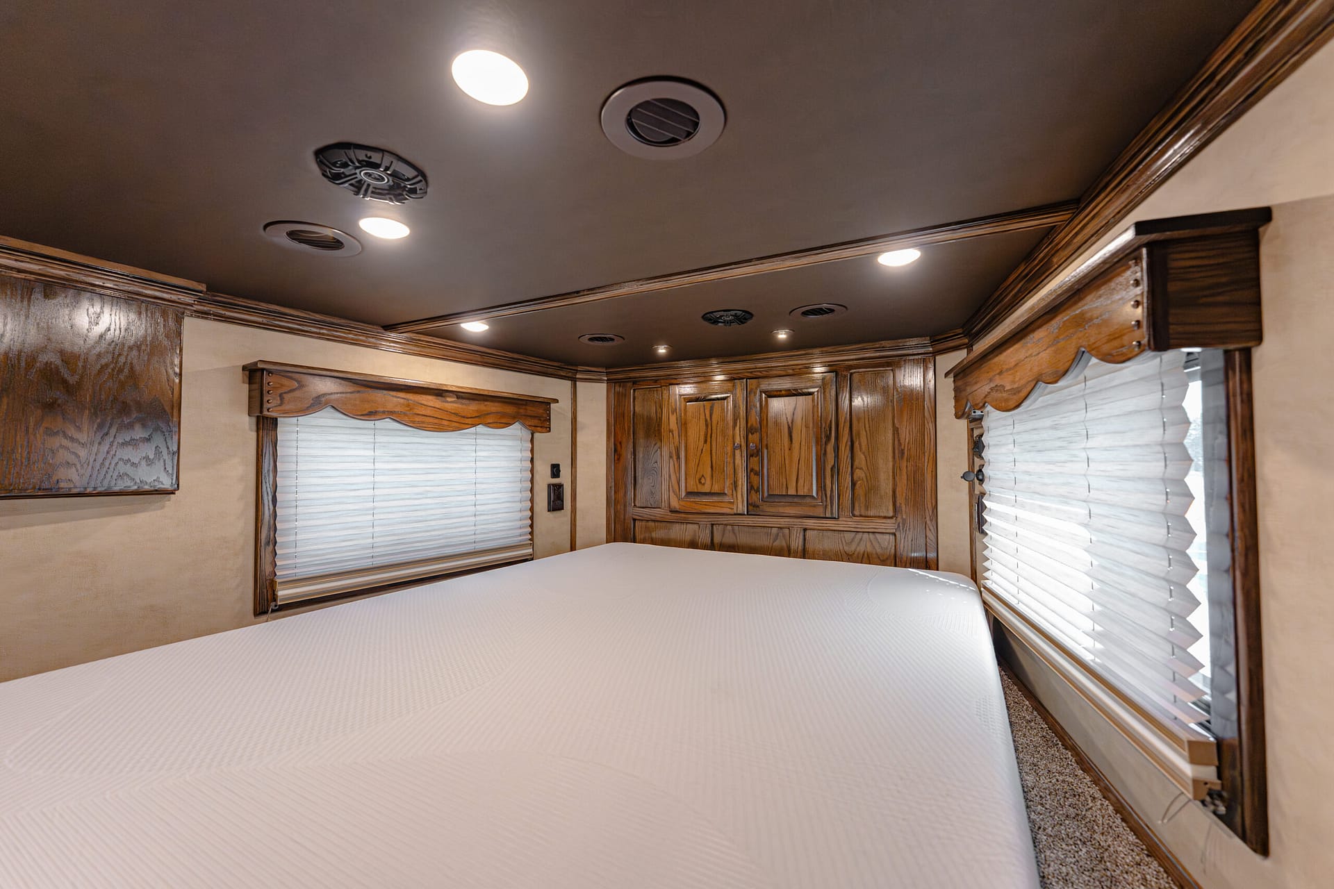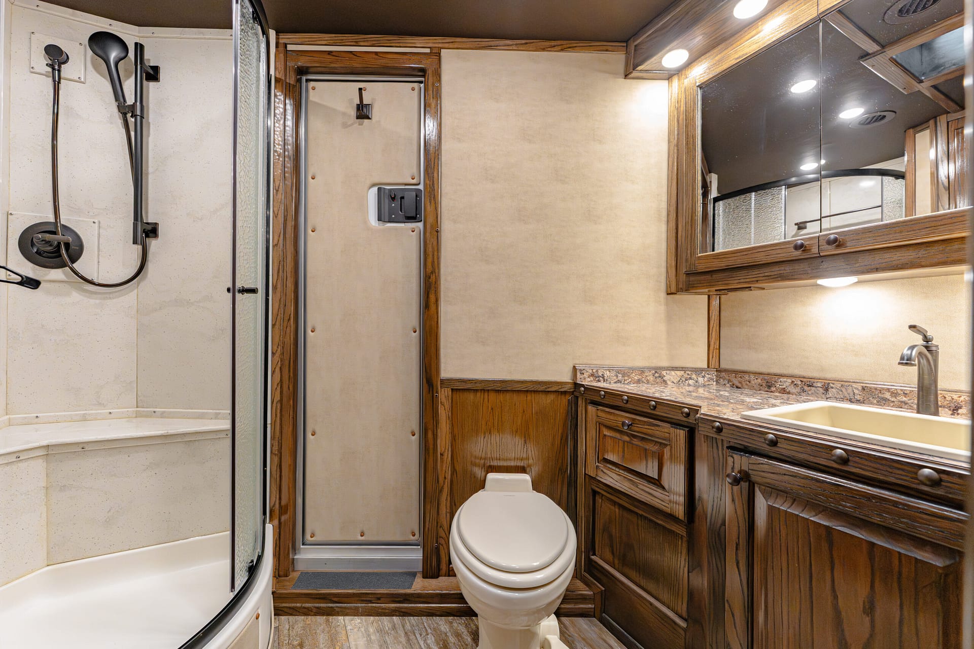 -50/50 rear doors with windows -Shock-assisted, fold-up step at dressing room door