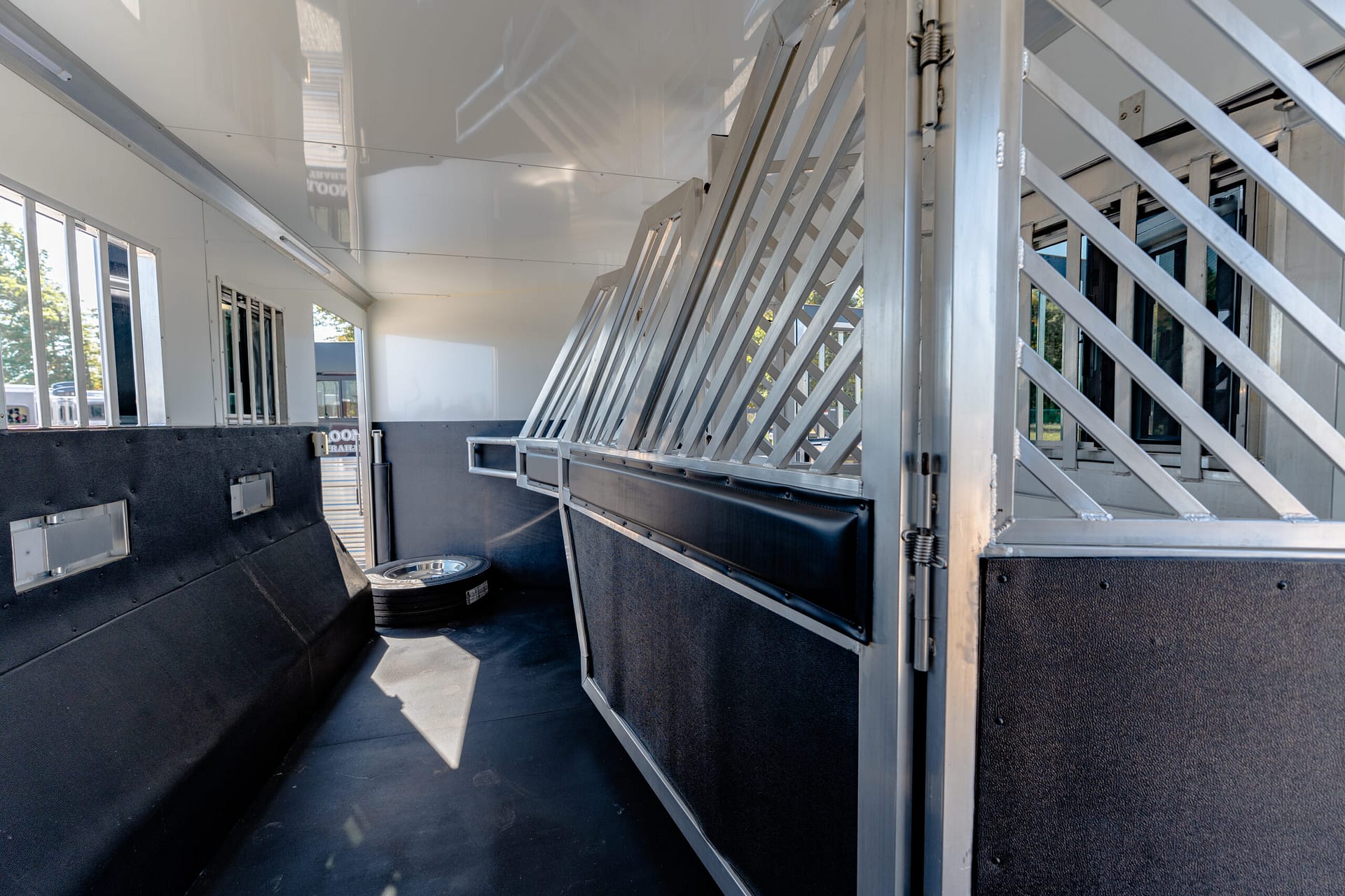-Two interior horse ties per stall -Two recessed spring-loaded exterior horse ties per stall