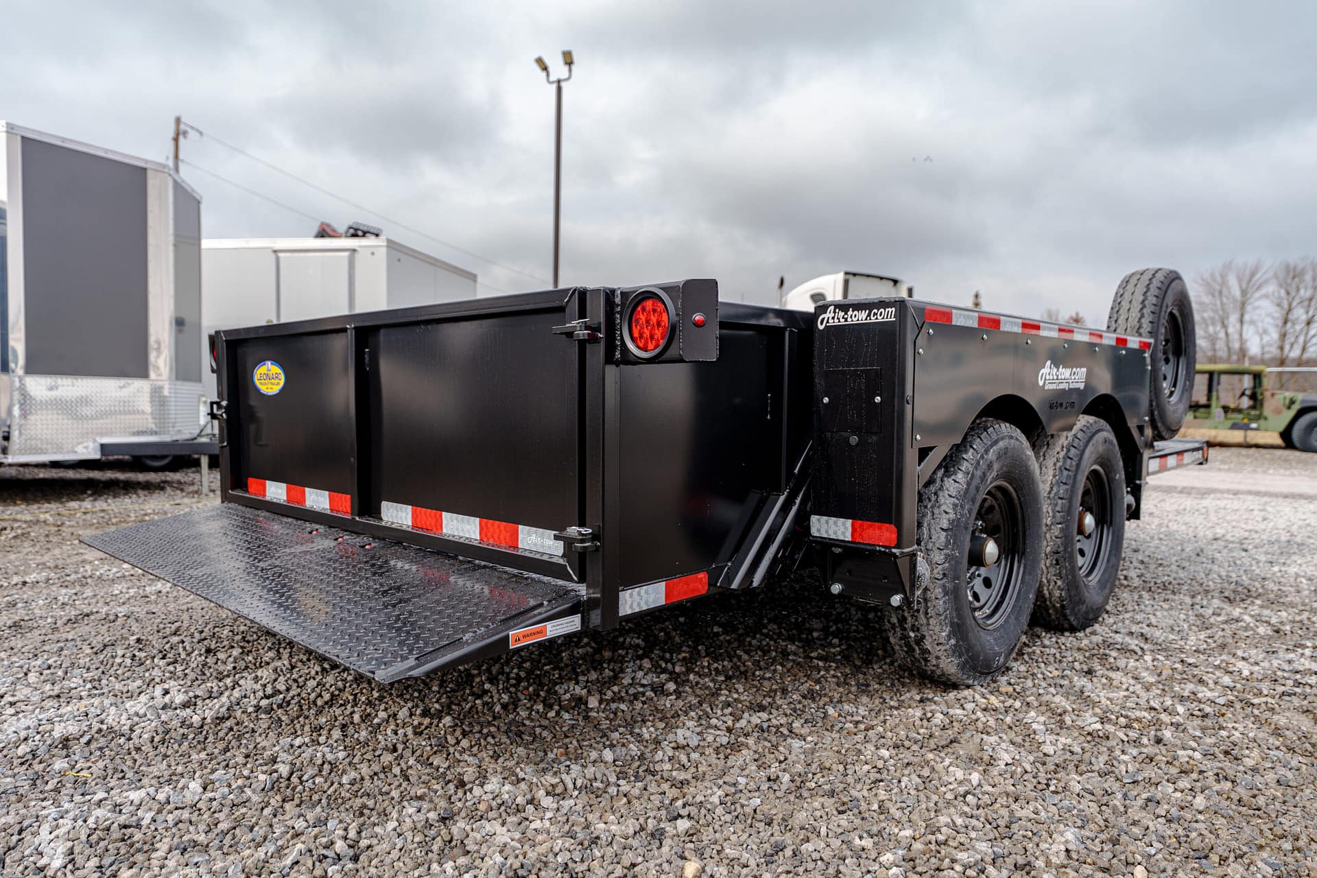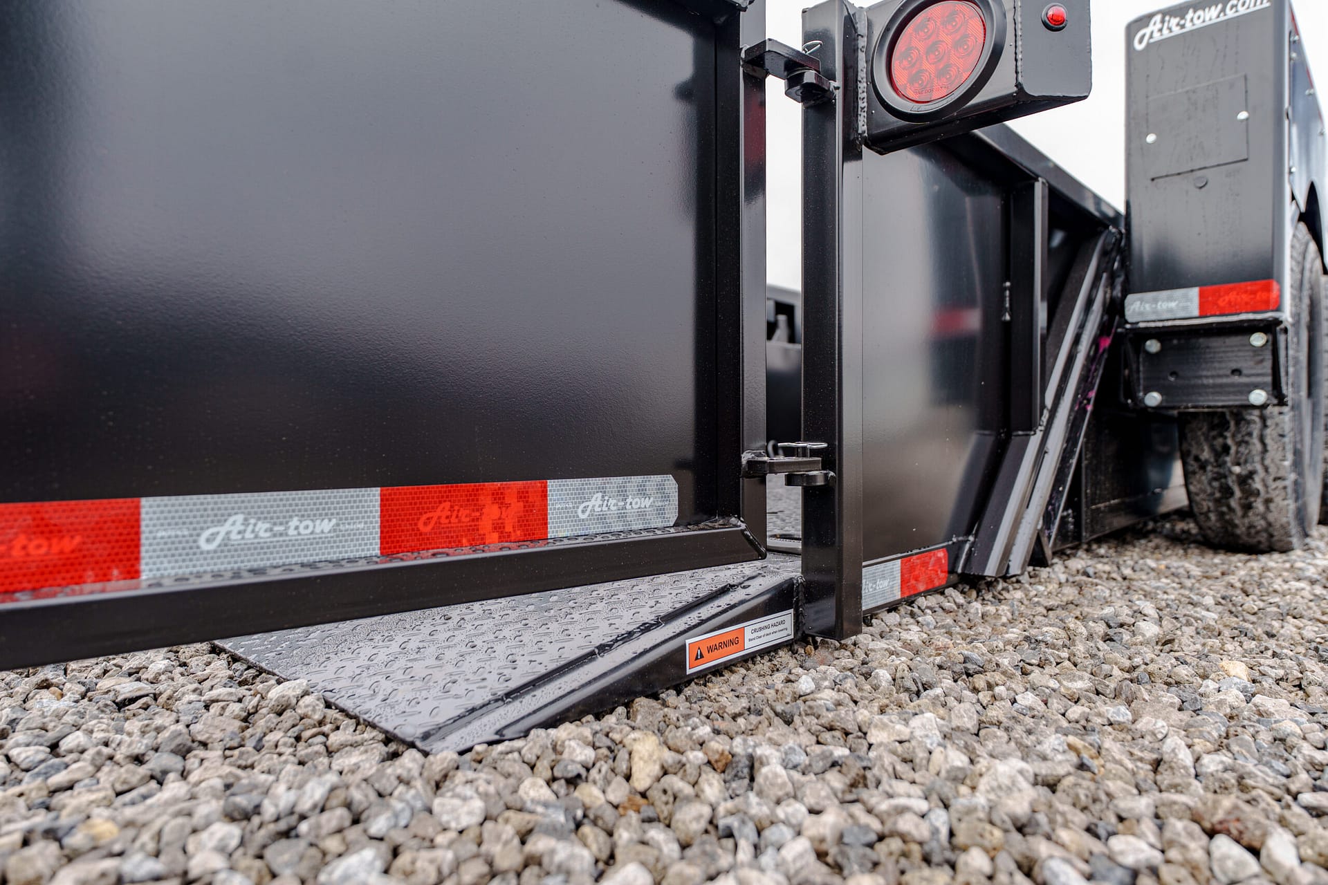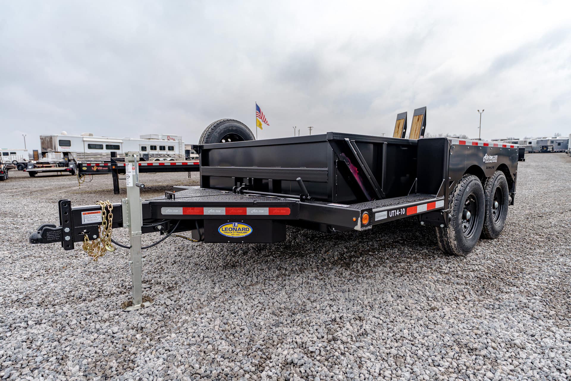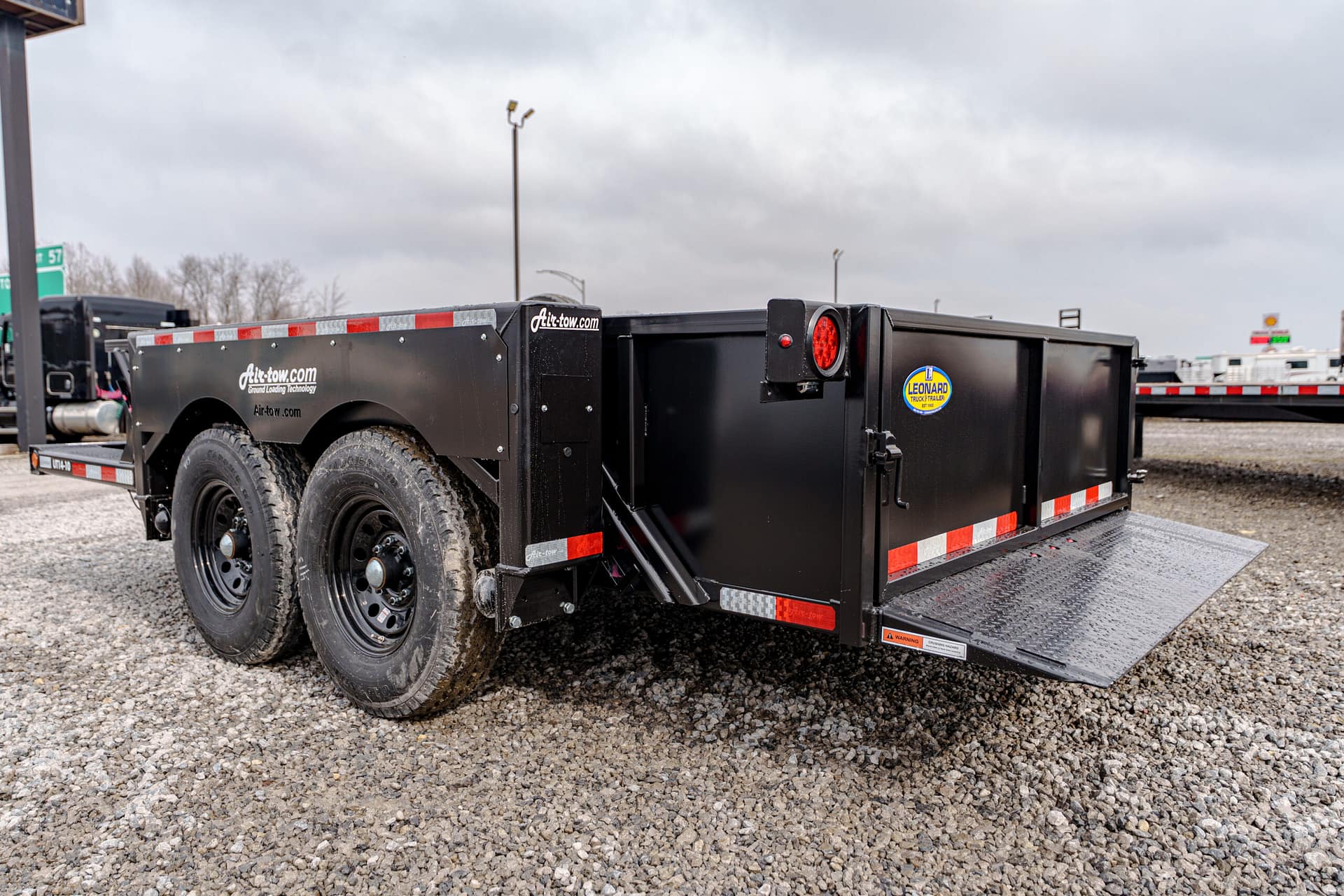 The Air-Tow UT14-10 offers the same innovative hydraulic lowering system as Air-Tow flatbeds, with the added convenience of sturdy side walls. The deck lowers to ground level for safe, easy loading, while the full-width, low-angle ramp allows smooth entry using a hand cart or dolly. Designed for versatility, Air-Tow Utility models offer a wide range of options to match your exact needs.