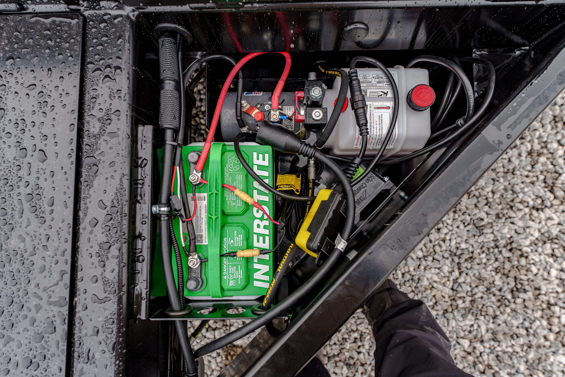 6-amp battery charger mounted in power compartment (plugs into 110V outlet)