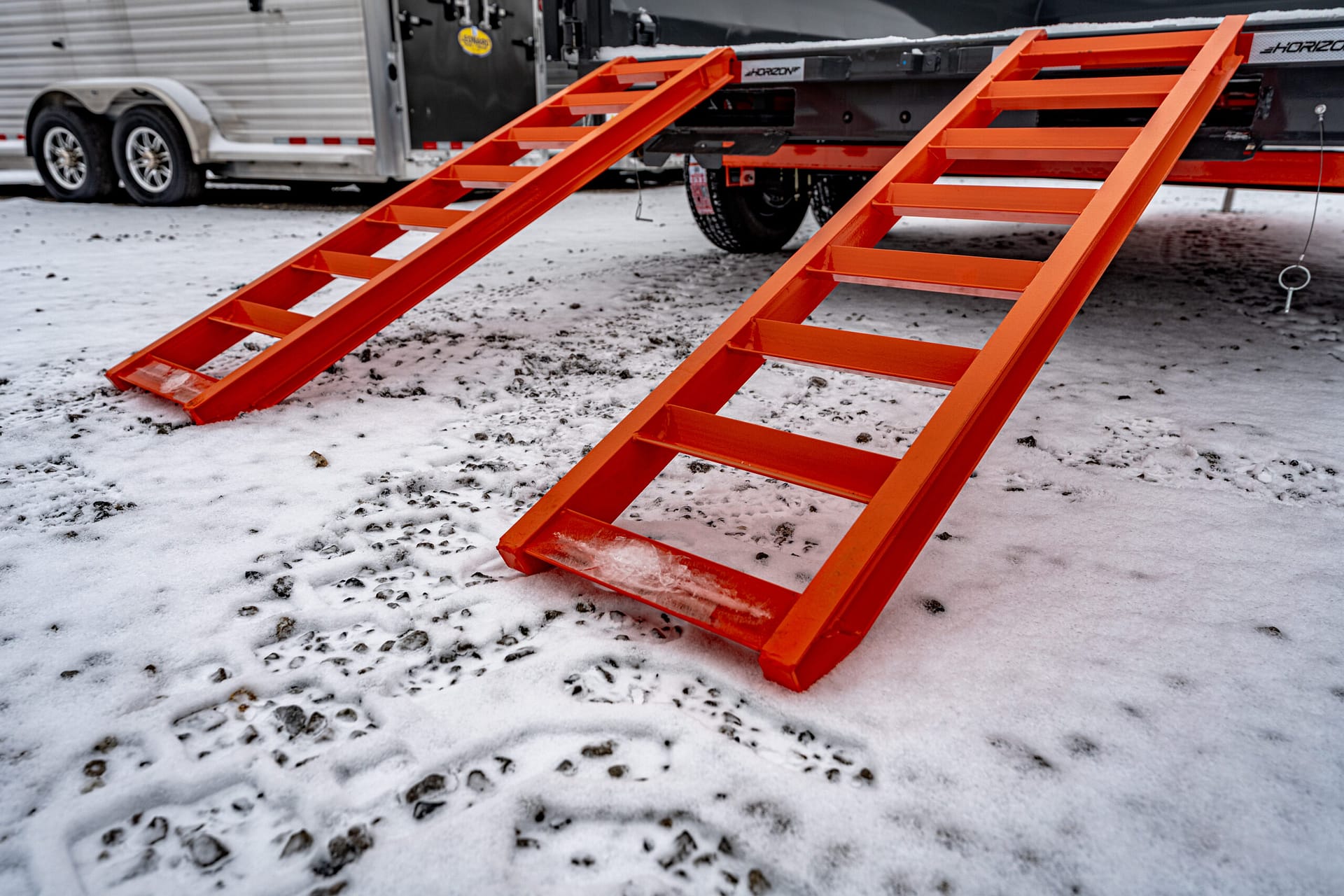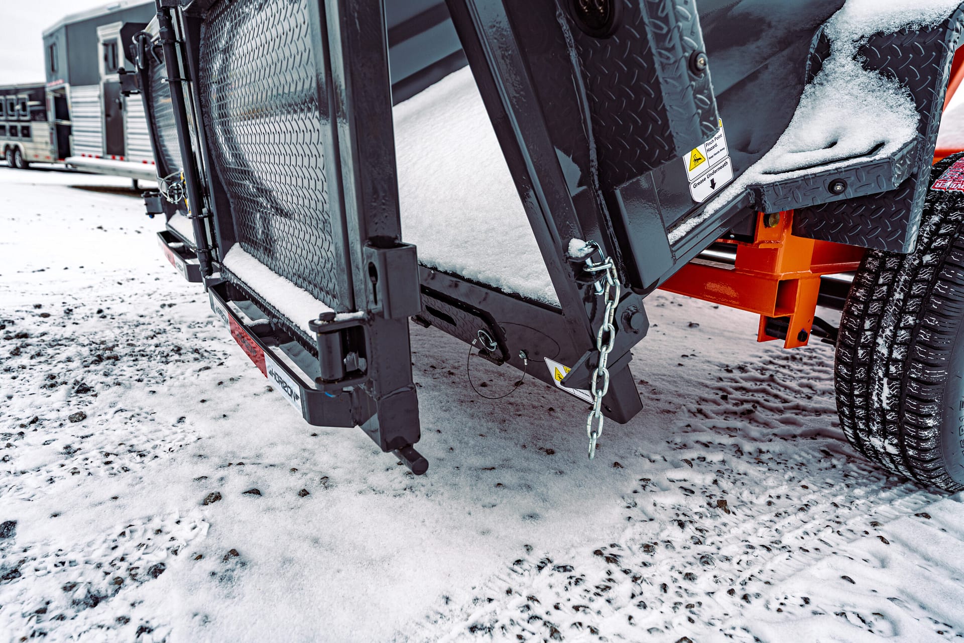 Rear: 3-way spreader gate, ramp pockets with 5′ slide-in ramps (4,000 lbs rating)