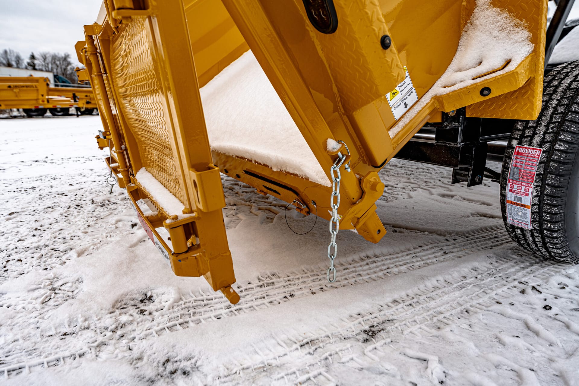 Rear: 3-way spreader gate, ramp pockets with 5′ slide-in ramps (4,000 lbs rating)