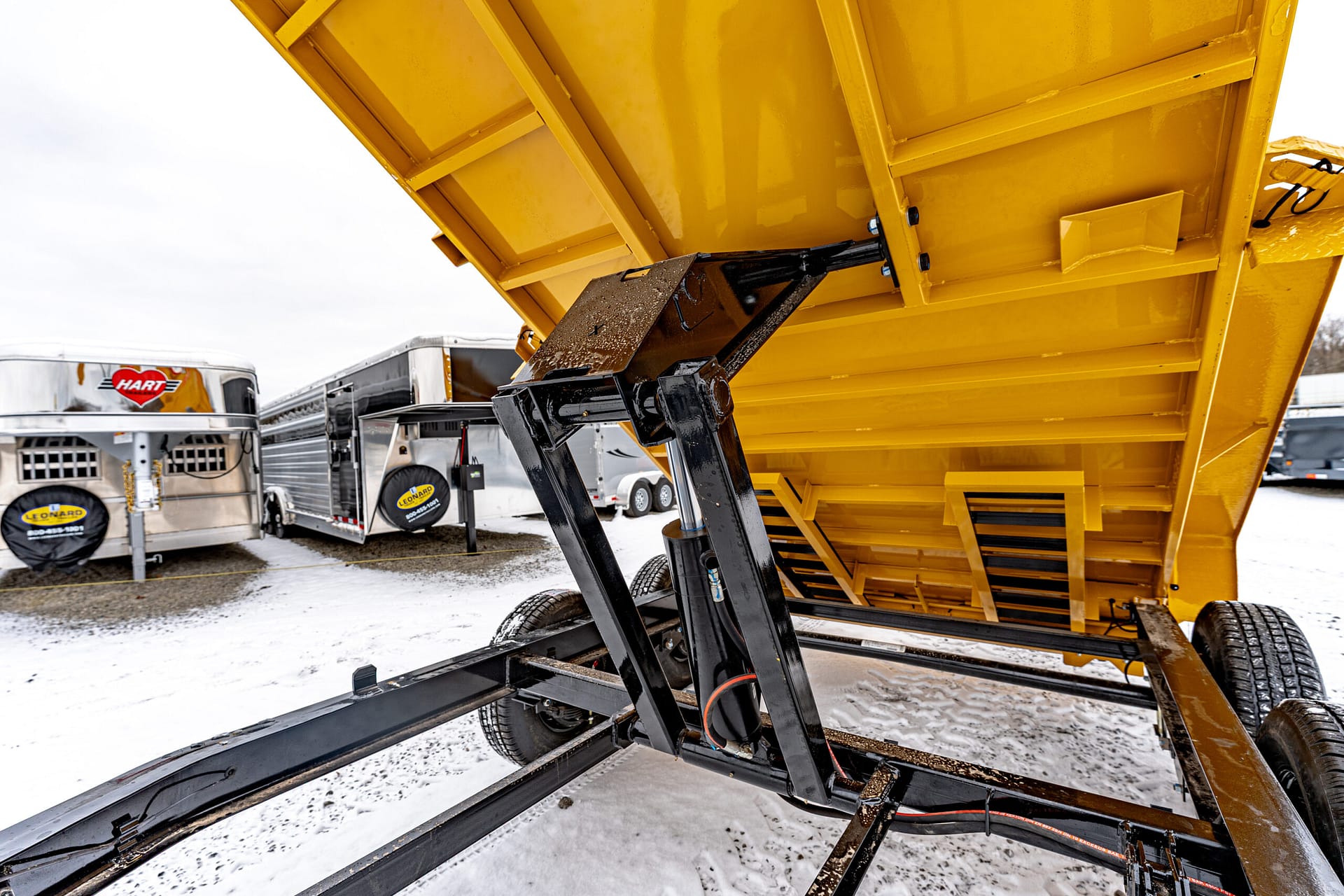 The HZ6 12′ Dump Trailer is built for durability and efficiency, perfect for smaller jobs. It features a 6″ I-beam frame, hydraulic hoist system, adjustable 2′ sides, DOT-approved LED lighting, and a manual tarp kit for safe, reliable operation.