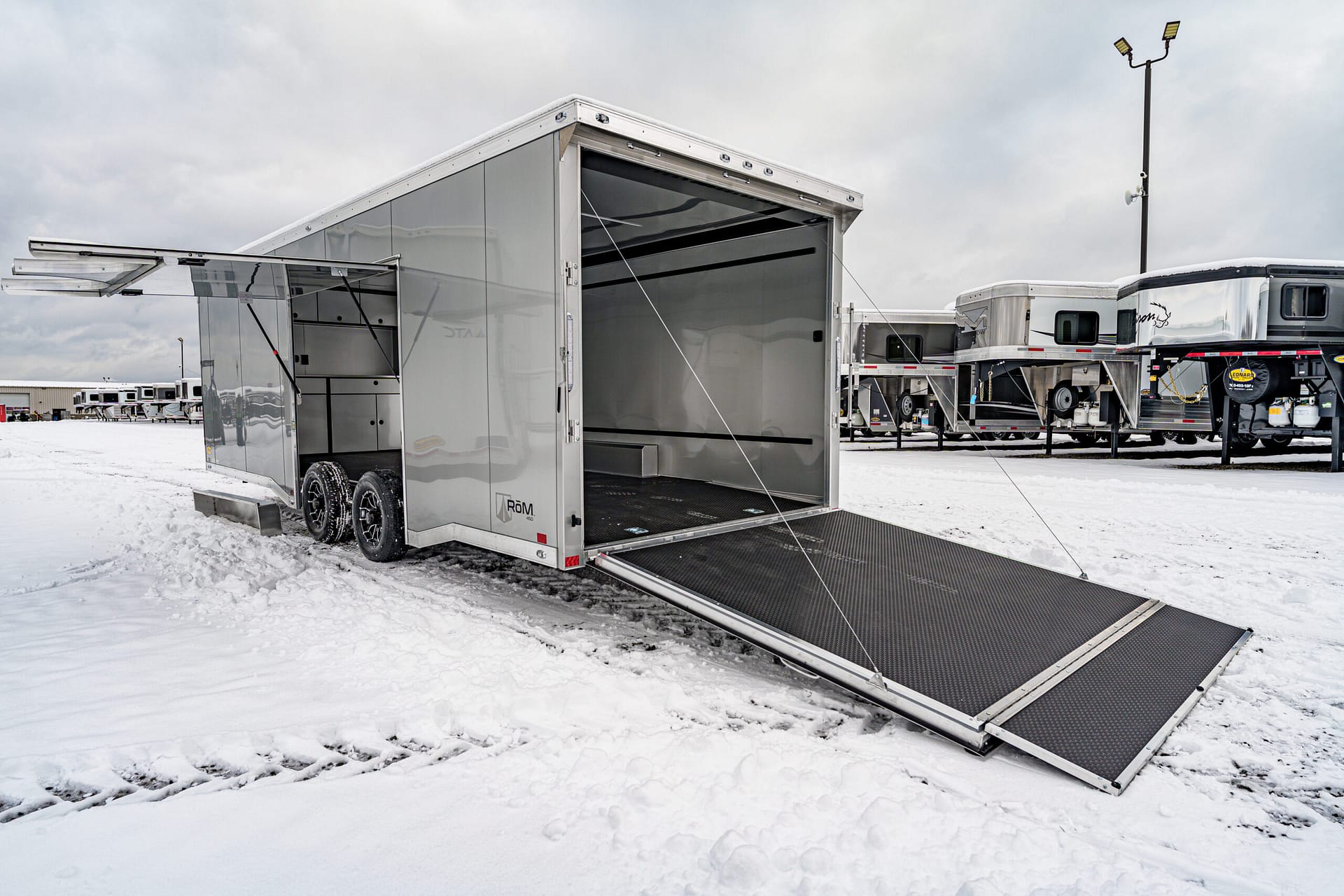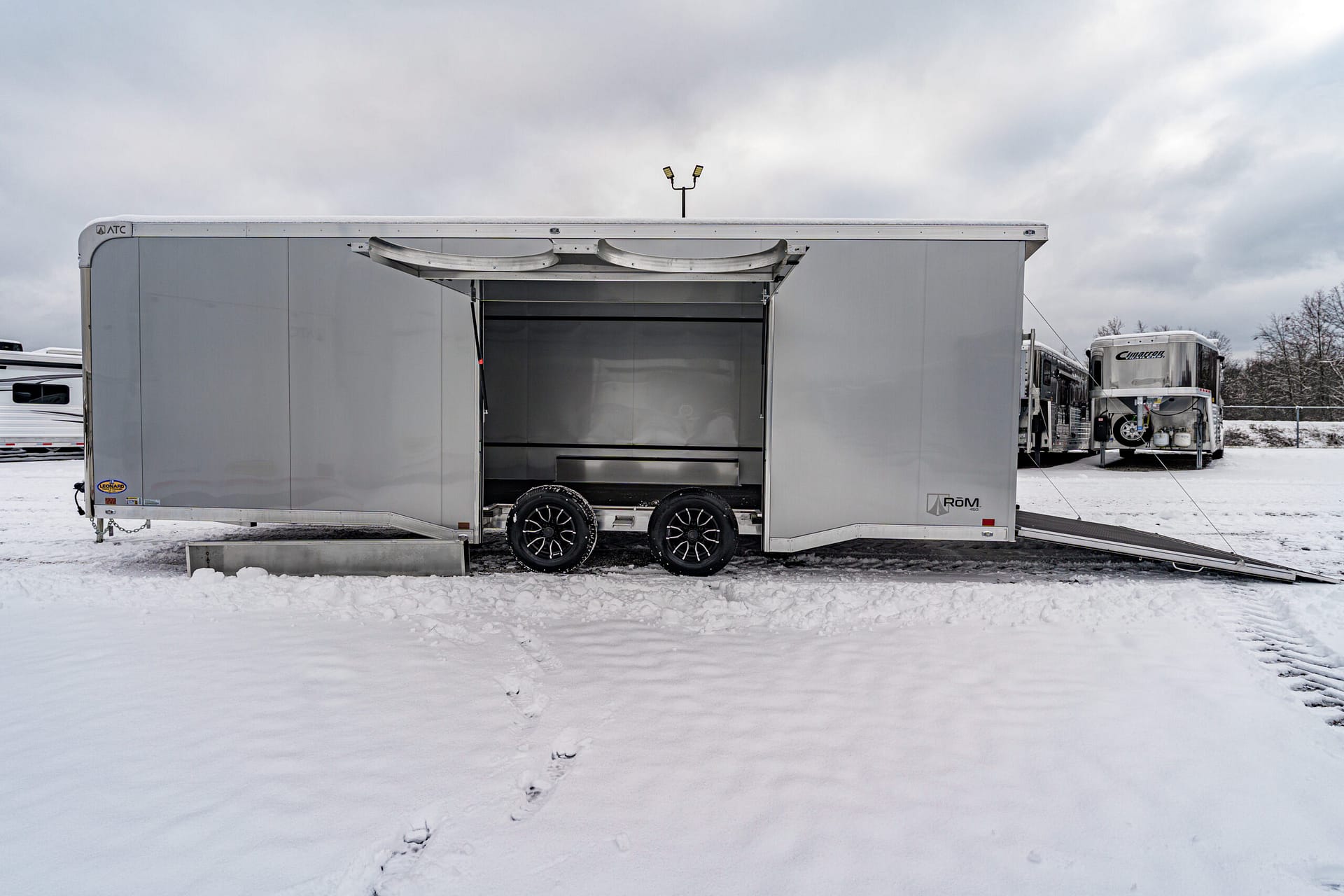 This premium Silverfrost ATC RoM 450 Series enclosed trailer delivers top-tier construction, standout curb appeal, and the versatile modular functionality ATC is known for. Built on a fully welded, 6-sided aluminum tube frame with ATC’s Cross-Grid Wall Technology, this trailer provides exceptional strength, reduced weight, and long-term durability.