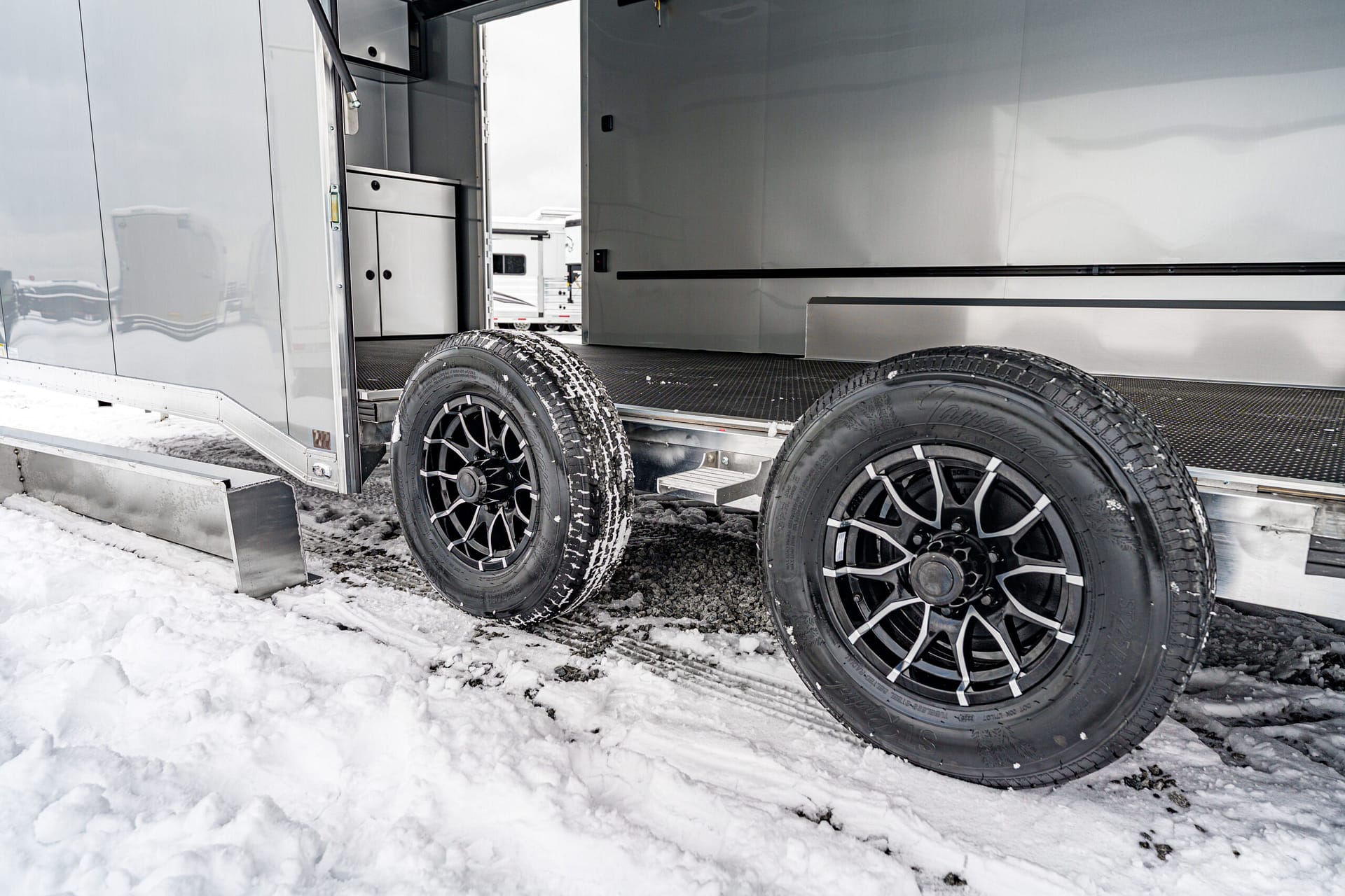 Inside and out, the matching Silverfrost finish creates a clean, cohesive look, paired with mill-finish trim, brushed cast corners with stainless accents, and a rear spoiler with integrated LED lighting for a sharp, modern aesthetic.