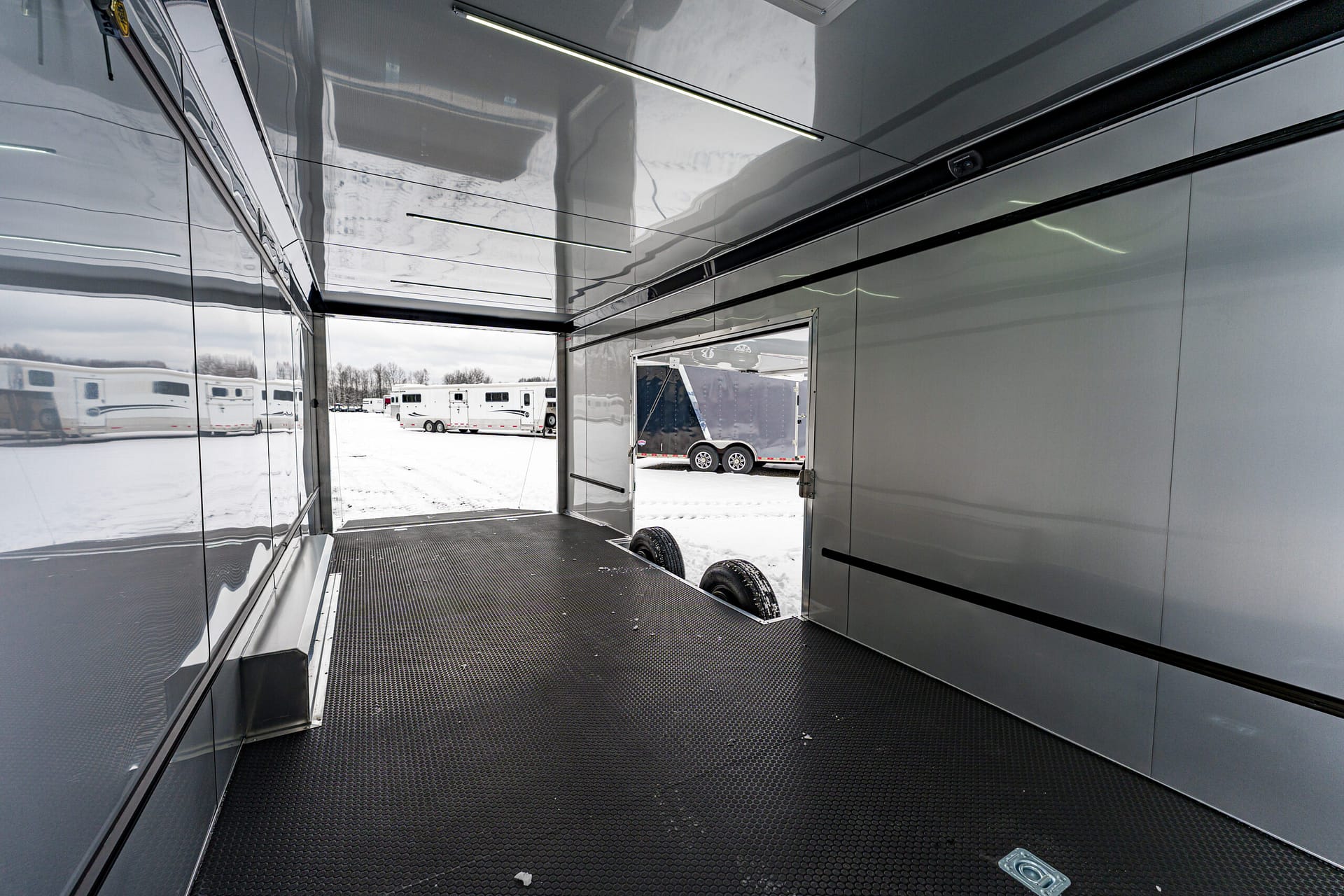 Black coin flooring on the deck, ramp, and flap