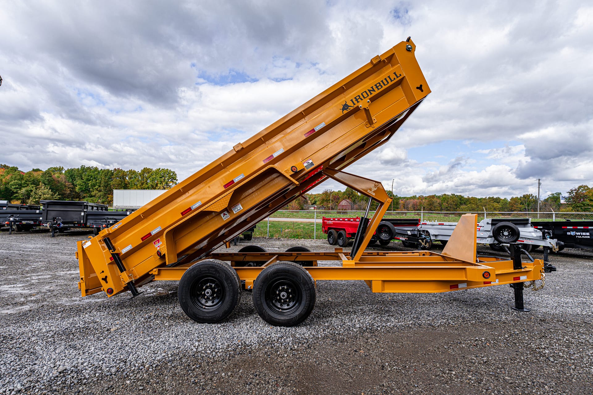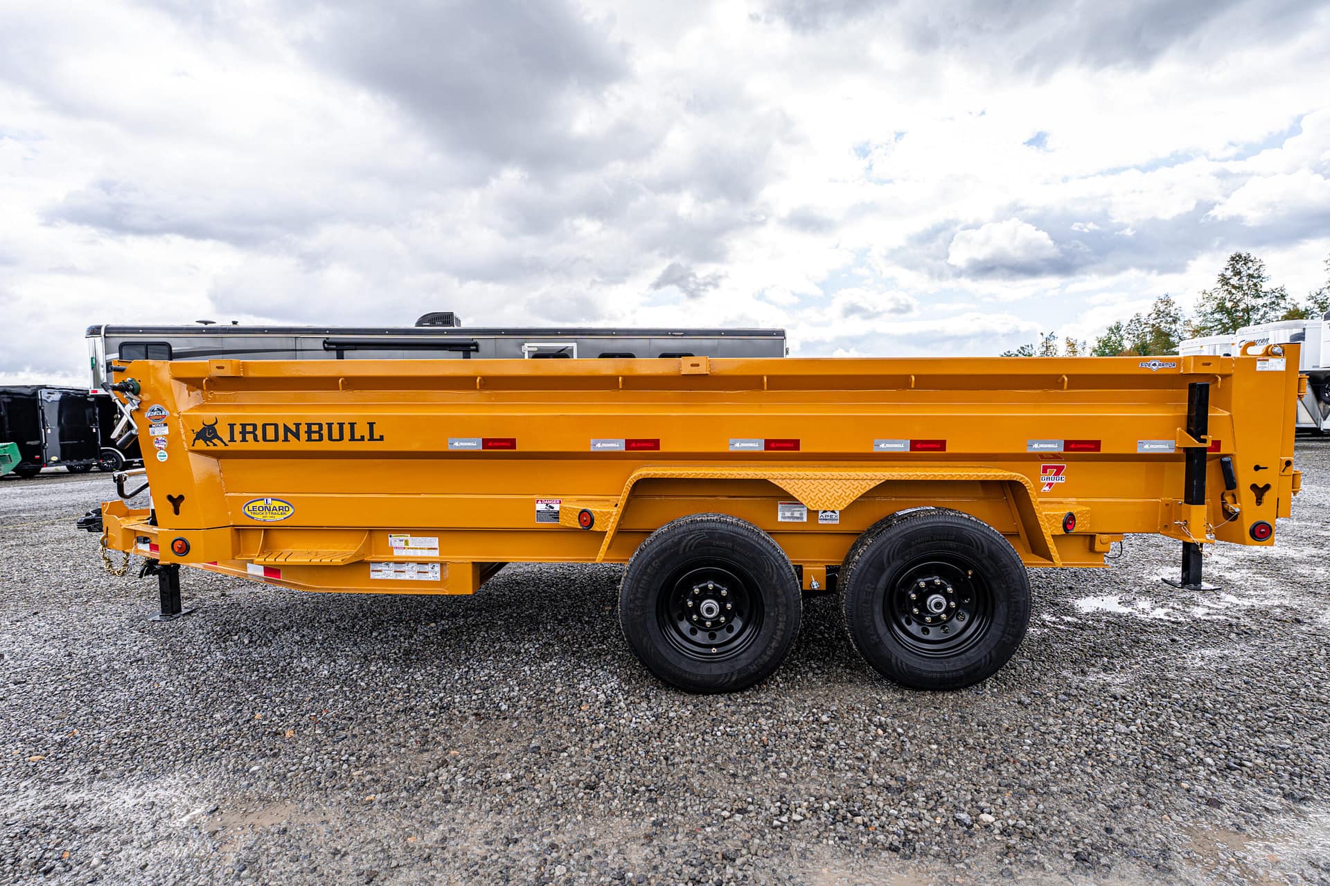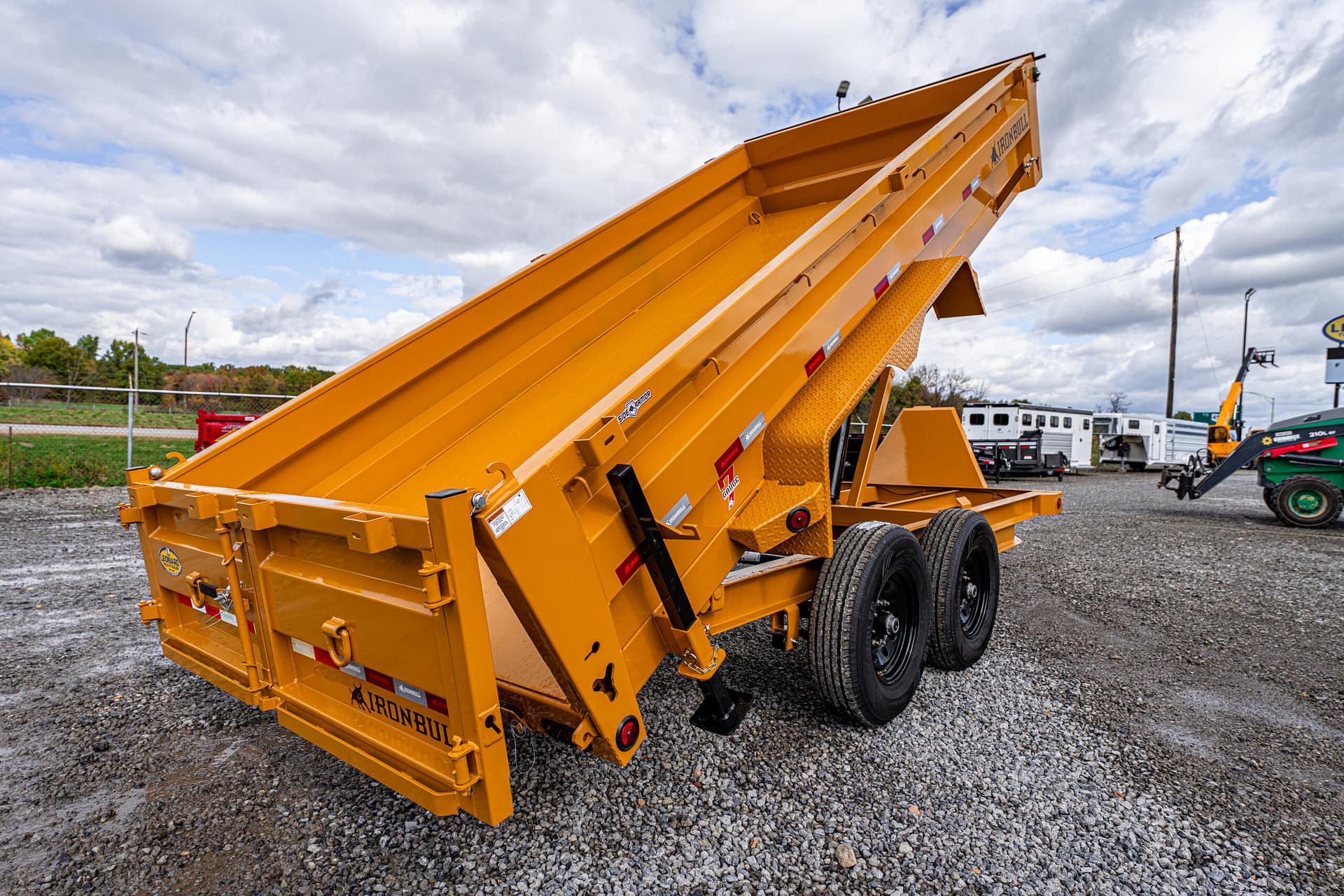 New Norstar bumper pull dump trailer has 14000#gvwr 6″ I beam frame 3way combo gate with 6′ slide in ramps, tarp kit, 24″ steel sides with formed supports, hd scissors lift, 107 gauge one piece floor. Call for more details!