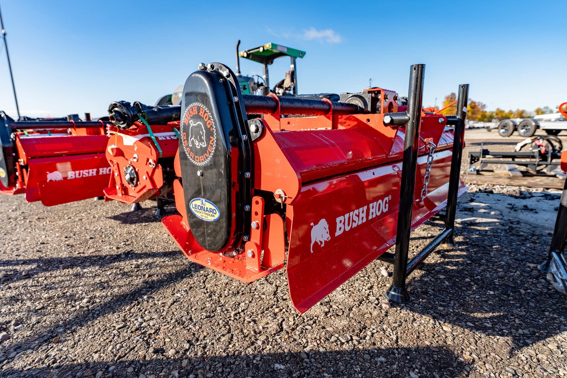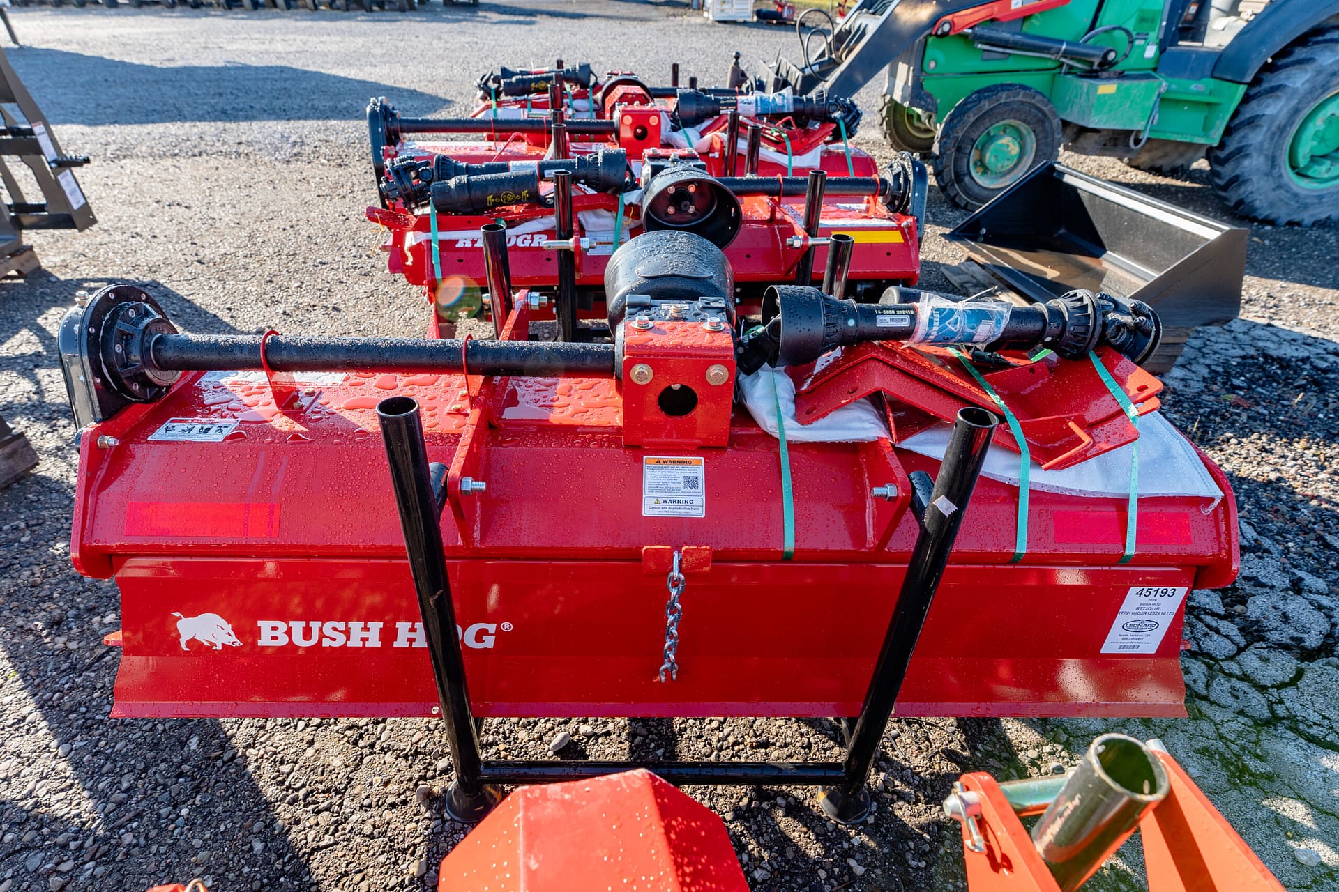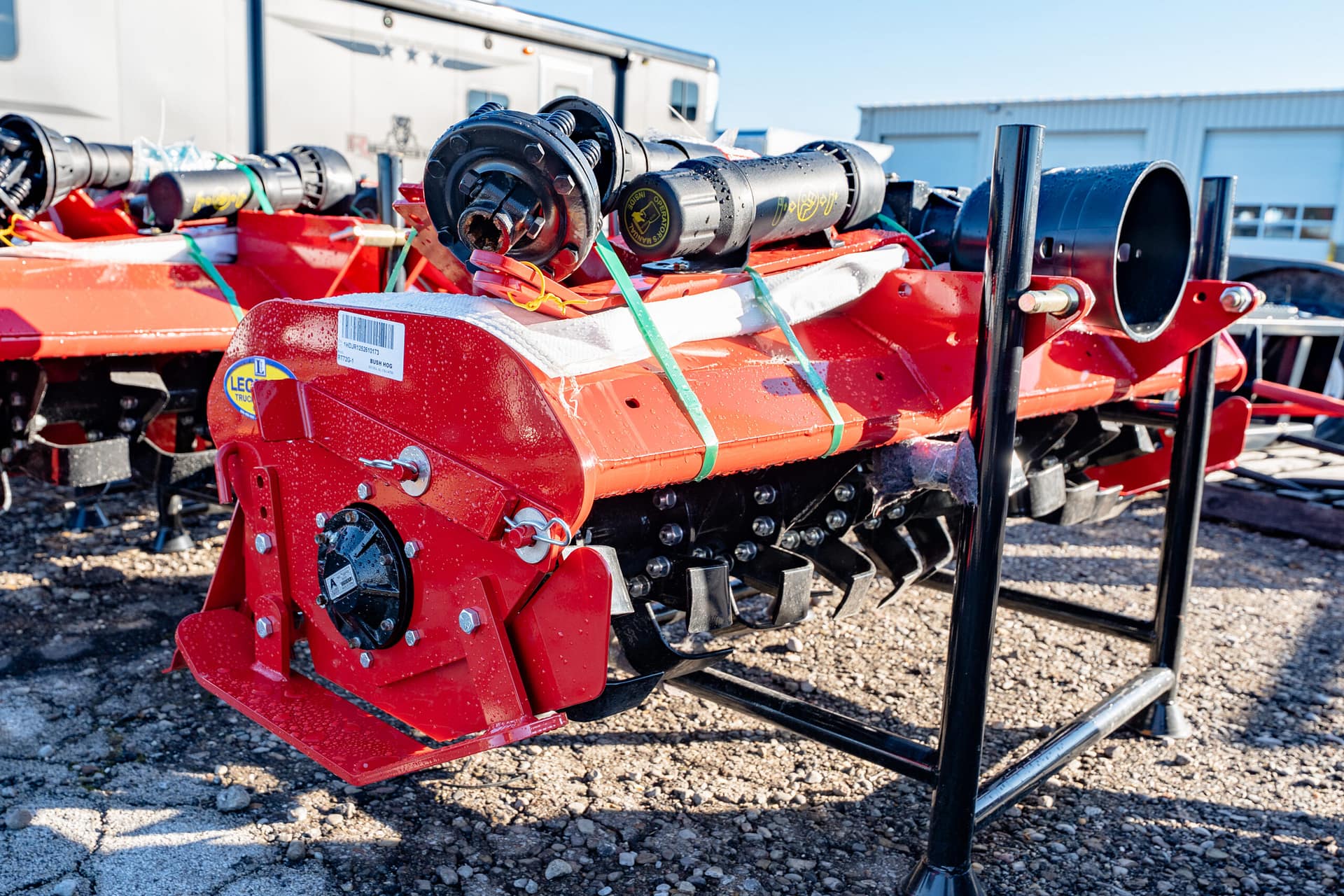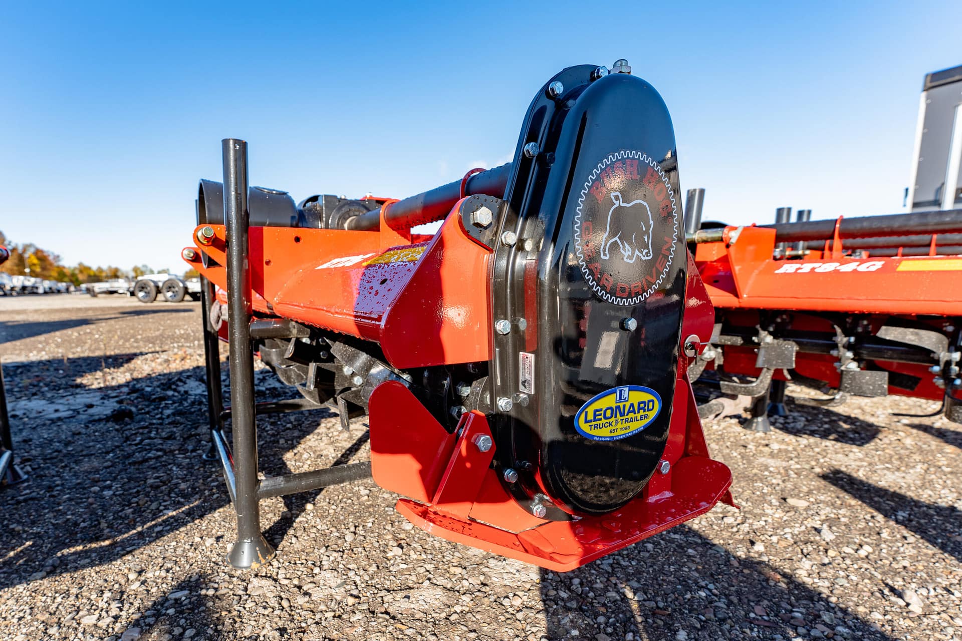 New Bush Hog rotary tiller that has rugged construction, heavy duty gearboxes, direct gear drive, replaceable skids, shielded drivelines, tilling width 59”,70.5”,82.5”. Tractor pto hp requirements 25-65, rotor speed 211 rpm/540 pto, driveline protection is a slip clutch, 1 year machine limited warranty, 5 year limited warranty on input and side gearboxes, power to rotor transmission gear drive, single speed, -a gear drive with oil both inside gearbox is more durable than a chain drive that will wear and could break. Call for more details!!