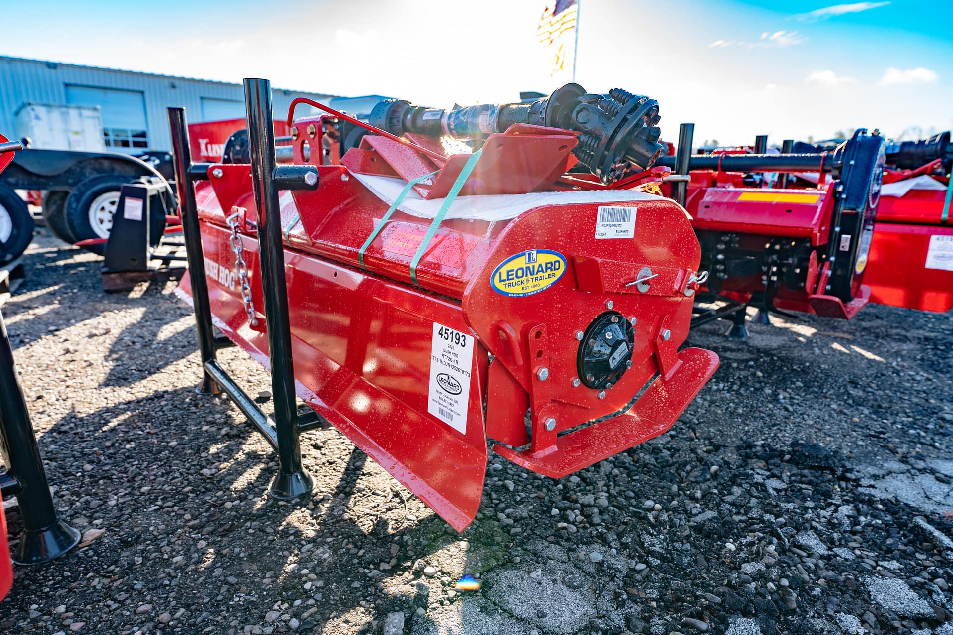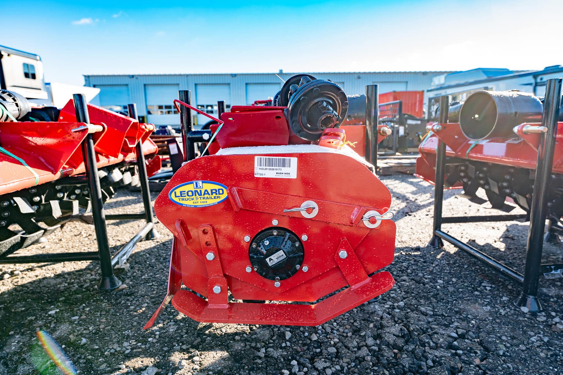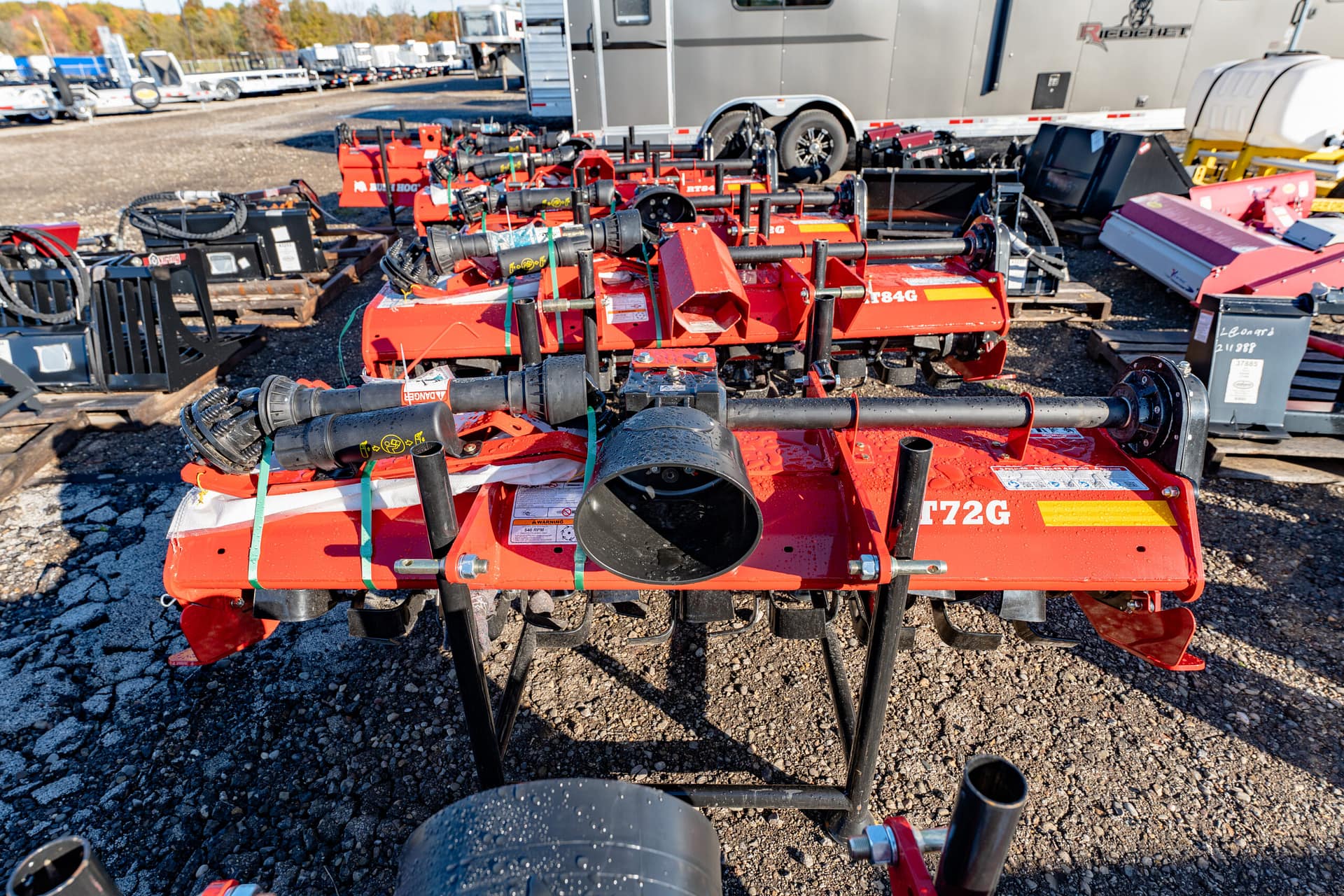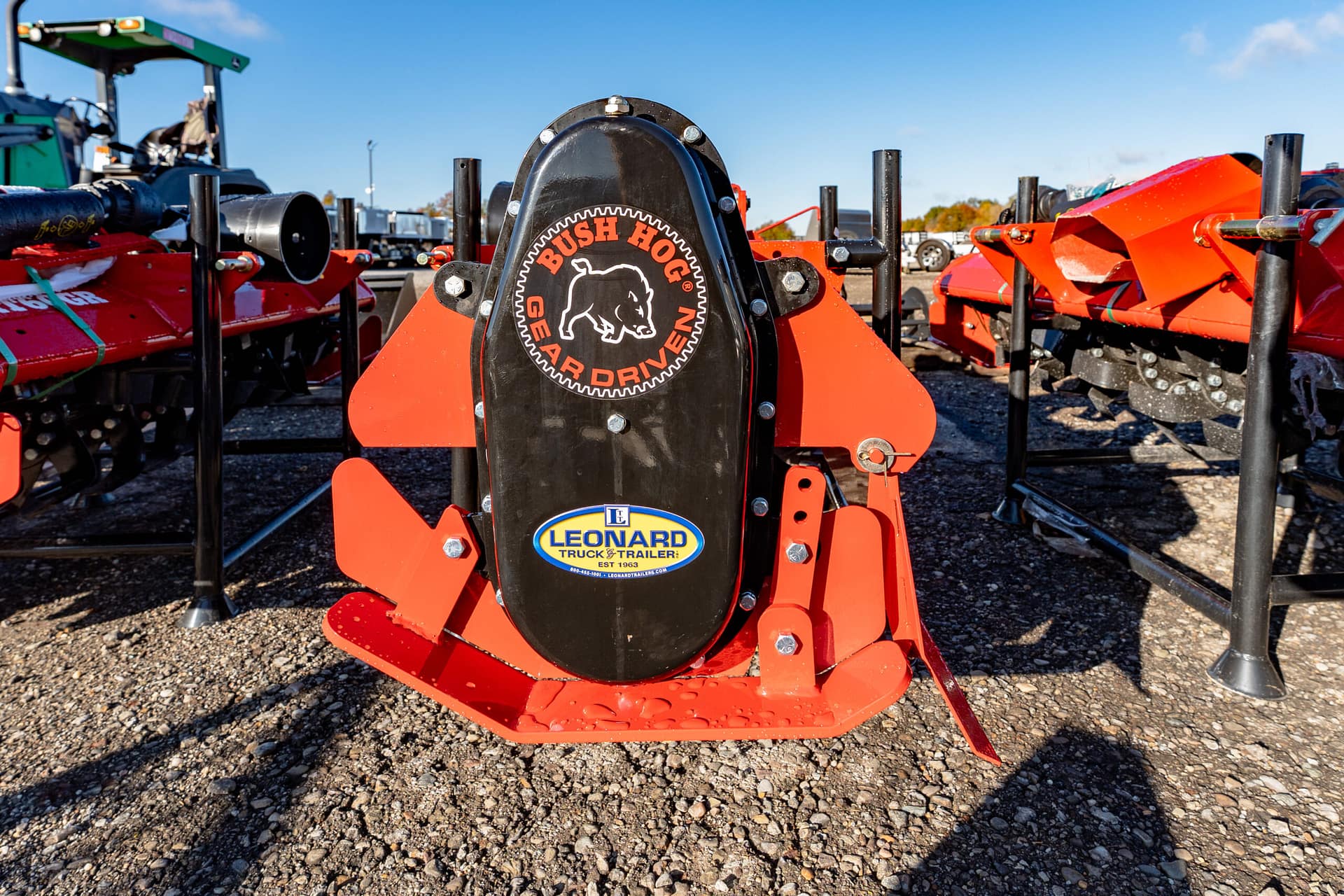 New Bush Hog rotary tiller that has rugged construction, heavy duty gearboxes, direct gear drive, replaceable skids, shielded drivelines, tilling width 59”,70.5”,82.5”. Tractor pto hp requirements 25-65, rotor speed 211 rpm/540 pto, driveline protection is a slip clutch, 1 year machine limited warranty, 5 year limited warranty on input and side gearboxes, power to rotor transmission gear drive, single speed, -a gear drive with oil both inside gearbox is more durable than a chain drive that will wear and could break. Call for more details!!